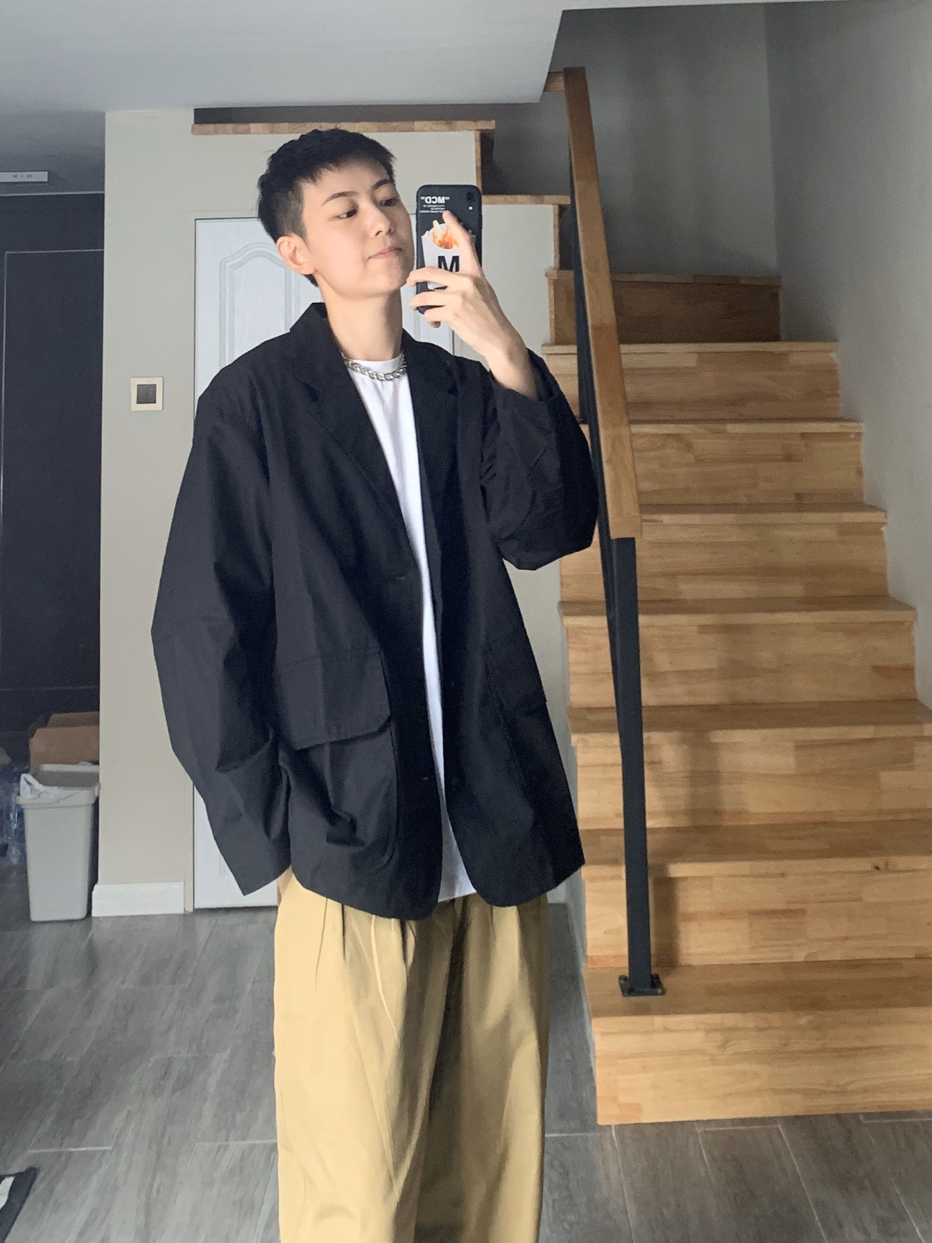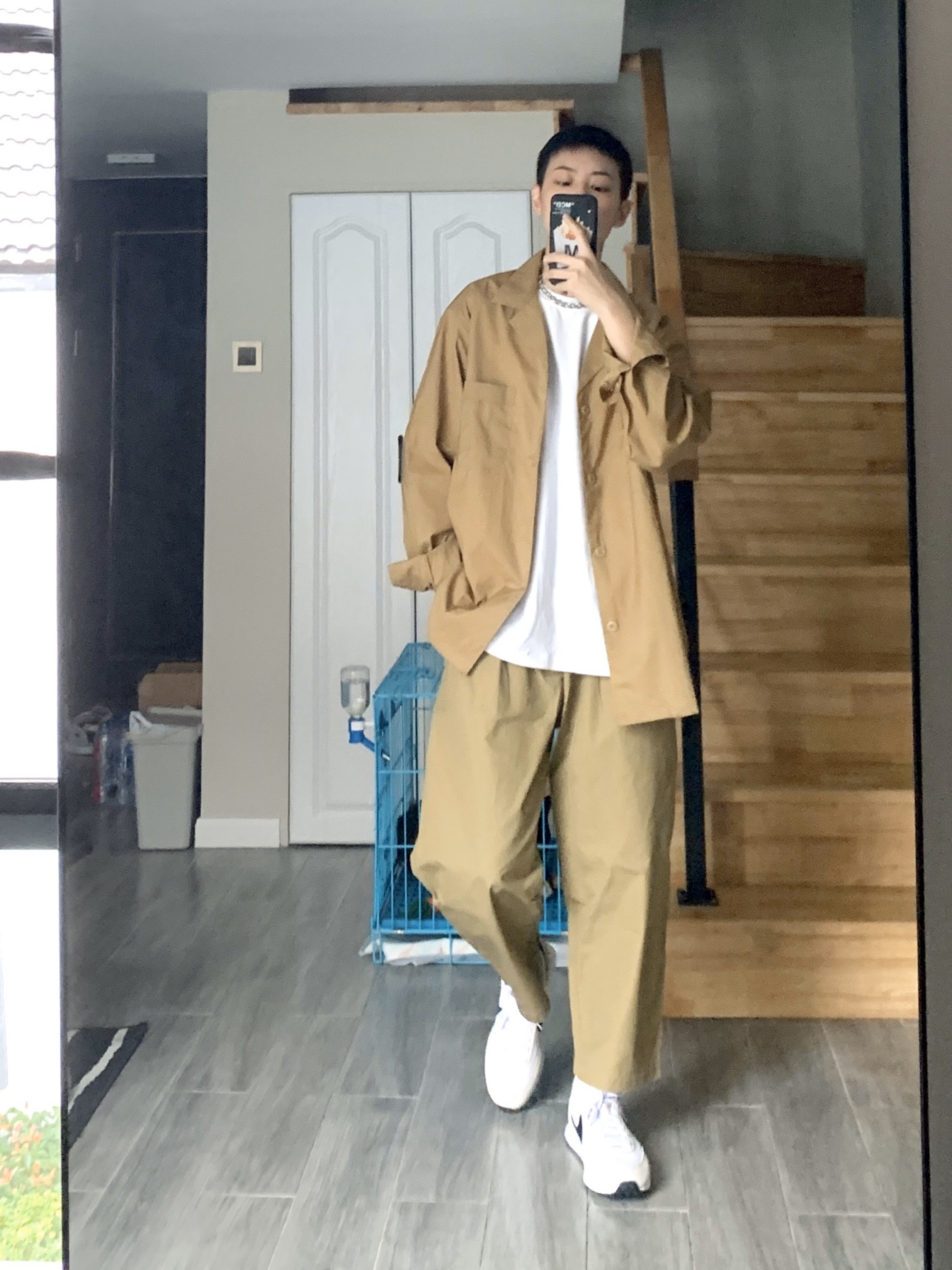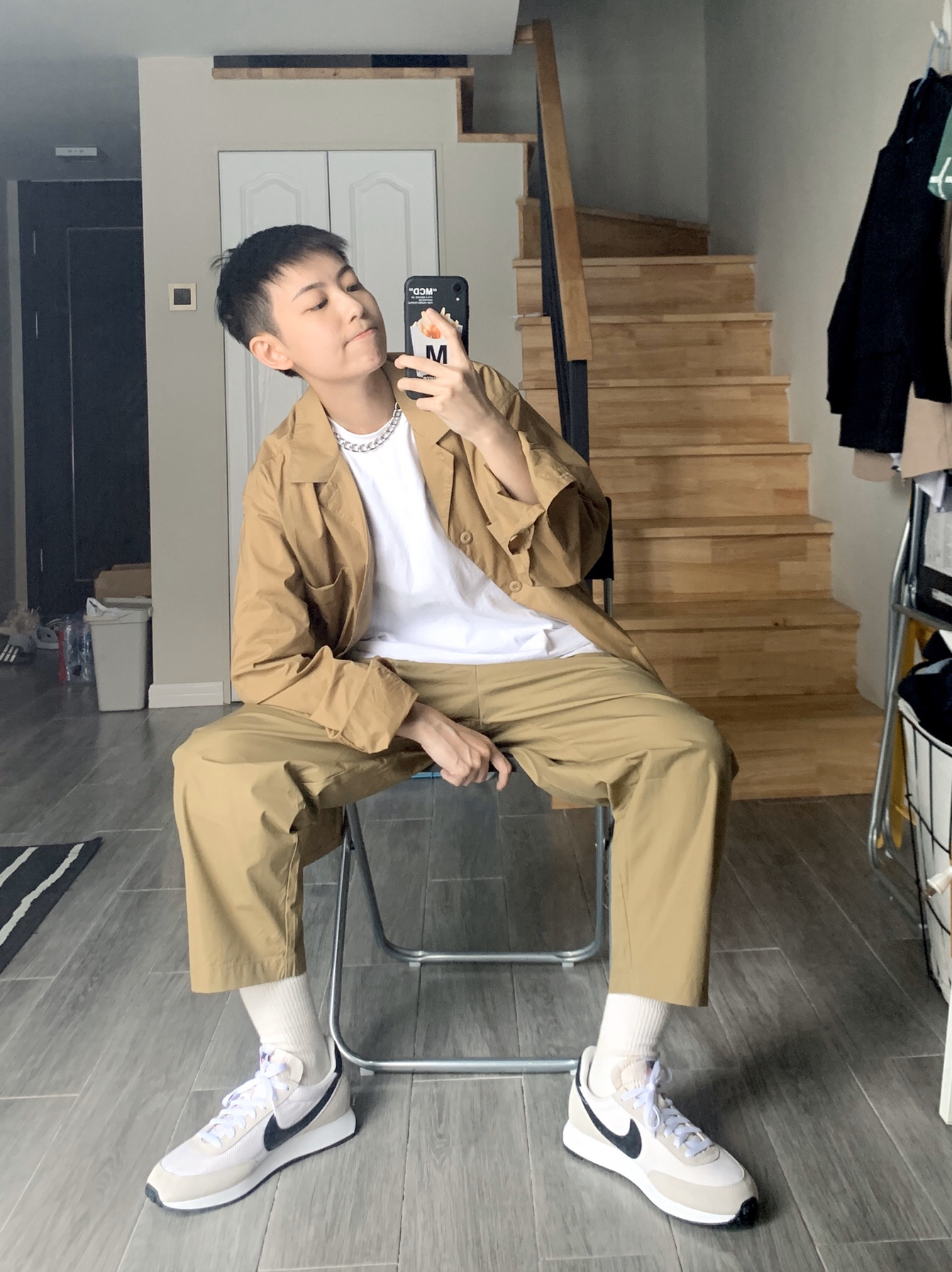 hi 这里小贾,身高168体重52。 〰️ 今天分享干净清爽的日系穿搭,大地色系是最适合秋天的颜色,廓形衬衫或是薄西外都是这个季节值得入的单品,上身就是暖暖的盐系男孩啦🧏🏽♂️ 〰️ 🏷️ 上身单品 衣裤:LR MADE 项链:Fun爷原创 鞋子:Nike TAILWIND 79 〰️ 矮个子男生穿搭|日系盐系穿搭|男生秋季穿搭|早秋穿搭|165-170每日穿搭分享|无性别穿搭