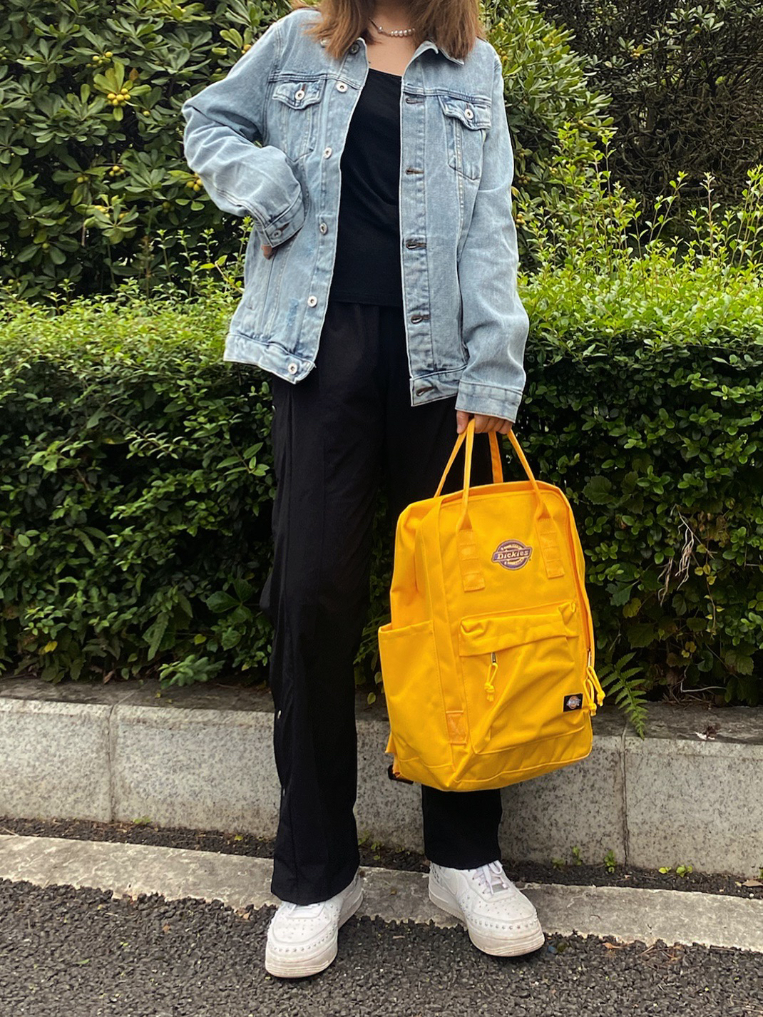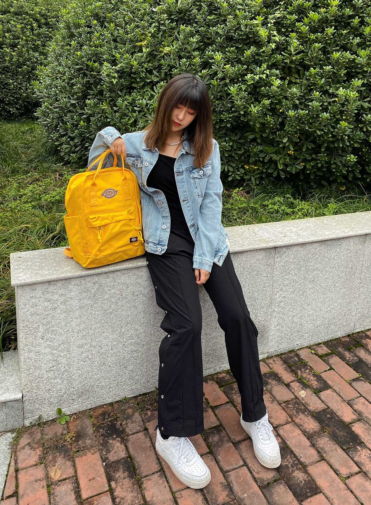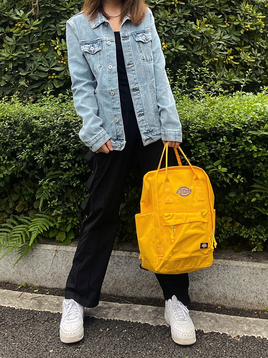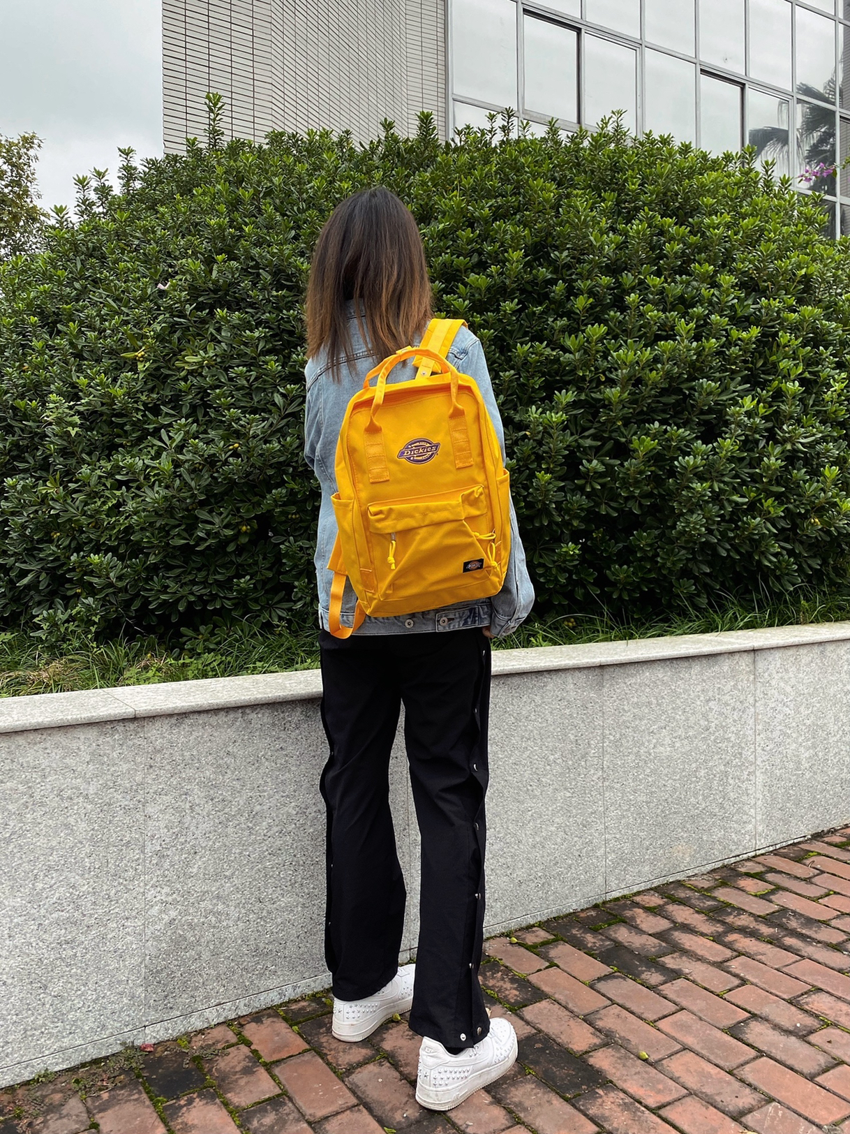之前一直在外地玩 发的都是库存 居然还坚持到了我回川哈哈哈 今天是新鲜的穿搭look哦 回到家就迫不及待的拆开包裹 我新买的书包终!于!到!啦! 这个颜色我超喜欢的 很有元气的感觉 容量也贼大 可以放好多东西 平时出门拍穿搭必备呀 书包:Dickies