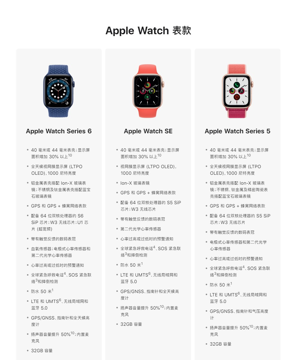 6代新款,5代老款,还有新出的 SE 和在官网上坚持了 3 年多的3代,如此众多的 Apple Watch,我们究竟要如何挑选呢? ❤️S6和S5有什么区别?❤️ Apple Watch S6和S5相比,增加了血氧检测功能,处理器在S5的基础上快了20%左右,屏幕低功耗全天显示情况下亮了2.5倍,多了 U1 芯片,高度计升级为全天候监测,其它方面差别不大。 ▲15 秒测得血氧数值 如果你非常...