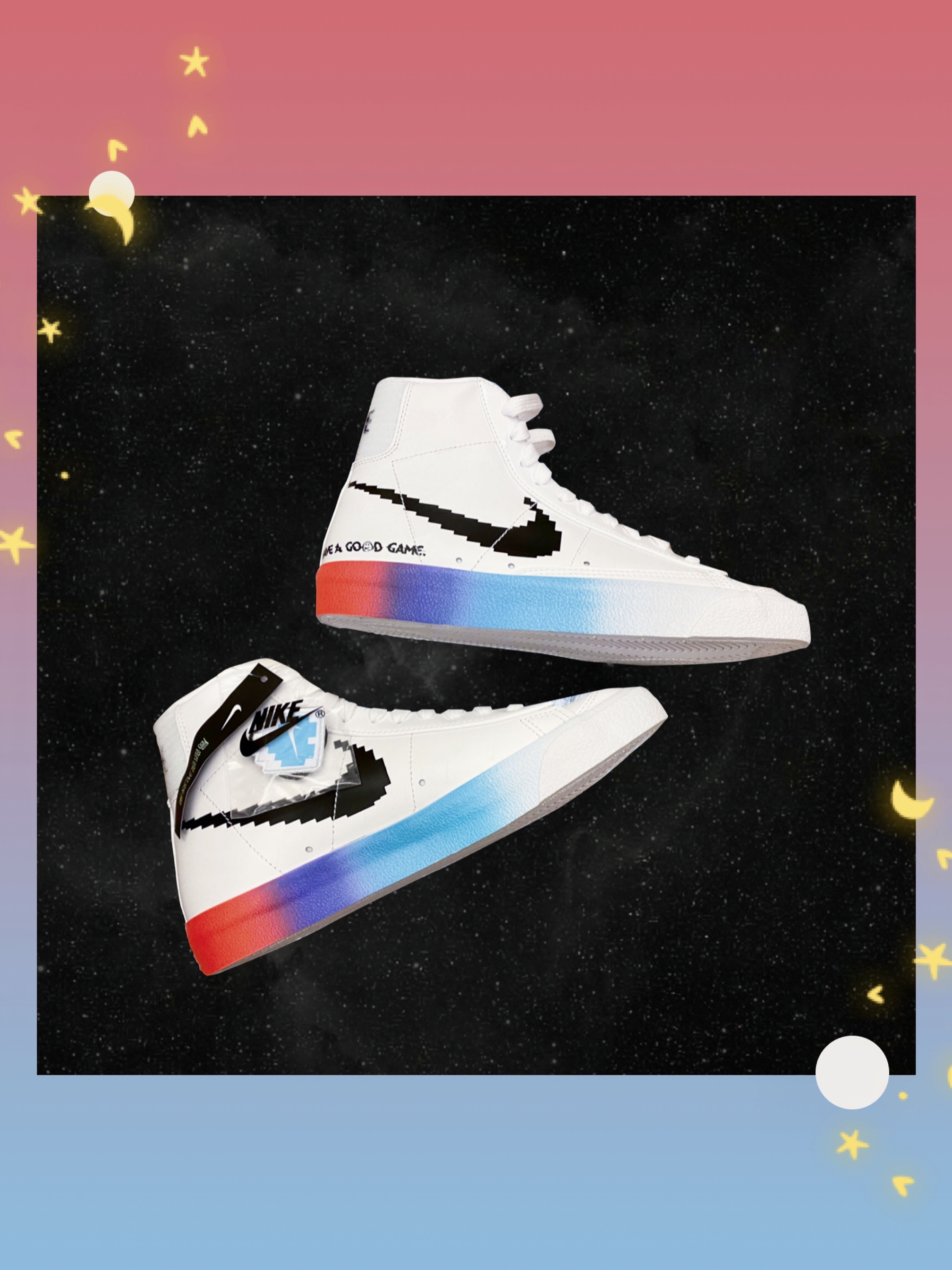 本篇笔记关联了Nike Blazer 板鞋 经典复古防滑舒适百搭 电玩像素/英雄联盟/白蓝红喷漆/白色等商品,为用户提供真实的使用体验和购买参考。