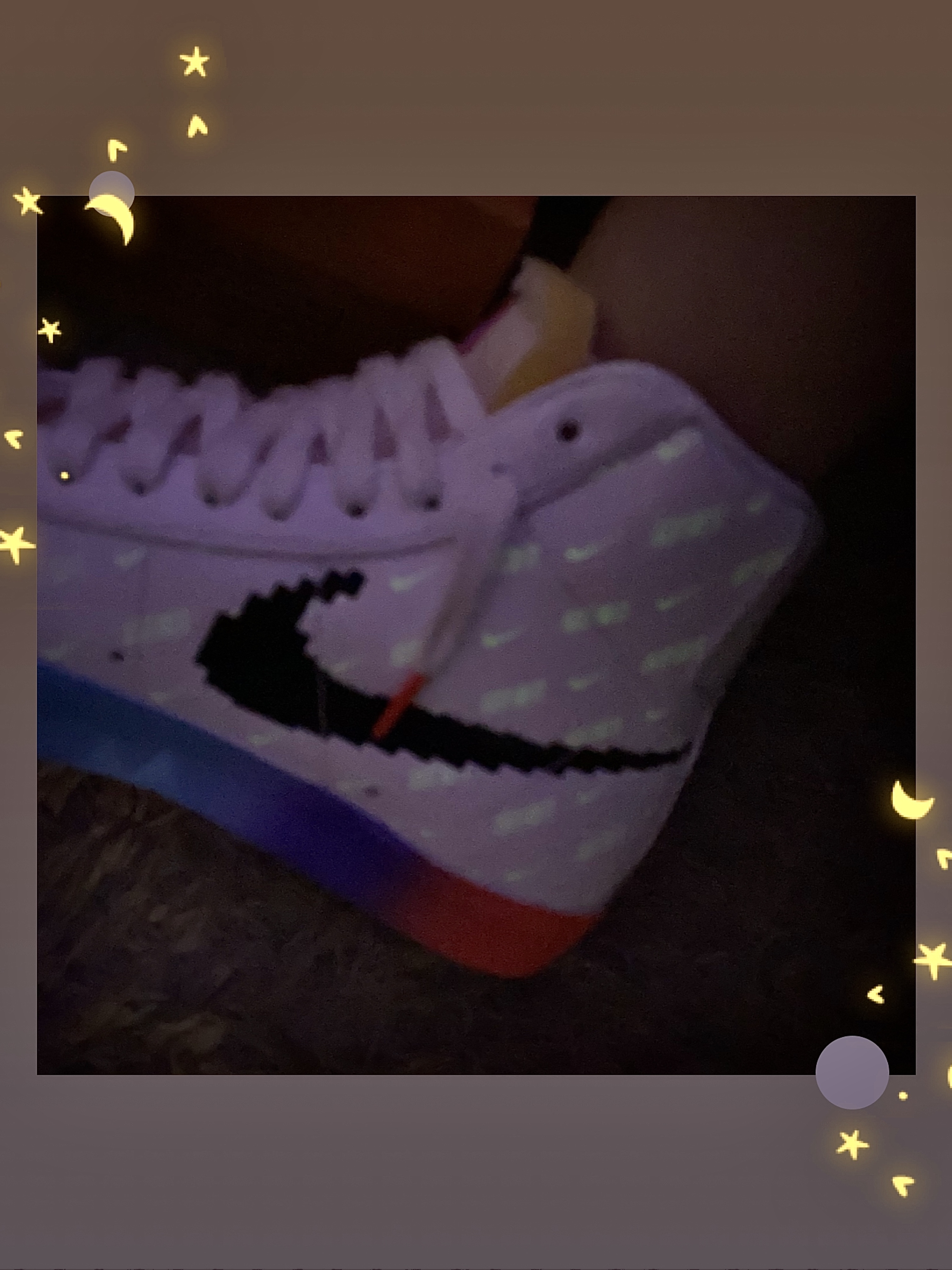 Nike blazer mid\'77 Vintage “Have A Good Game”2020年版电玩像素 作为一个老英雄联盟玩家 为了情怀必须入呀~ 千万别以为它只是一双普通的blazer 其实白色鞋面印有夜光的图案!! 有✔︎和 just do it的logo!! 晚上穿上这双鞋你就是夜里最靓的崽!😎 这双鞋的电玩像素也亮了~ 鞋身侧面的swoosh也是个像素特点 鞋底上方的“hav...