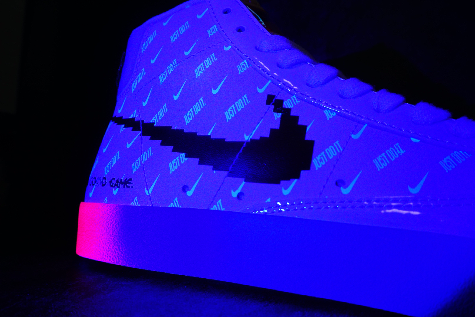 近几年由于 OFF-WHITE x Nike 等重量级联名的加持带货,Nike Blazer Mid 系列重获新生,成为年轻一代球鞋玩家们颇为青睐的人气鞋型,就连很多不关注球鞋的人都会入手当作日常穿着的百搭选择。 Nike Blazer Mid 77 Vintage Have A Good Game,整个鞋面以白色为背景,黑暗中显得醒目。鞋面暗藏玄机,印有夜光鞋材的 Mini Swoosh Log...