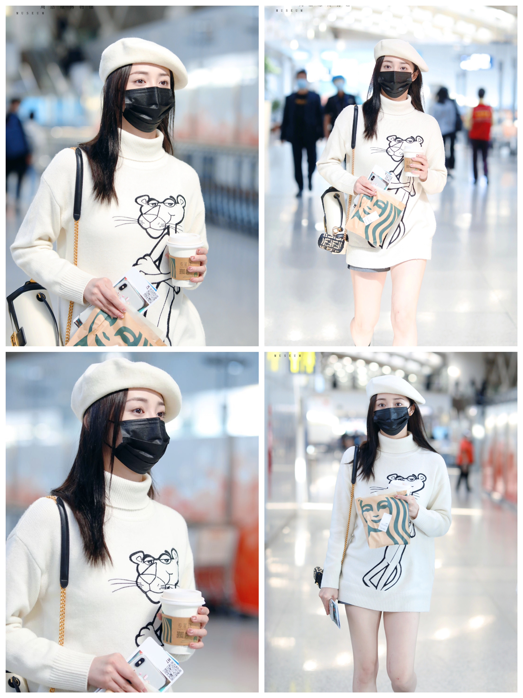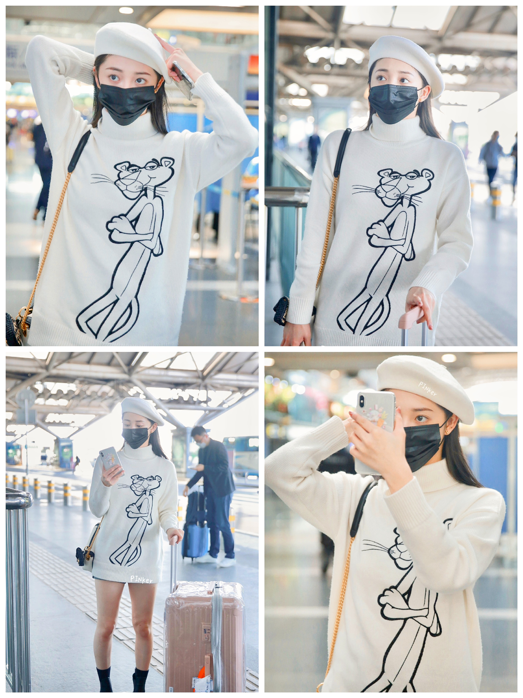 Look: 毛衣: Ozlana x 粉红豹 包包:Fendi 裤子:Rag&Bone 鞋子:Initial ❤️ #周洁琼私服 #周杰琼穿搭 #周洁琼同款 #奶白色高领毛衣 #女明星私服穿搭 #女明星机场街拍