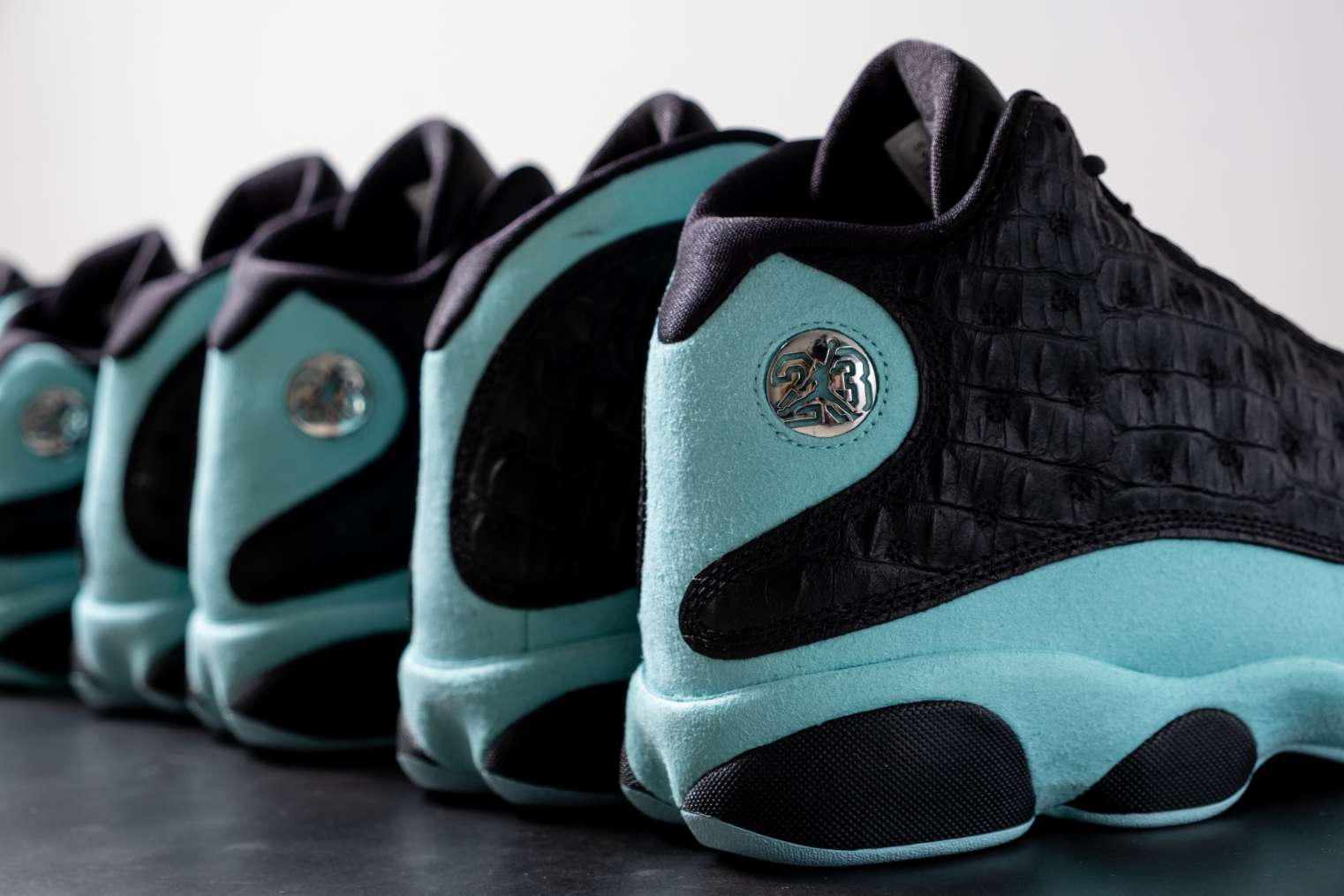 AJ13 作为AJ系列的经典鞋型,几乎每年都出几款新旧配色。2019年推出的这款“Island Green”黑绿配色,在发售之前的关注度还是蛮高的。 虽然不是元年配色,但黑色+蒂芙尼绿的组合看上去既舒服又具备视觉冲击力,经典荔枝皮+莽纹皮革材质的鞋面质感十足,13经典的后跟3D豹眼标志也改成了金属雕刻的“23”logo,就连鞋舌处的飞人LOGO也是颇具质感的银色金属材质。再加上不减配中底带来的不俗...