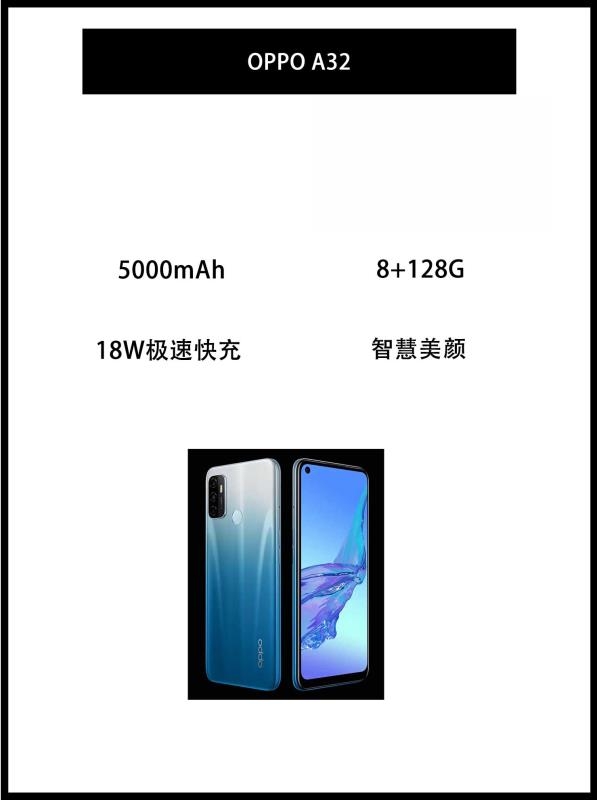一、华为HUAWEI nova5z 本款手机具有4800万AI四摄后置摄像头包括4800万像素高清镜头各种场面,从容应对, 前置摄像头有3200万像素,800万像素超广角镜头+200万像素微距镜头200万像素紧身镜头,主屏幕尺寸有6.26英寸, 机身存储有128g,有人脸识别跟背部指纹,最大支持SIM2张。 nova5z,专为Z世代年轻人量身定做🤟 2、OPPO A32 5000...