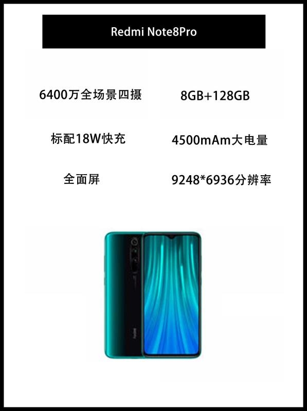 一、小米 Redmi Note8Pro 有着6400万全场景四摄小金刚品质+ 液冷游戏芯 王者玩家标配,、搭配4500mAh长续航 、多功能NFC 、标配18W快充 6.53水滴全面屏和3D四曲面玻璃,9248*6936分辨率,后置四摄、后置6400万,前置2000万专业人像自拍,拍出最美的你,HelioG90T专业处理器,可持久高帧率运动大型游戏;4500mAm大电量+1...