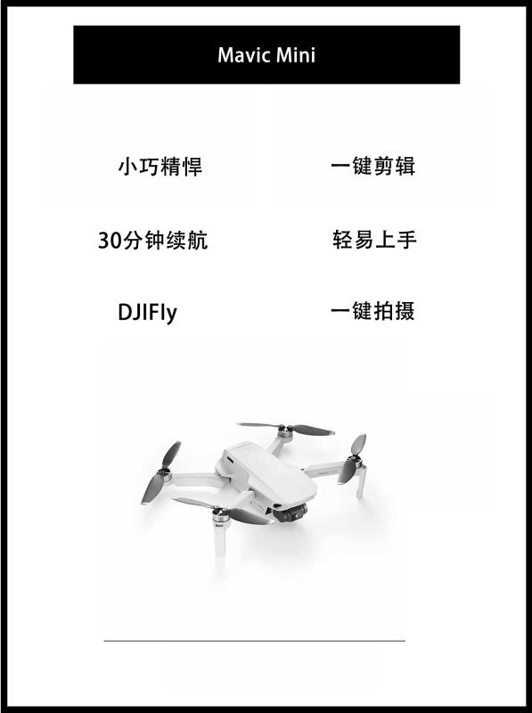 Hello,大家好,我是四月,今天给大家推荐几款无人机航拍神器! 一、DJI 大疆 御 Mavic Mini 这款产品是DJI大疆系列中最轻微的航拍无人机,小巧精悍,仅(249g),跟手机差不多轻,视频拍摄与最高30分钟续航,随时伴你,想出就出。搭配DJIFIy app,轻松发现附近热门航拍点,冲天、渐远、环绕、螺旋四种航拍模板,一键拍摄,一键剪辑分享视频,轻易上手,很快就能学会操作,...