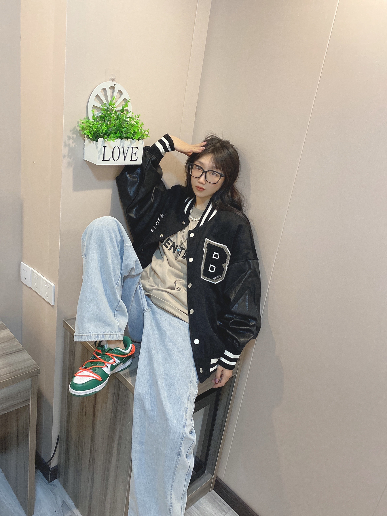 ✦短袖:𝐄𝐬𝐬𝐞𝐧𝐭𝐢𝐚𝐥𝐬 ✦外套:𝐁𝐨𝐧𝐞𝐥𝐞𝐬𝐬 ✦裤子:𝐌𝟓𝐢𝐬 ✦鞋子:𝐎𝐰 𝐃𝐮𝐧𝐤 🧥这件是新入的一件棒球衣 毛呢拼接皮质的面料 拿在手里沉甸甸的 一点都不臃肿 穿上垂感超好 但是超暖 黑白配色好看又好搭 👖经常穿的一条牛仔裤 性价比超高的款 近期一直都在穿它 👟owdunk跟牛仔裤简直是绝配 怎么穿都好看 很有街头感