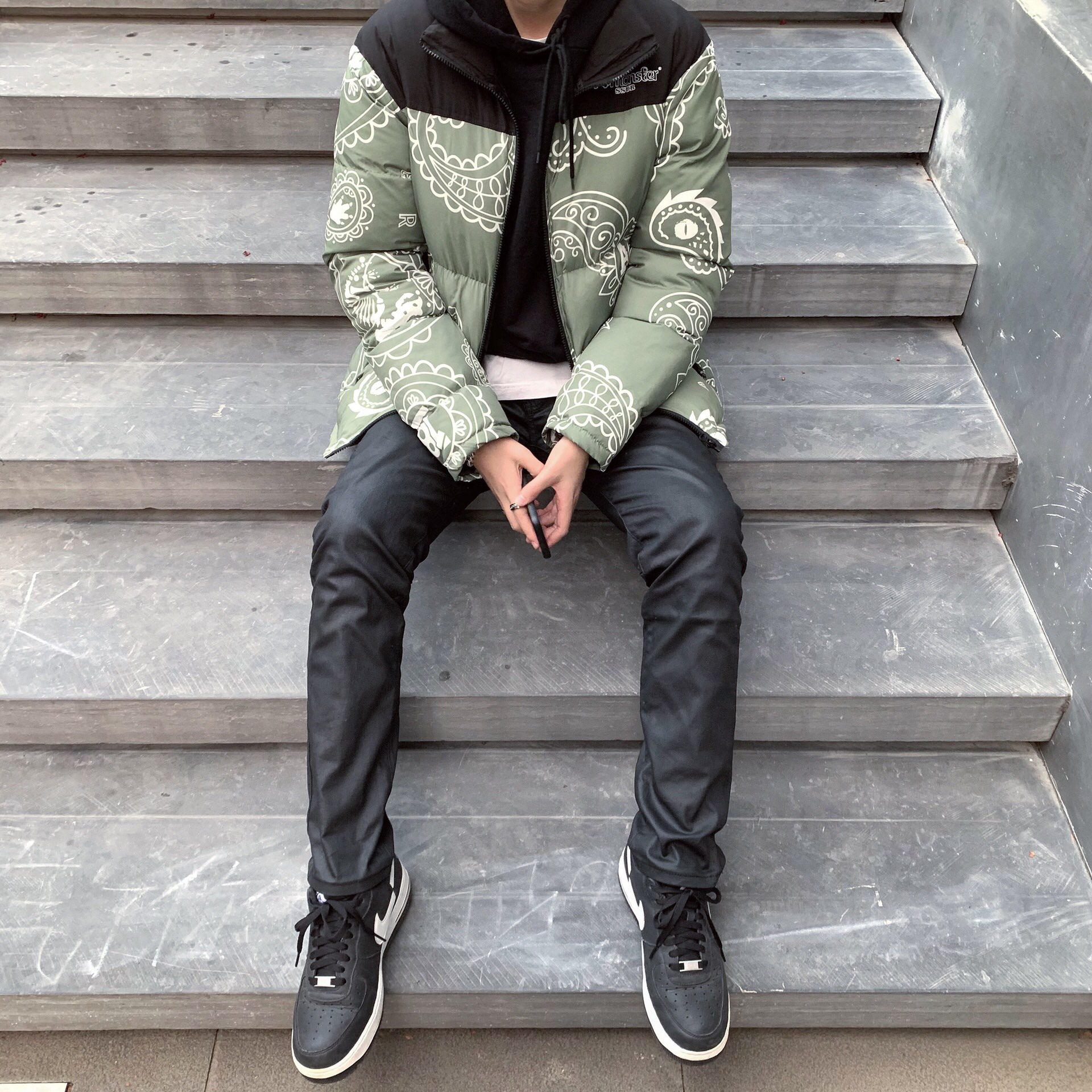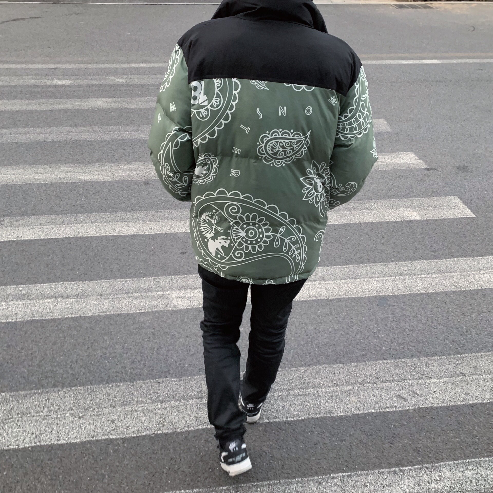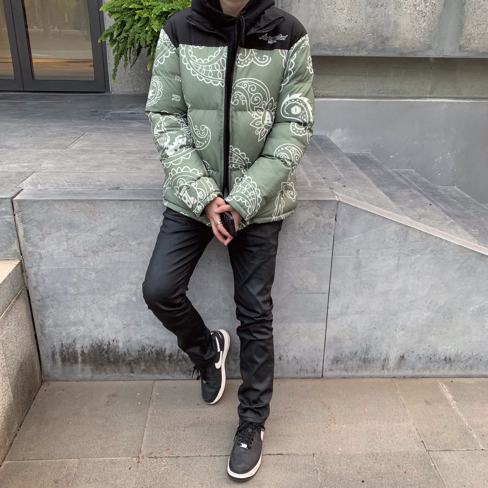 那么先从颜色上来说 腰果花的设计就比纯色骚上不少吧 不少人喜欢亮一点的羽绒服也是因为冬天灰度较高 如果还穿黑白灰的话属实平平无奇 这件amonster的羽绒服三个颜色都挺好看的 不同于TNF的纯色拼接设计 它的腰果花满印使衣服更加独特了些🤙 再来说说用料吧 羽绒服其实是冬天必备的衣服 但是很多人因为羽绒服很臃肿而逃避选择(比如高中时候的我)但是这件羽绒服做的很轻便 虽然很薄但是厚度很实在 穿起来不肿但是又很保暖 这不就是大家正追求的嘛🤔 最后说说TNF的平替为什么值得购买 其实对于学生党而言 即使是普通款的TNF羽绒服 价格也相对来说高了些 版型确实不错 买家秀也很吸引人 花了很多宣传在大众面前打广告 可是买东西还是要买自己能力范围之内的 如果我要选择攒钱买一样单品 我一定选择穿平价的衣服裤子然后攒钱买喜欢的球鞋 我想大部分人和我也都是一个感觉吧🤓 所以与其花那么多钱买个品牌不如享受一下新生代国潮的魅力👍