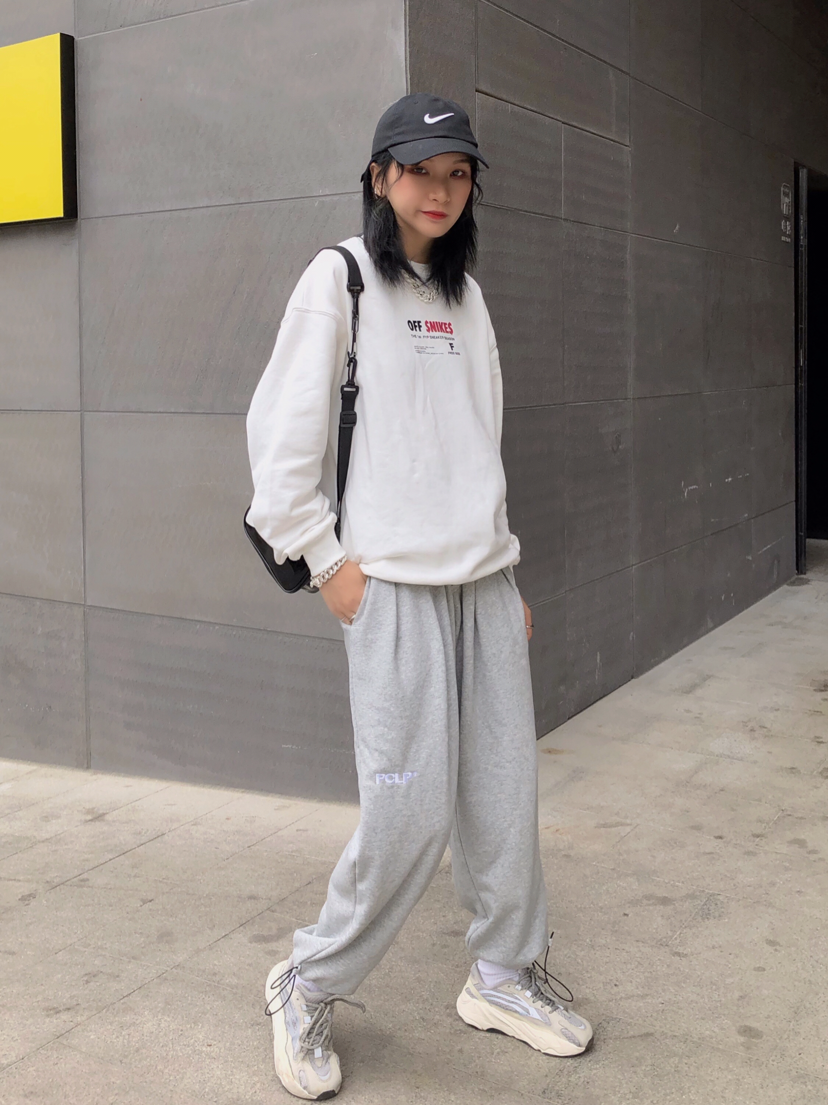 上衣:FYP 裤子:FPA 鞋子:椰子700 今日浅色系穿搭,白色的卫衣搭配浅灰色的卫裤,鞋子则选择同色系的椰子700搭配,怎么喜欢怎么穿,要的是态度