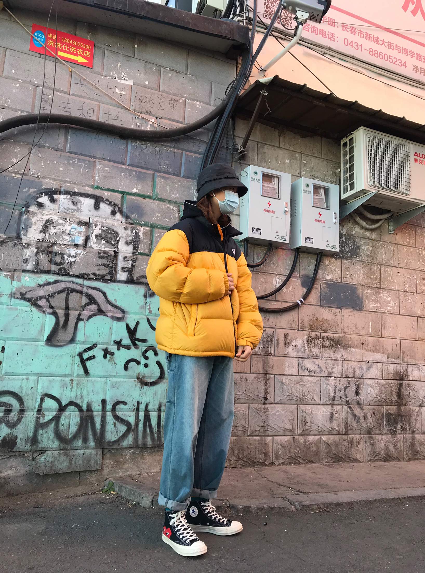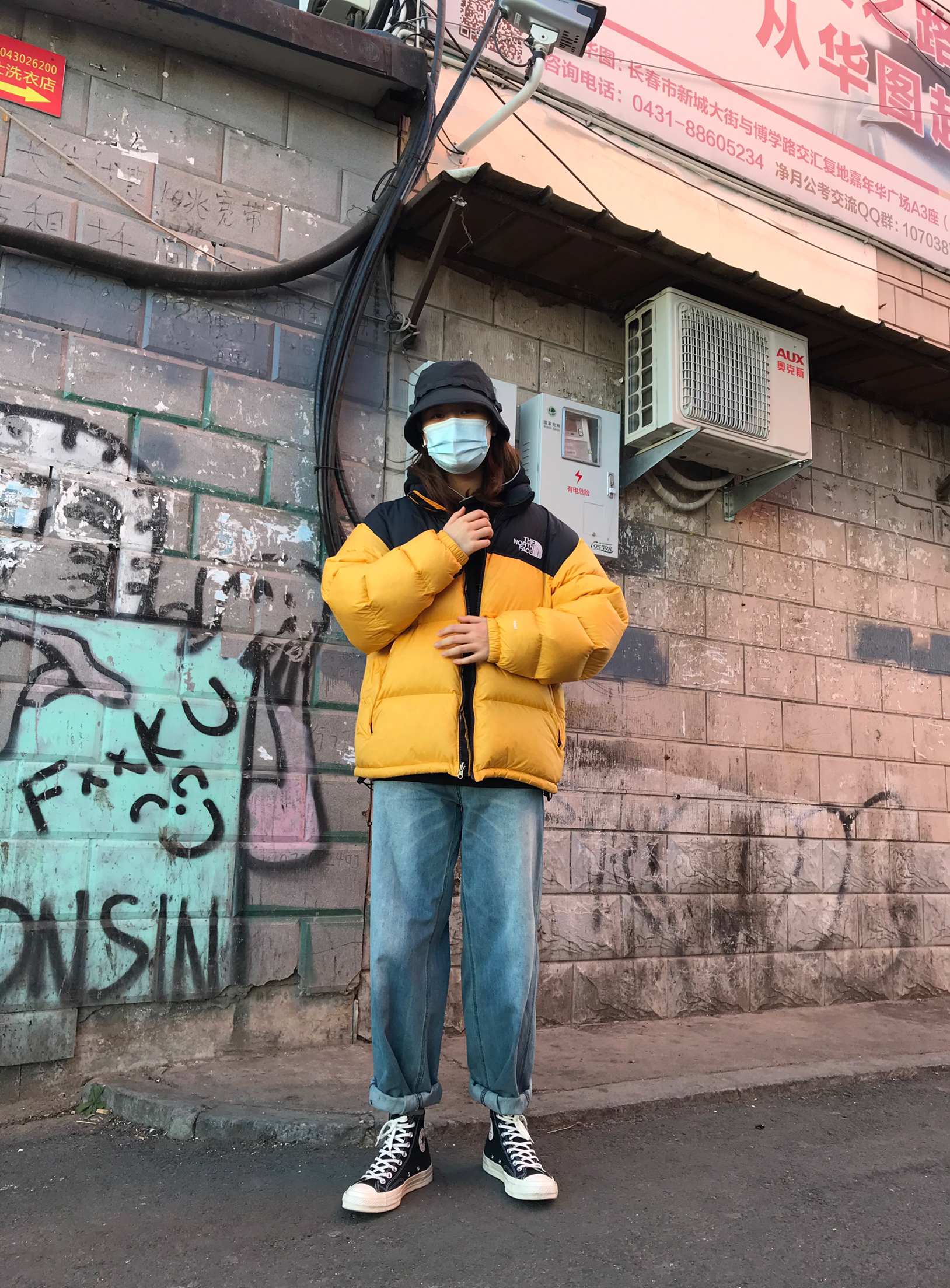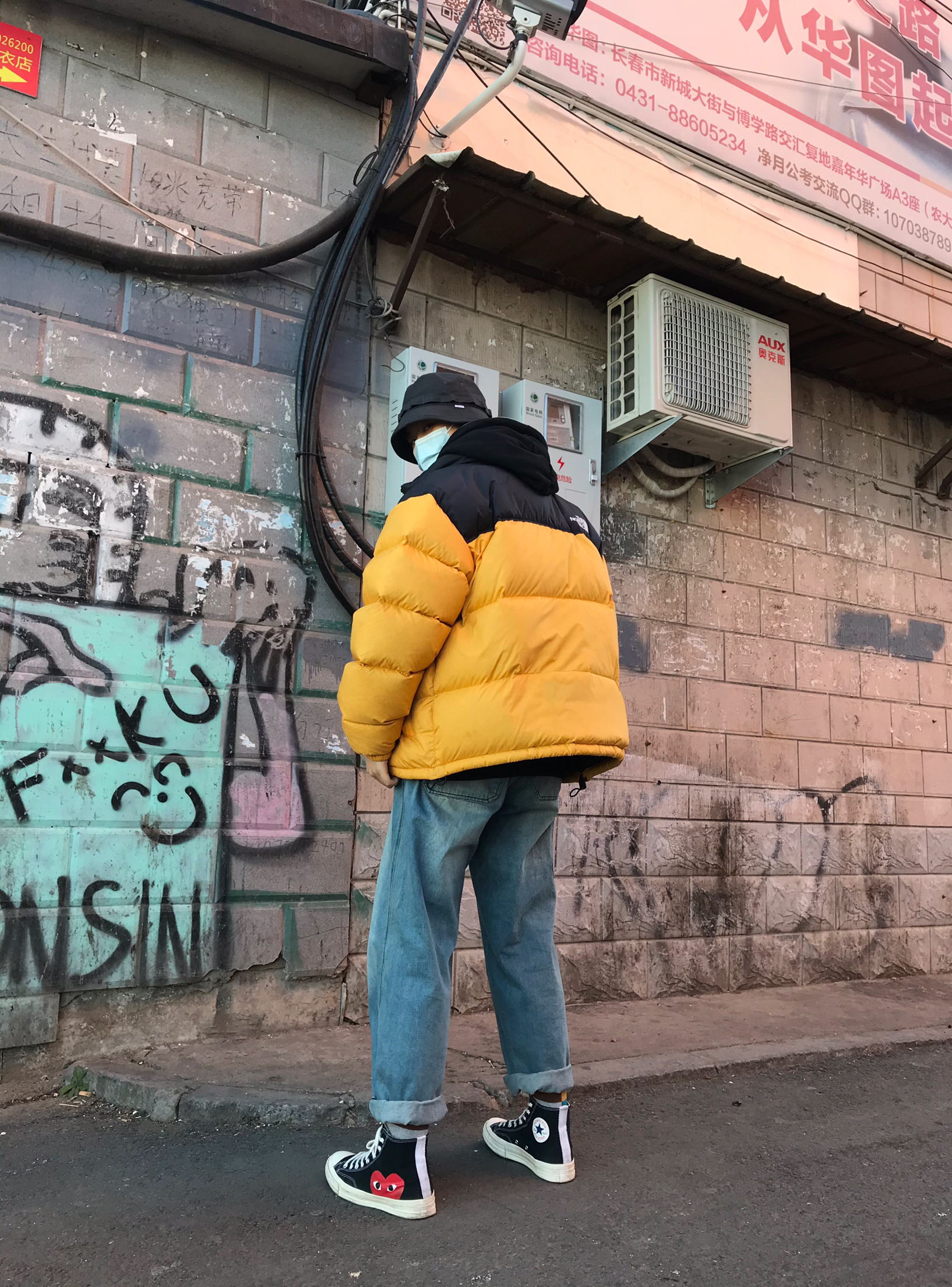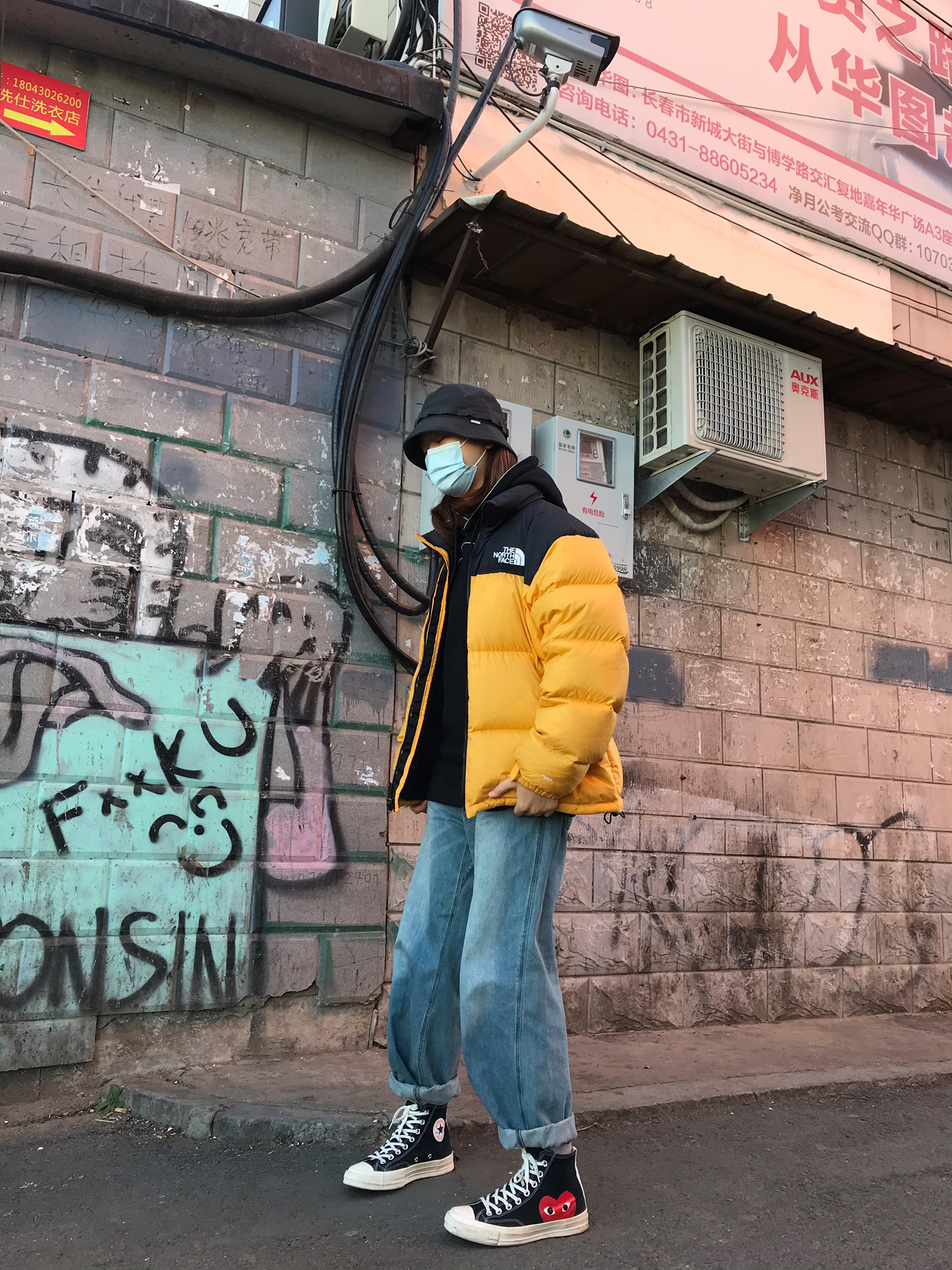 👾穿搭 🧢:Wtaps 19ss 渔夫帽 这帽子真的非常好驾驭 而且风格不局限,什么风格都能穿。 👔:内搭Palace 19ss 3M反光logo卫衣,这件衣服细节满满,帽子上的反光条设计的科技感十足,晚上穿更好看。 外搭就是The North Face北面羽绒服,鹅黄色亮色的羽绒服也很耐脏的,而且亮色搭配秋冬的暗色也很好看,保暖程度就是一件过冬,版型也超级宽松好看。 👖:小鬼出品,阔腿牛仔裤,牛...