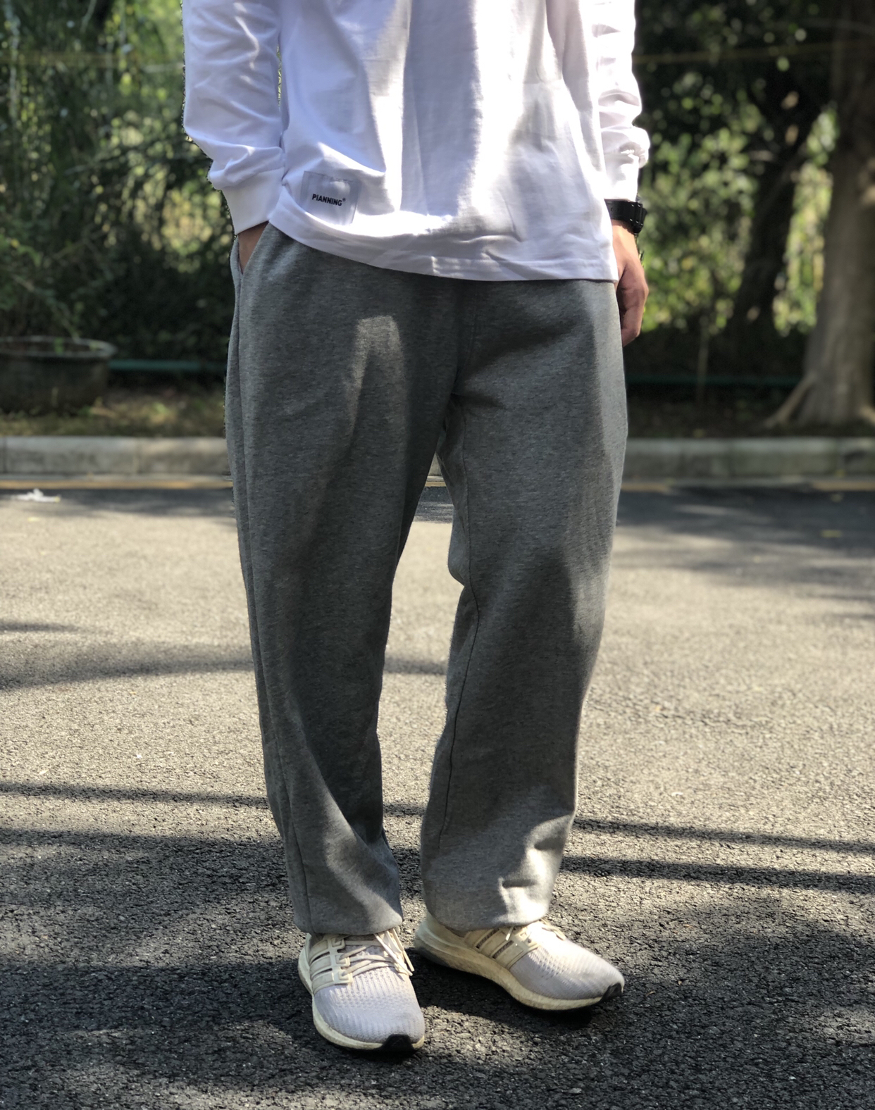 👔:tisvee 秋冬必备的一件打底长袖 背后有刺绣工艺细节挺不错 单穿也是没问题 👖:tisvee 卫裤的舒适和简约它都具备 收脚的设计也是很适合平时休闲运动 灰色很正 是一款百搭休闲裤了 鞋子 ub4.0 一身都比较浅 所以选择了ub 既可以运动也可以休闲!