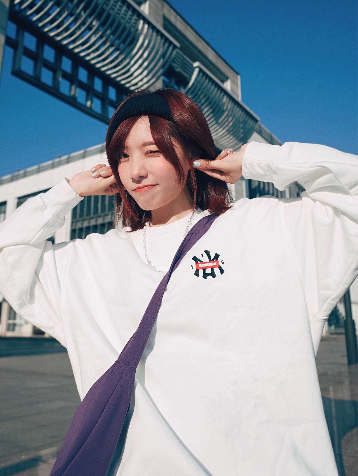滴滴 🍇🍇🍇 带着新宠香芋紫aj1再次上线! 今日一身都是白灰紫配色,喜欢软糯的白色卫衣REDCHARCOAL x 顽童🙈🙈🙈 包包:comback 袜子:poolguy 💜😳搜索11 给REBLUE11来一票8