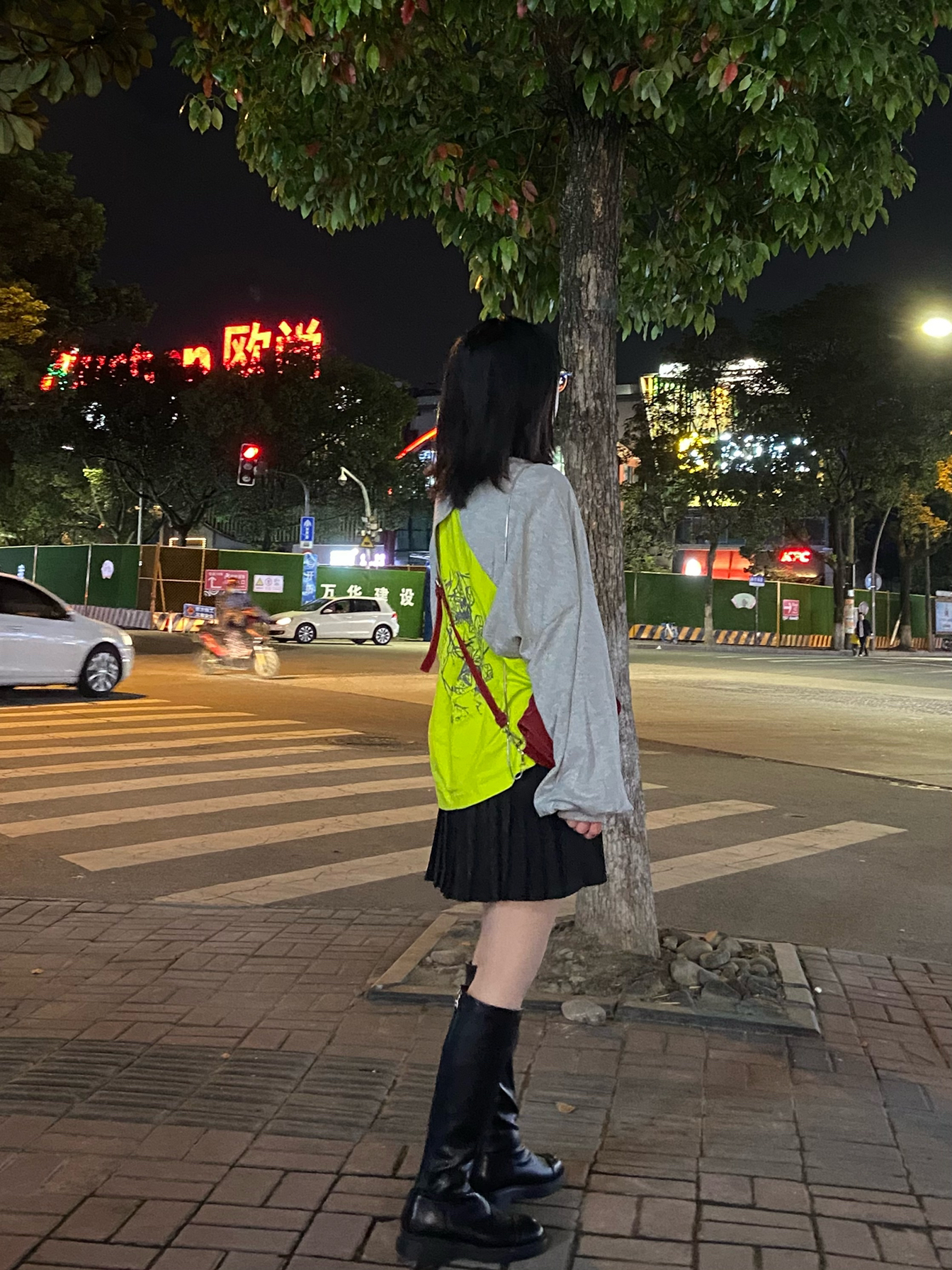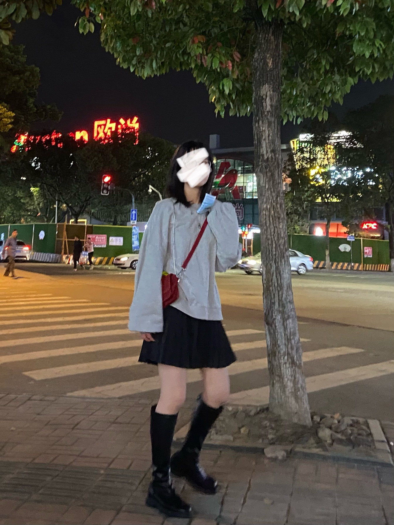 以前一直觉得小个子穿长筒靴会很灾难,今年骑士靴的风太大了!我也没有禁得住诱惑!入手之后的感觉就是,真香!超级显瘦还保暖,我爱惨了! 👧:158/42 👕:earpopo 很有设计感,一眼💓 👗:很普通的百褶裙 👢:栋咚 软皮的很舒服很显瘦