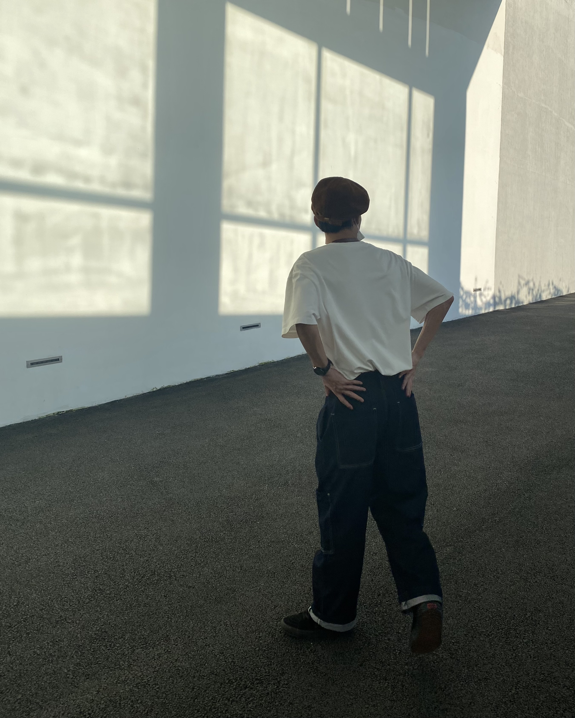 🧢:friedrice 👕:reocha 👖:fmcam 👟:vans 今天也是很简单的穿搭,白t 加上细节满满的牛仔裤,鞋子选择百搭的黑武士,再戴上一个棕色的灯芯绒材质的报童帽,that’s all.