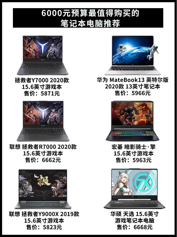6000元是很多学生党购买笔记本的预算,这个价位的笔记本往往都是偏向于性价比,但是比起来7000档又低一个档次,所以也是比较容易纠结的一个档。那么我们就来推荐一下几款6000档性价比比较高的笔电。 1.联想拯救者y7000 2020款。这款作为一个一线品牌入门级的游戏本,其表现是可圈可点的。 首先联想一线品牌的做工与售后是没得说的,非常适合不懂电脑的小白购入。其次在游戏性能方面,像csgo,lol...