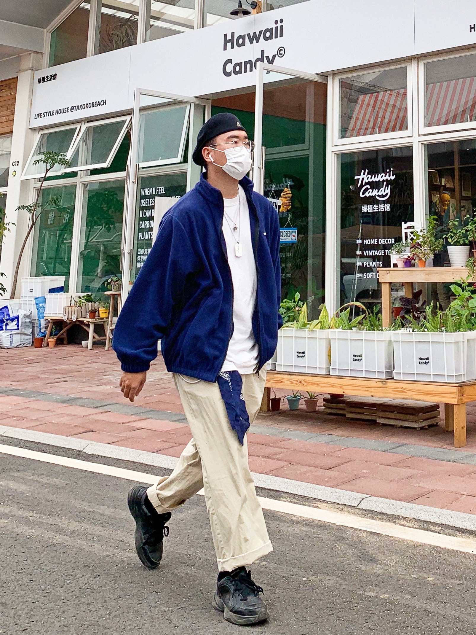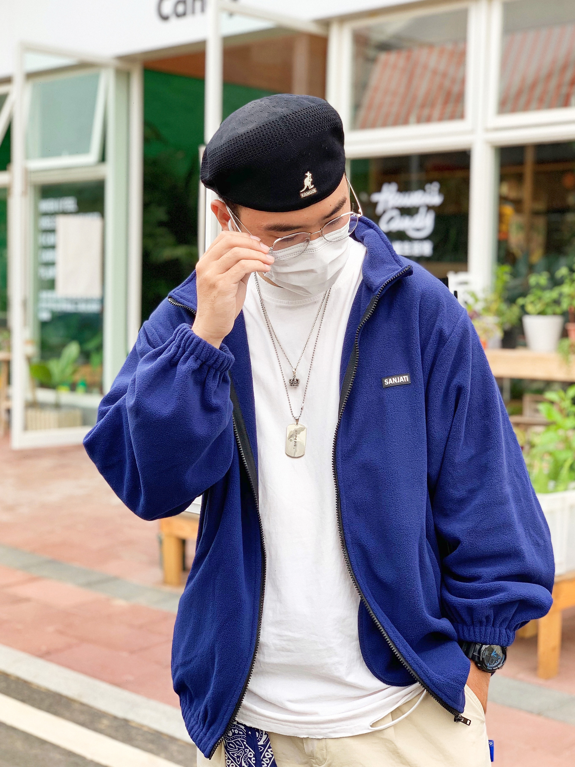 👔衣服:Sanjaticrane 整体以这个摇粒绒外套为主体,整体搭配围绕着外套进行,采用冷色调搭配与背景色碰撞 👖裤子:DETA 下半身选择卡其色工装裤,在版型上来更好的呼应整体的搭配,让整体搭配更加完善。 👟鞋子:air monarch iv 这双鞋的配色很好的协调了上半身的配色。