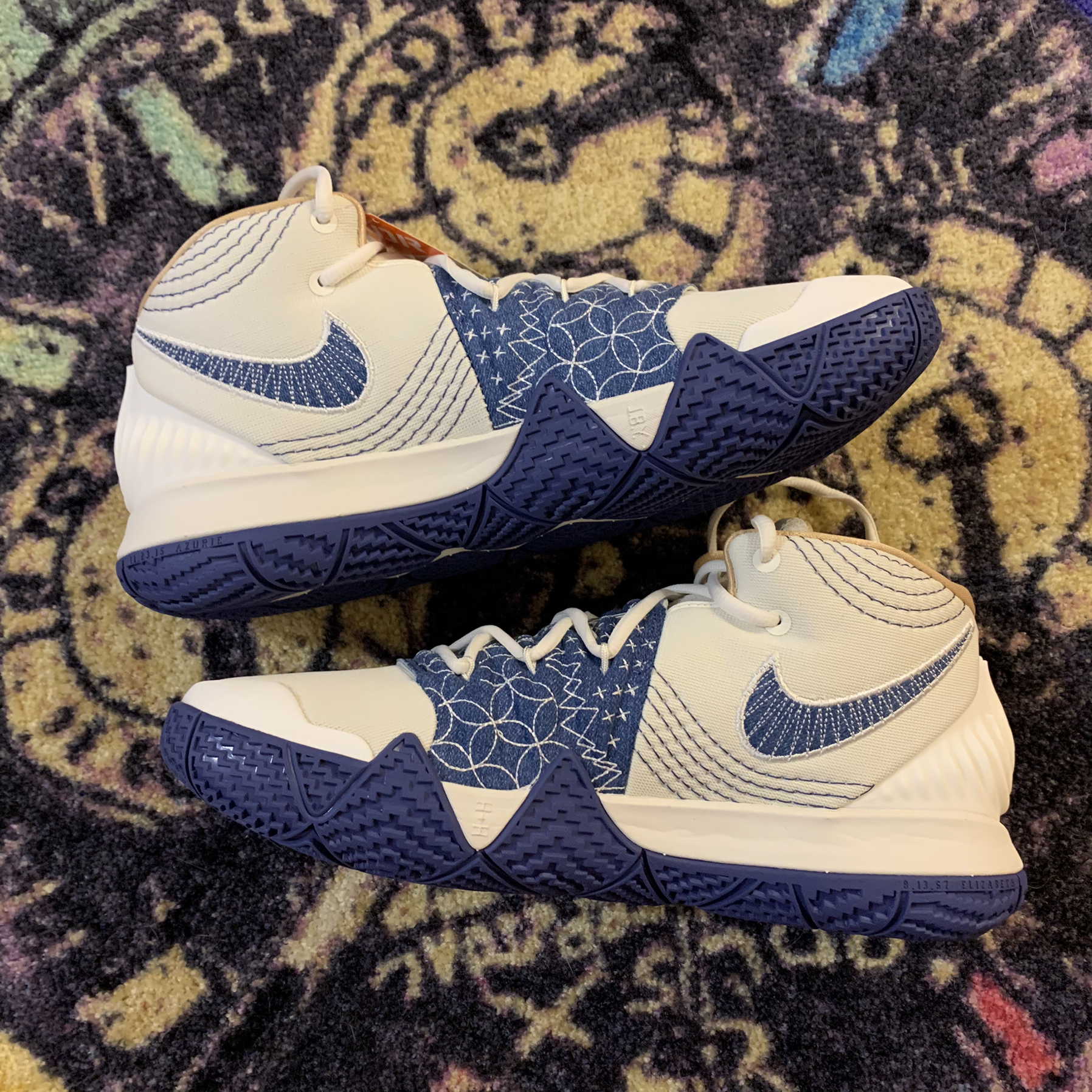 被命名为“sashiko” 源于日本刺绣 为平平无奇的白蓝色系注入了神秘的东方力量 乍看之下 还跟LV联名的鞋款有几分相似 S2作为欧文456三代的合体 选取了各自最强的部分 4的鞋底 5的捕蝇草魔术贴 6的灵魂之眼后跟 遗憾的是中底没有搭载zoom turbo气垫 提醒一下打算入手的各位 欧文系列国内外版本鞋型差异较大 国外版前掌更窄 可以适当买大半码 脚宽劝退