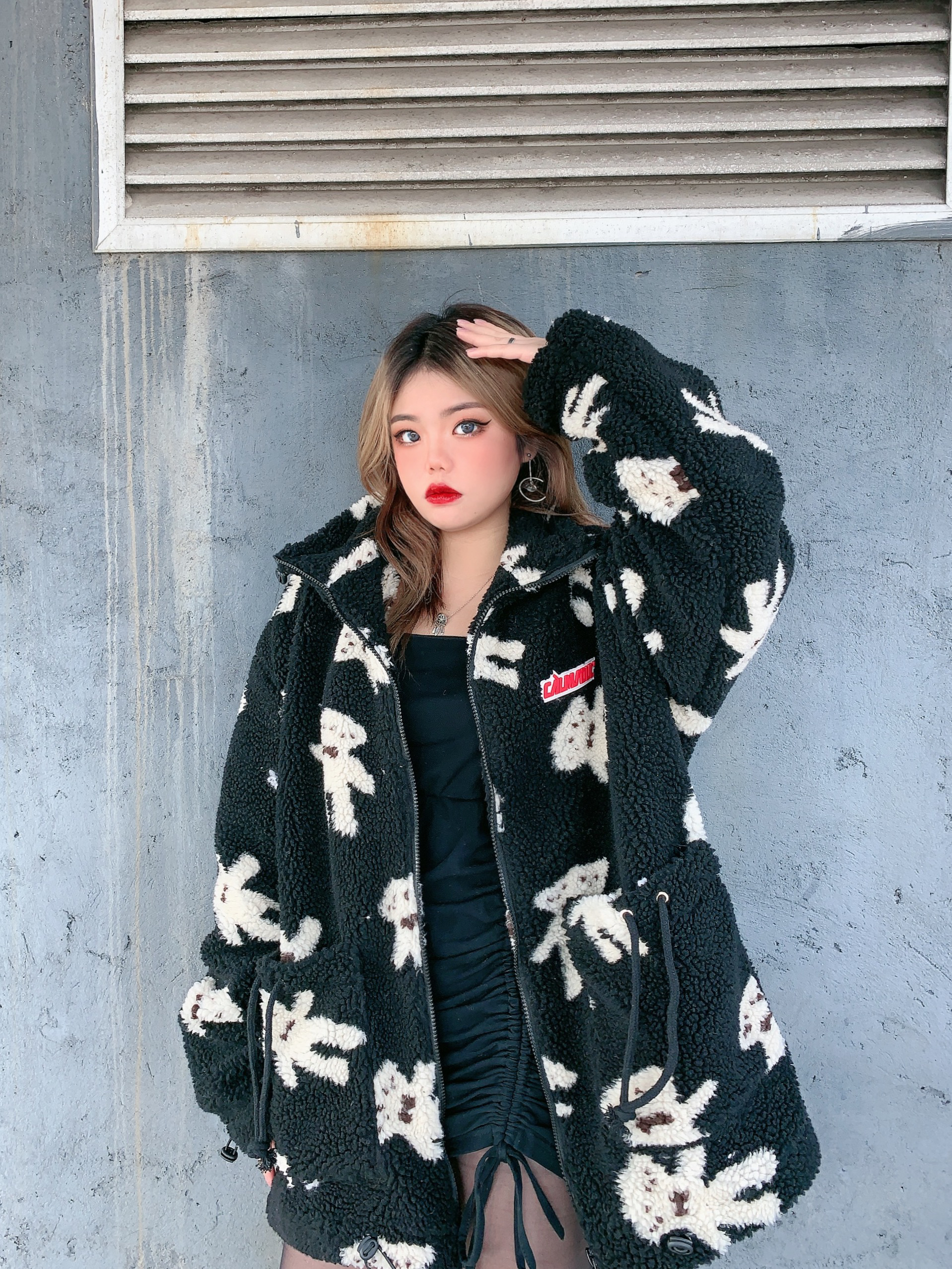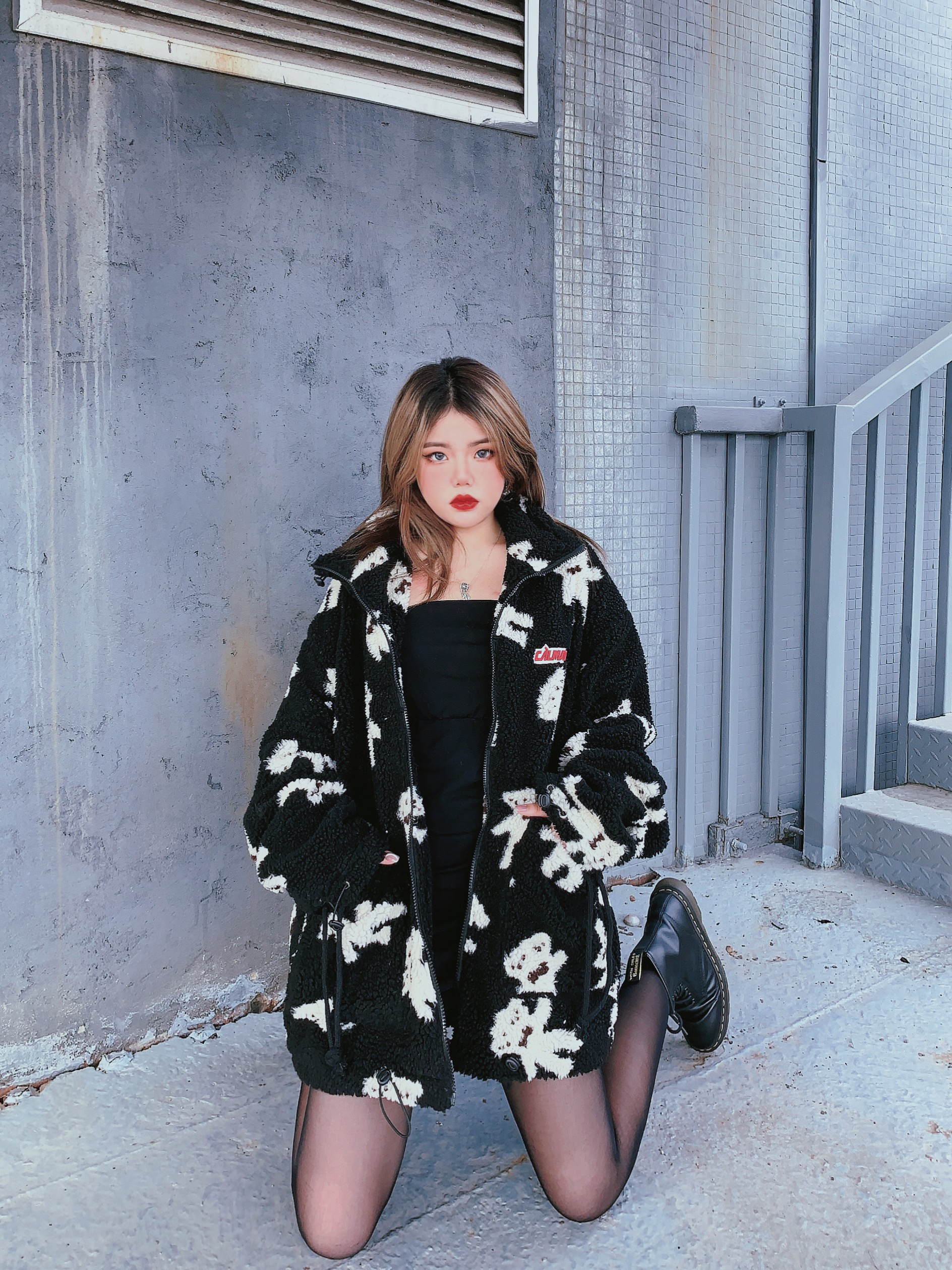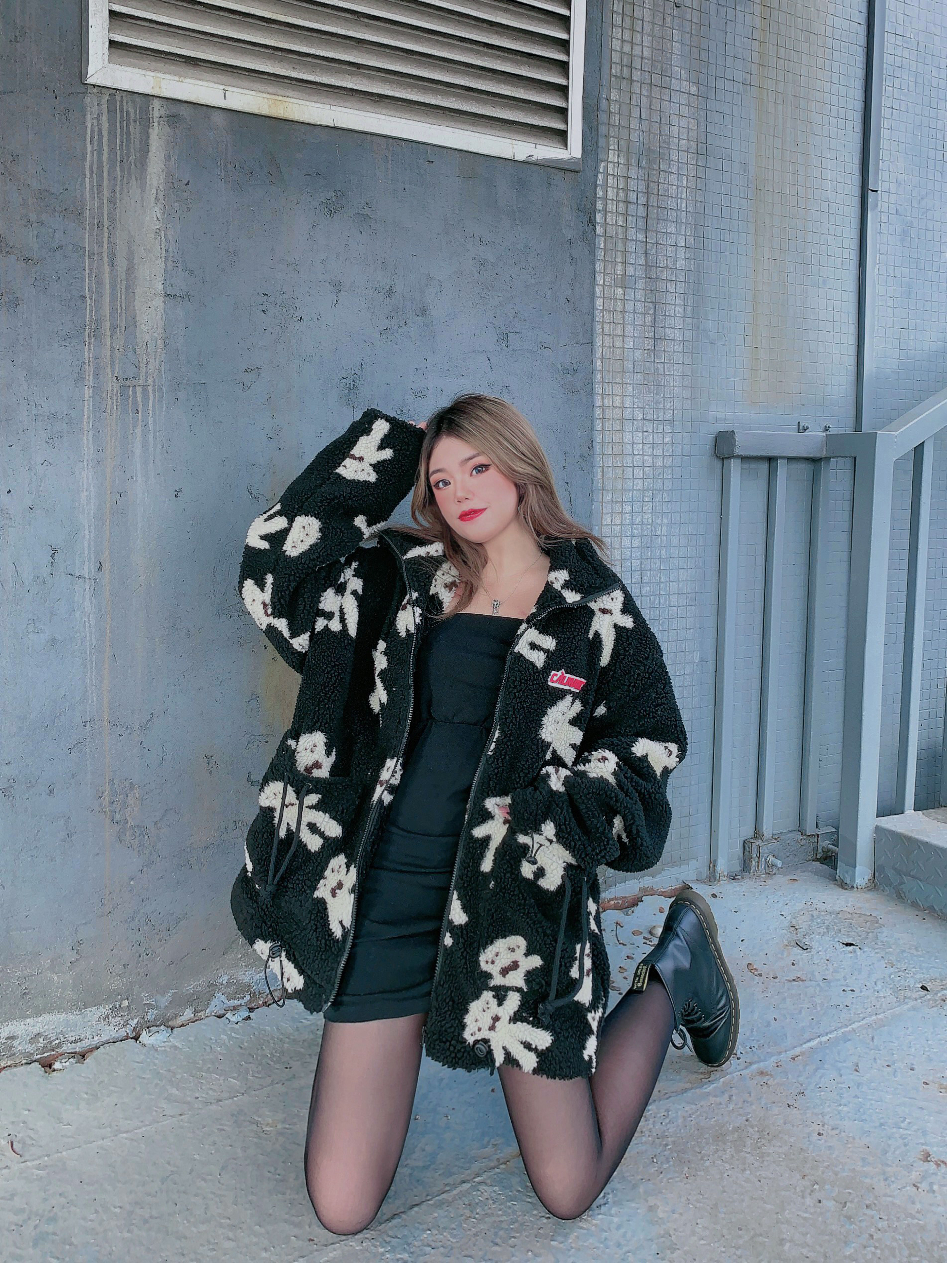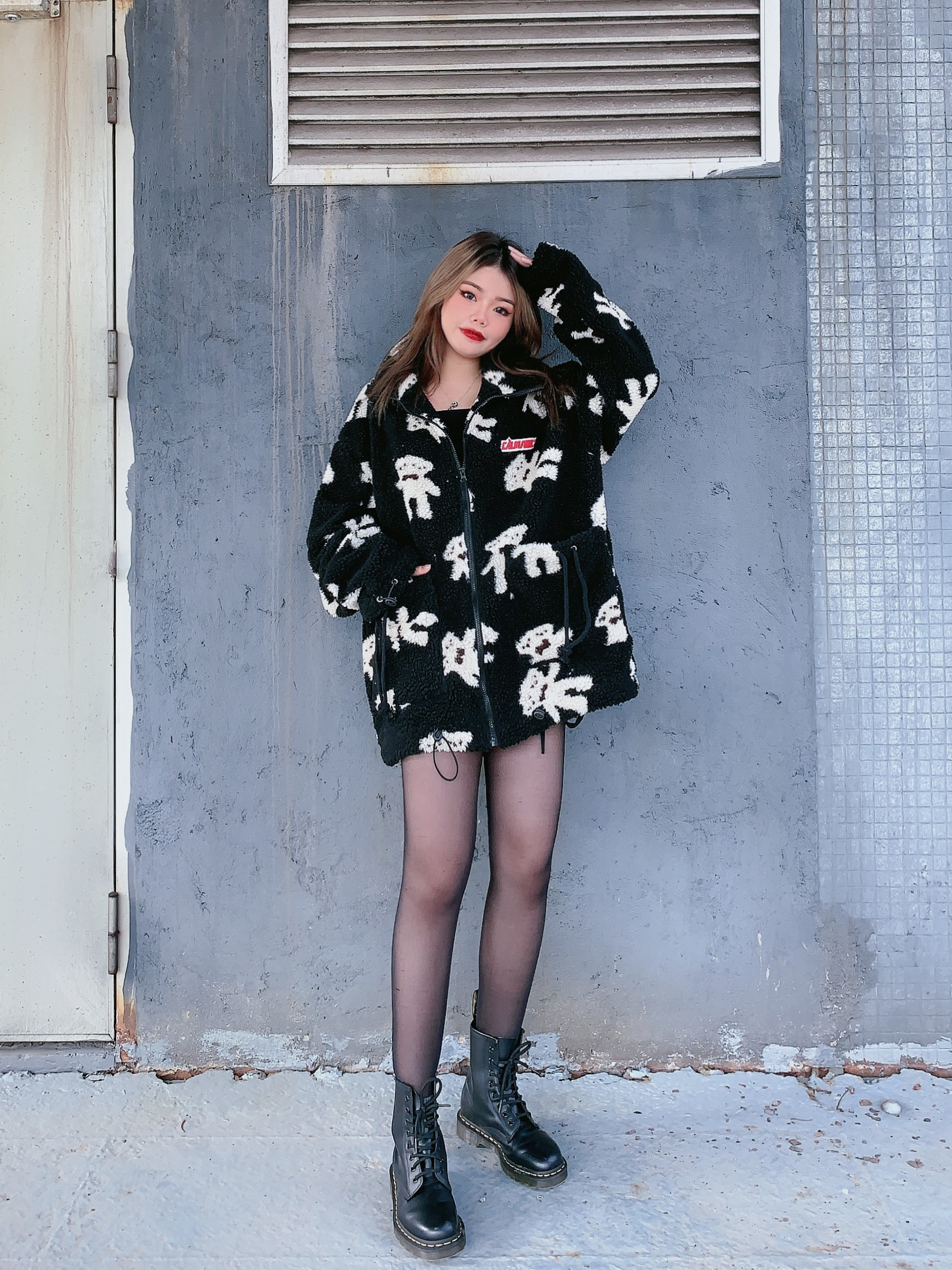 👔外套:HYPCTE ONLINE 👢鞋子:鞋子:Dr. Martens 秋冬季怎么能缺少羊羔绒外套 这款满印小熊图案设计国潮风满满 今年超火的小熊元素可盐可甜 姐妹们一定要尝试黑丝➕马丁靴搭配 出街回头率百分百 上身效果超A ☁️天气冷了穿马丁靴最合适不过了 帅气同时又不失温度 很修饰脚型