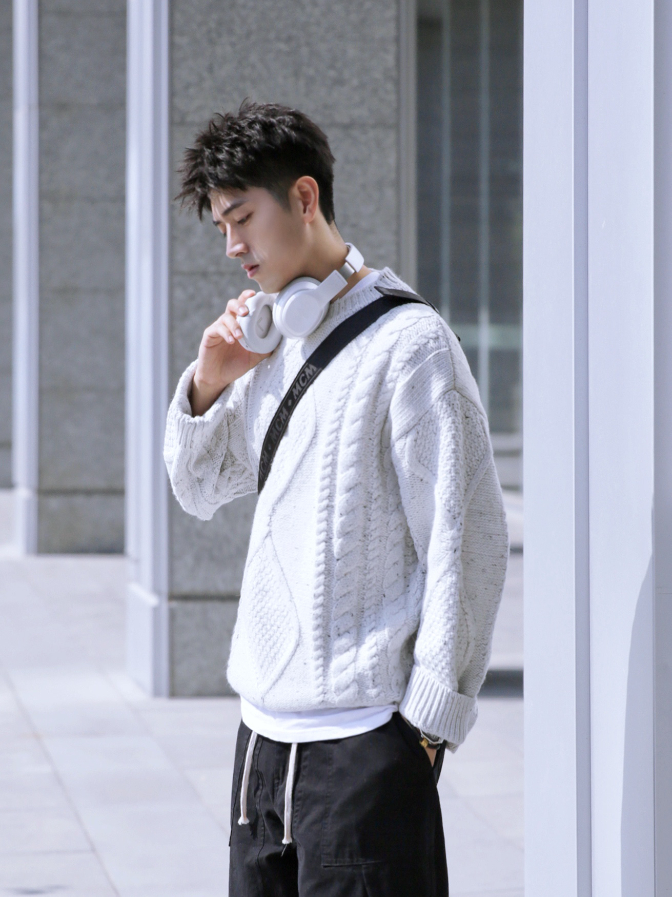 🔹前几天分享了两套亮色系毛衣穿搭,好像大家还蛮喜欢的。那么,今天分享两套浅色系毛衣穿搭,搭配我近期的新发型,街拍两套LOOK给大家。 — 👔·衣服·基本款毛衣—PD大人; 🎧·耳机·白色头戴式耳机—IAMARCHI; 👖·裤子·宽松直筒裤—PD大人; ☁️·袜子·日常白袜—LARGEE; 👟·鞋子·跑鞋/帆布鞋—NB/CONVERSE; — 🔹关于男士发型的分享,今天这个发型适合发质较硬的男生,因...