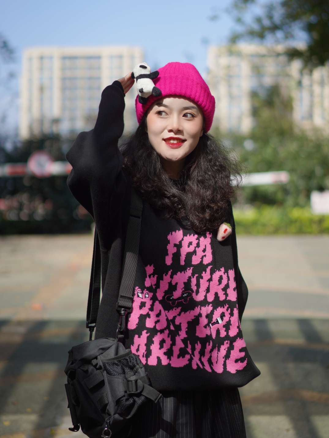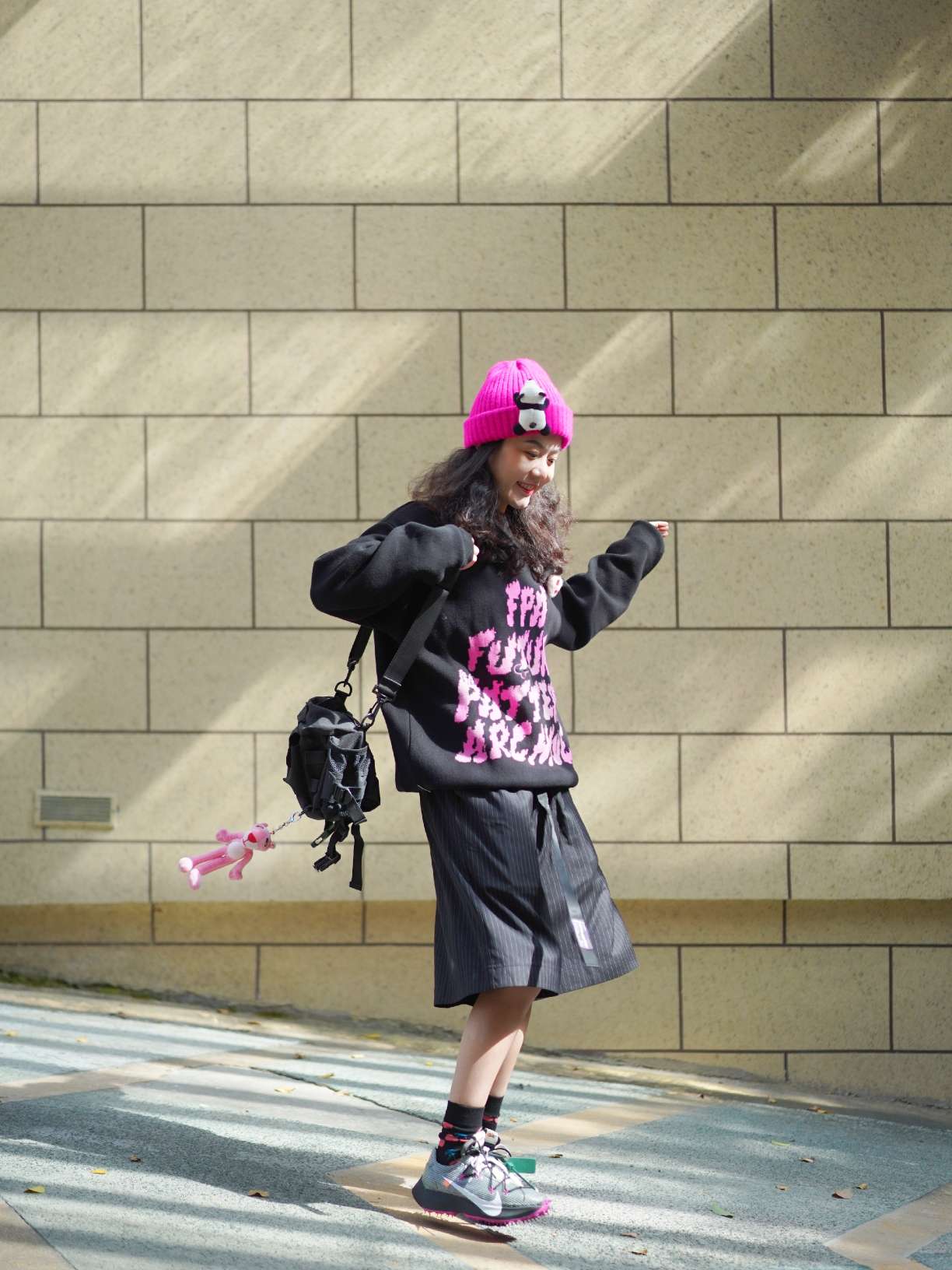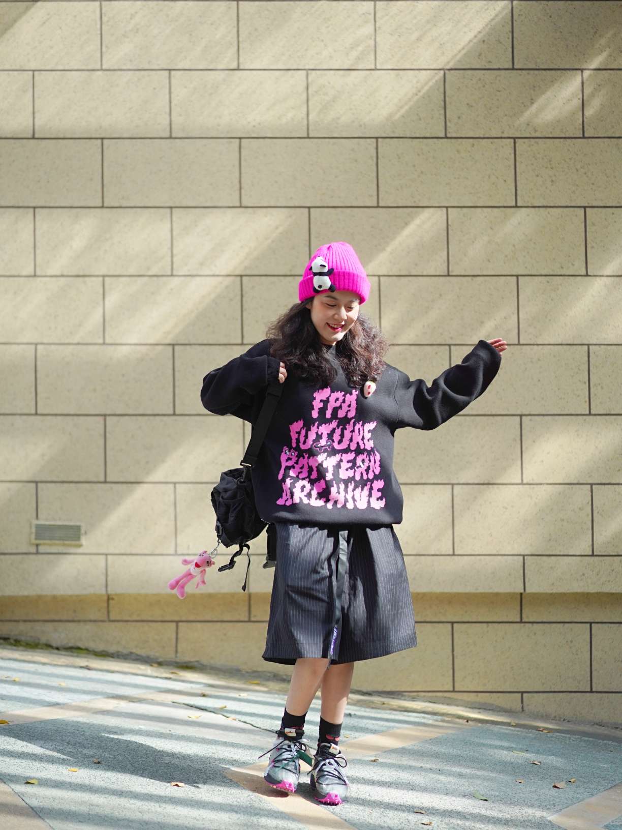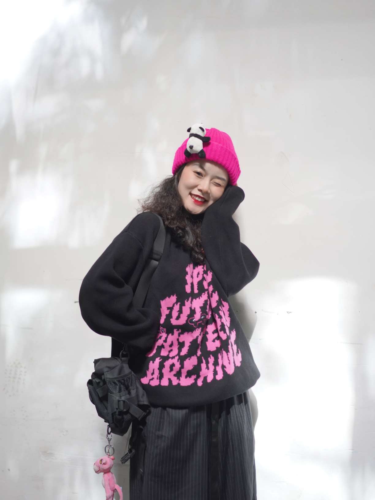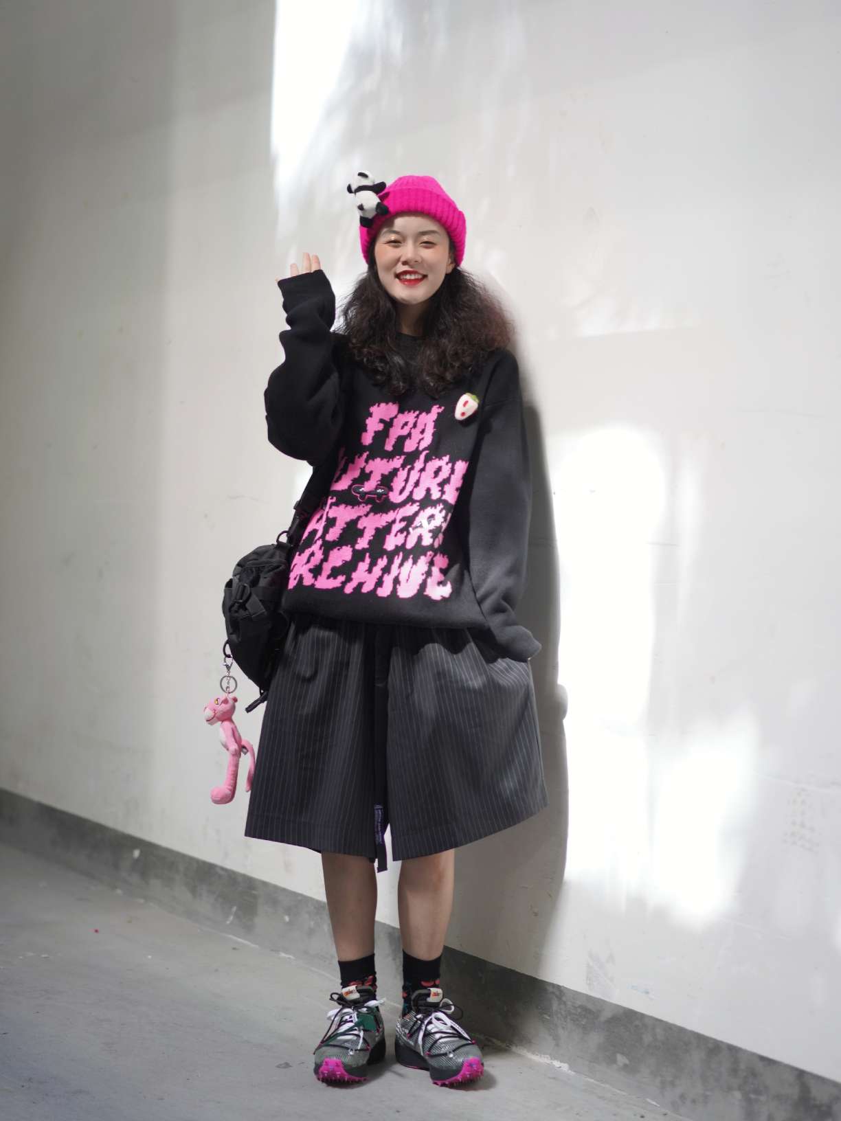 万物可爱可别忘了毛衣呀! 秋冬过季毛衣可是最棒的选择了,温暖舒适真的不要太可爱,想要所有人看到我都甜甜的暖暖的才是最舒服的。浙江的天气还没有那么凉,毛衣搭配短裤相当可爱了,搭配玫红色的小帽子就很衬毛衣,千万别忘了羊毛毡配饰,缺一不可! 毛衣:FPA 短裤:HARSH and CRUEL 鞋:ow*nike 包包:九伍公园 挂饰:MINISO
