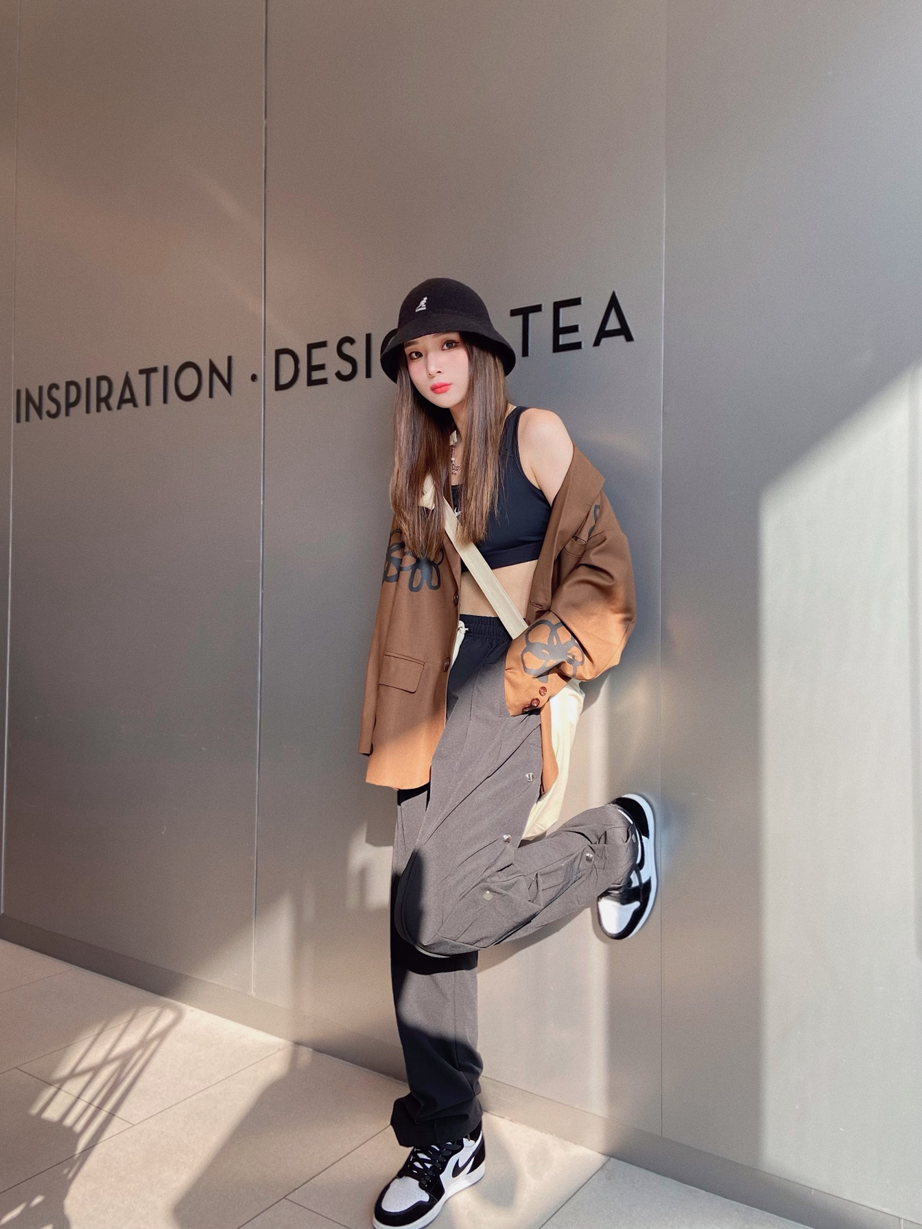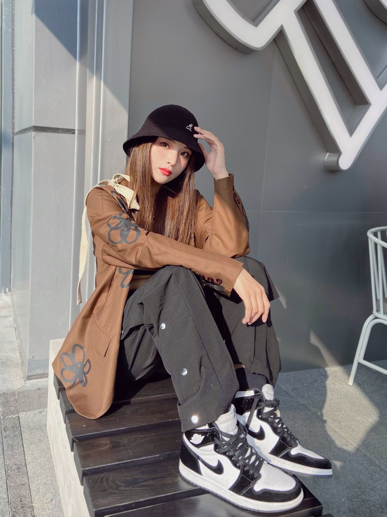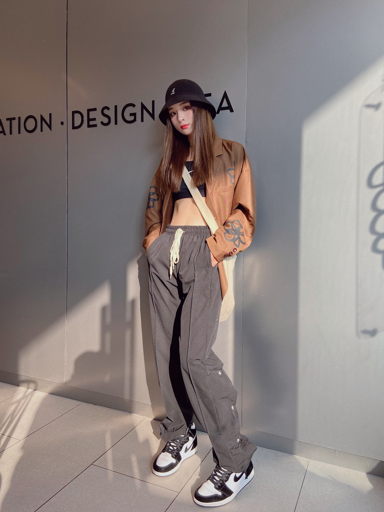 帽子:Kangol 外套:MODITEC 内搭:Nike 裤子:DuDu潮流集合店 包包:COMBACK 鞋子:Aj1熊猫 这件手绘的花朵西装观望好久了!终于在双十一把它入手了!!!真的质感一级棒!!卡其色就特别高级感而且很适合现在的季节!! 裤子是最近穿的最多最多的!侧排扣设计真的爱了~面料有点微弹。上身特别舒服!直筒特别修饰腿型~搭配任何鞋子都好好看!!!