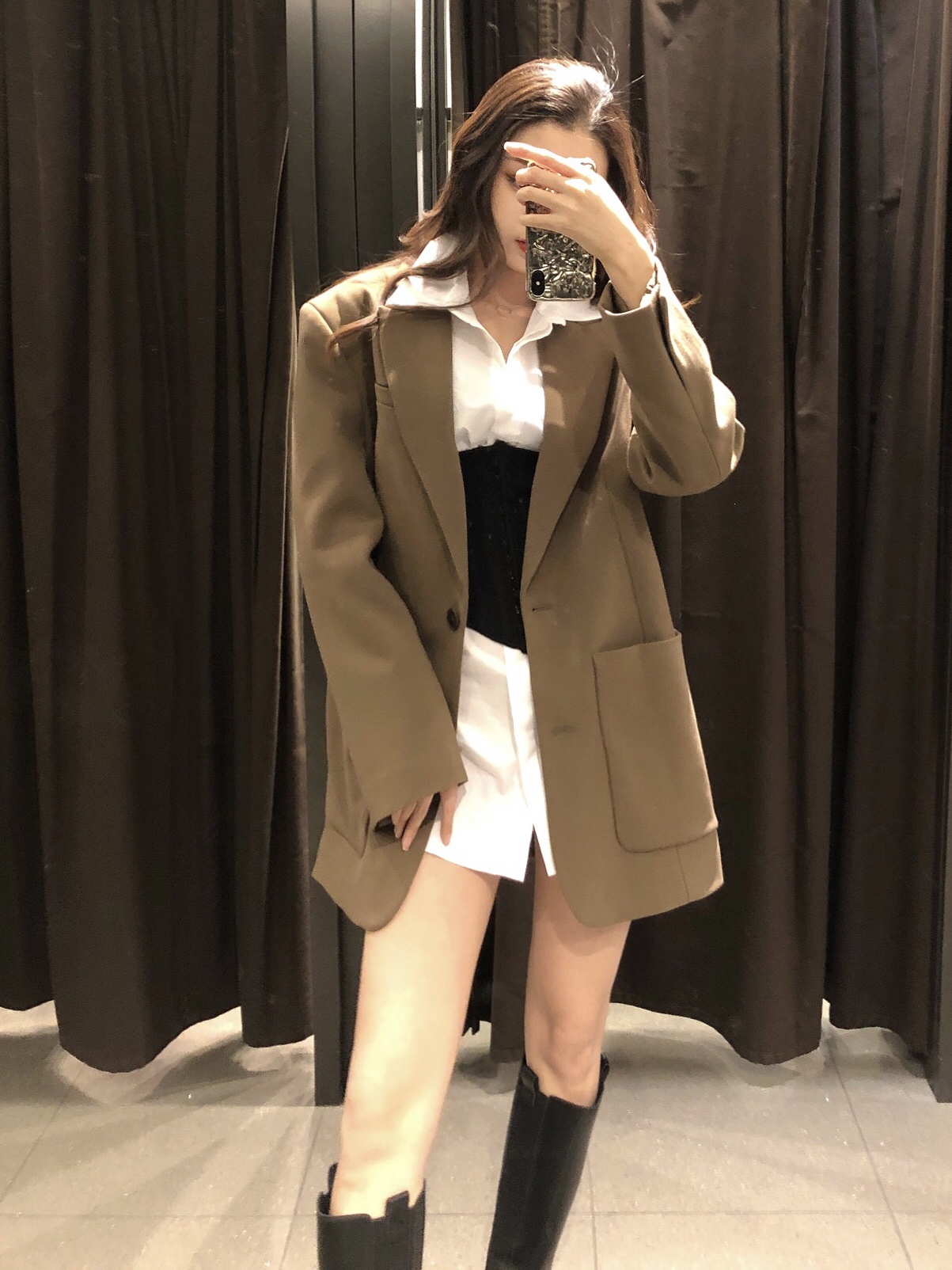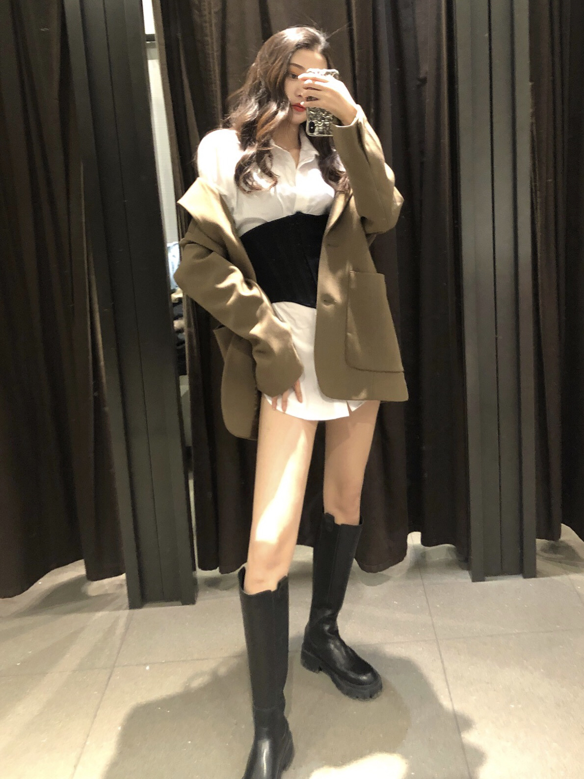 这里是你们酷酷的萬一❤️ 最近被zara毛衣洗脑严重,忘了给姐妹们推荐我最最最爱的西装外套了,✨今天它来了,携着它的穿搭来喽~ - ✔️军绿色西装➕白衬衫➕高筒靴 绝美高级感穿搭,非这仨大佬单品莫属!其实我是奔着去买束腰的,却被种草了一身儿🙃🙃🙃 这件西装太帅了👍我宣布军绿色是我最喜欢的颜色‼️内搭了件白衬衫(剪裁太棒了,两侧开叉到腰部,男朋友让我买回去当睡衣😃)如果觉得单调,刚好把束腰利用起来,...