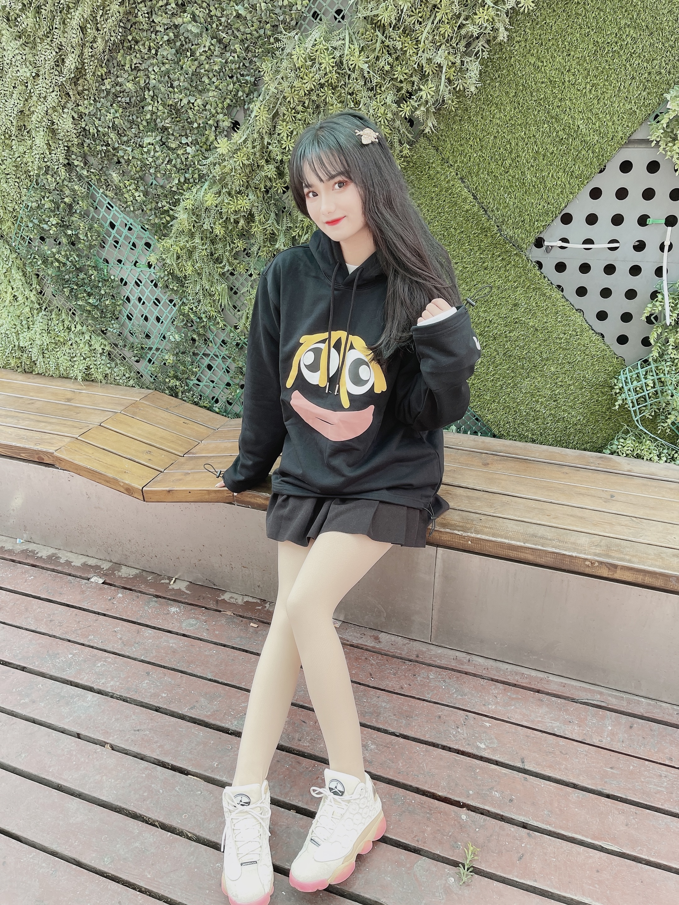 👔:iconslab 👗:黑色百褶裙 👟:Aj13中国年 很可爱的黑色暗黑风小魔鬼📸黑色的抽绳小丑卫衣🃏很有设计感~而且穿在身上非常舒服是很柔软的材质!百搭款搭配黑色百褶裙真是一绝很卡哇伊的亚子🧚♀️