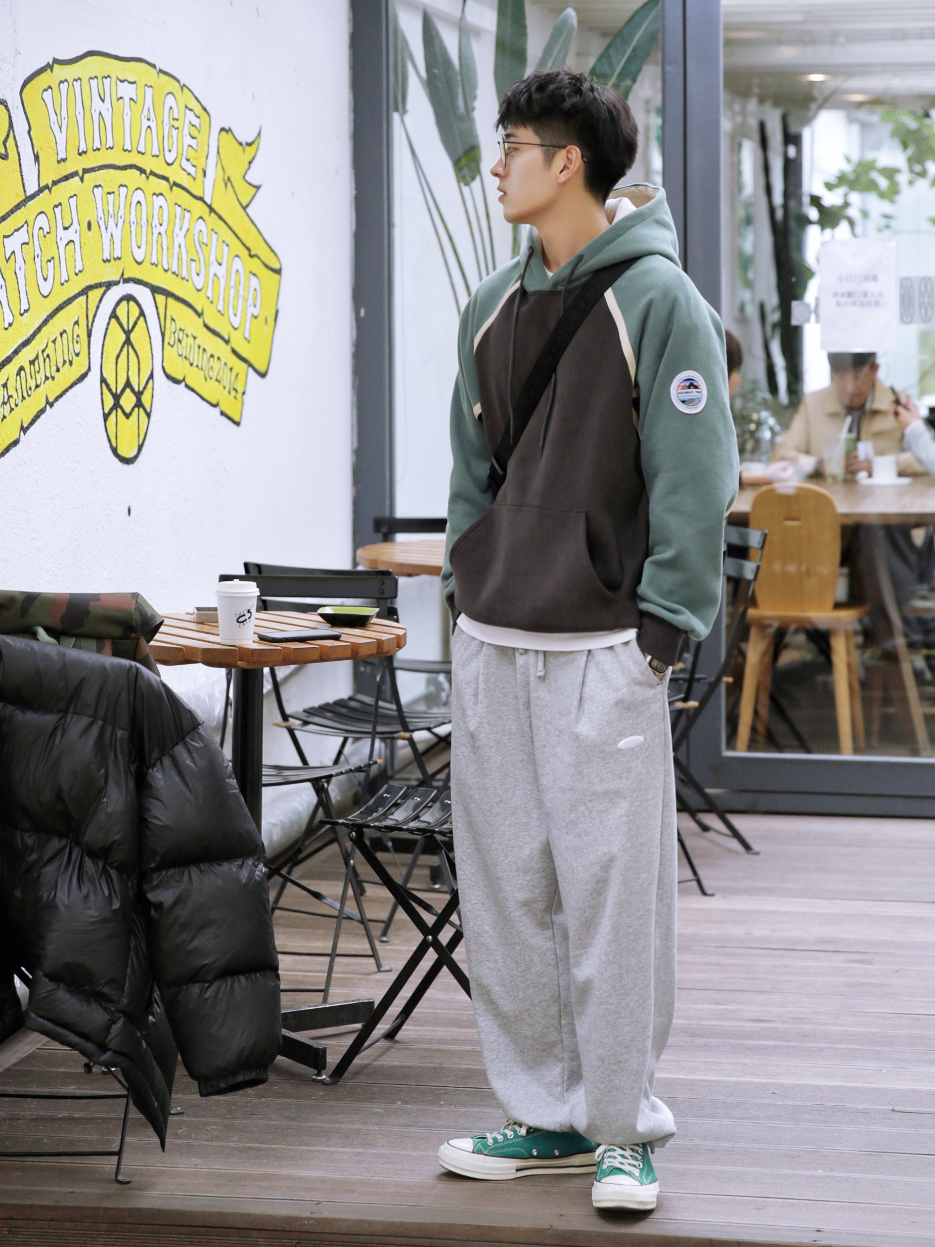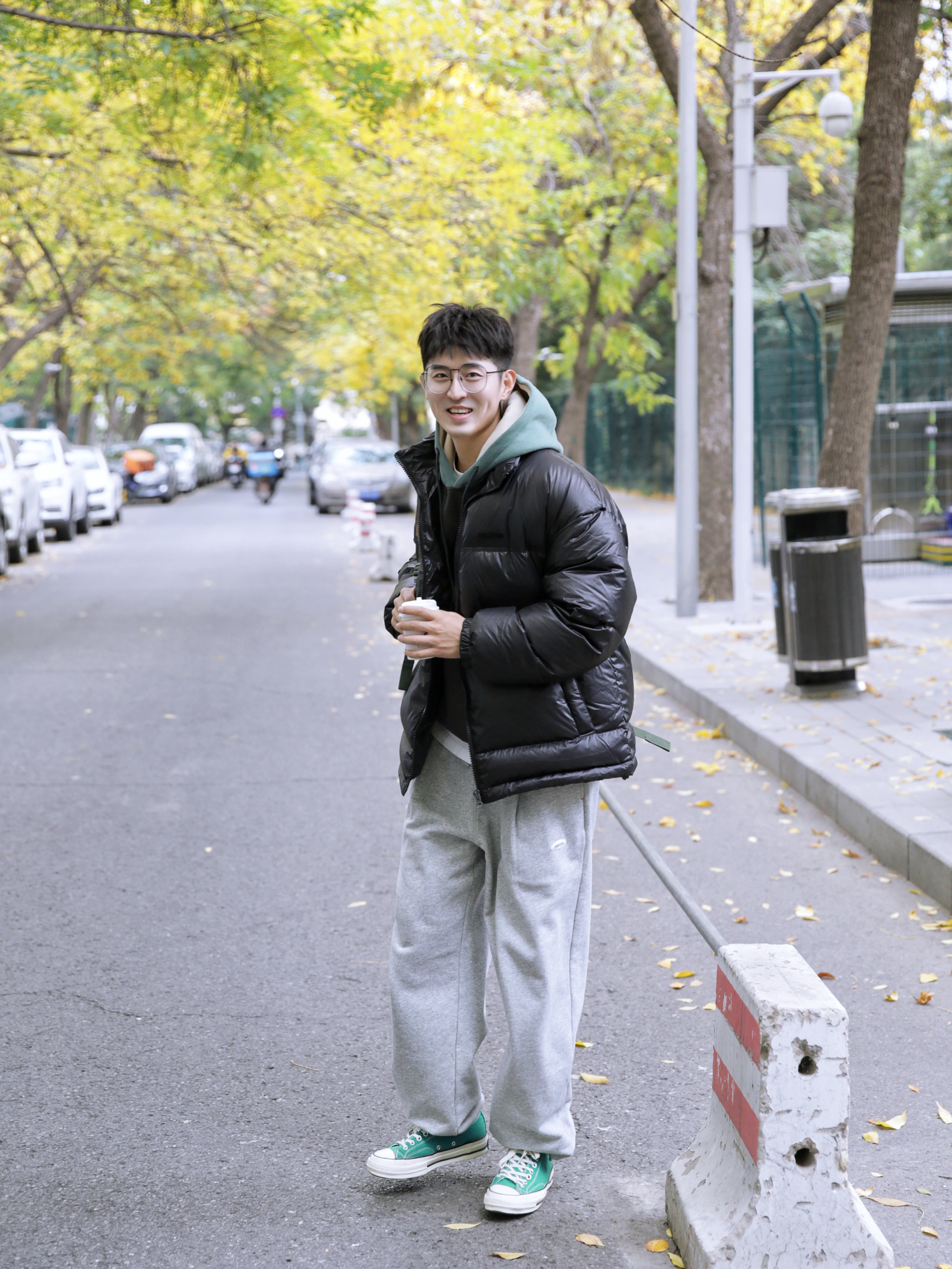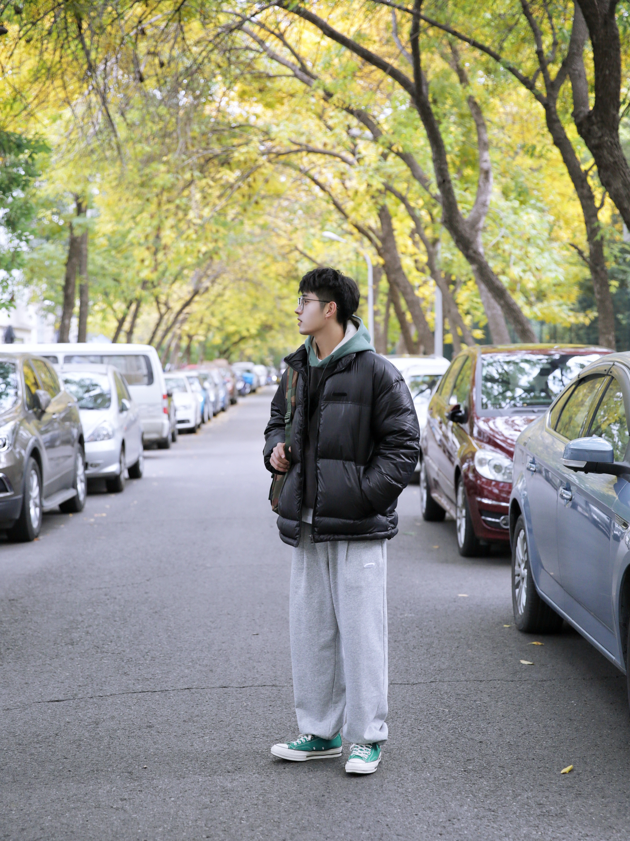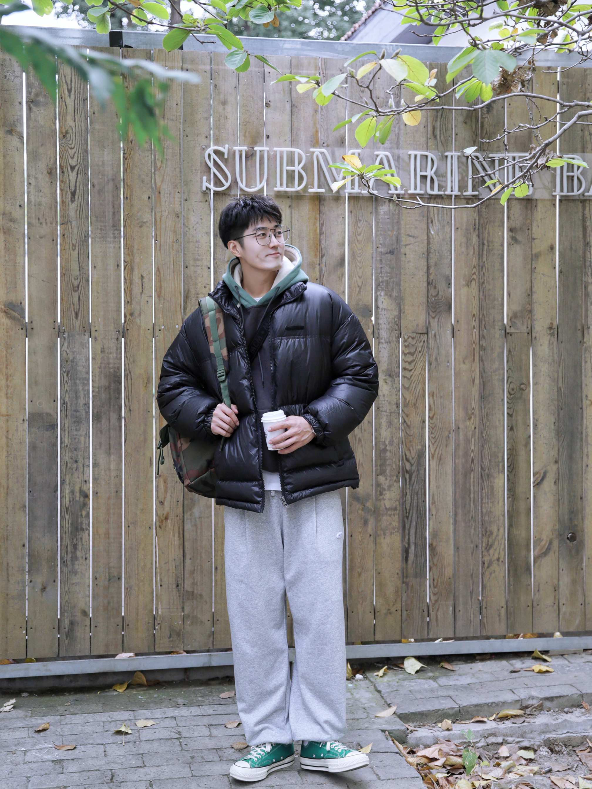 🔹冬天,穿来穿去还是厚厚的棉服比较舒服。胖嘟嘟的,软乎乎的,增加自己的穿着体验感。然后假如像我这样子选一件黑色的,那么,一整个冬天,就可以这么简简单单度过了,哈哈。 — ⚠️本人身高 | 体重:176CM | 65KG(🉑️参考) — 👔·外套·黑色羽绒服—PD大人; 👕·内搭·拼接连帽卫衣—PD大人; 🎒·包包·迷彩双肩包—HERSCHEL; 👖·裤子·灰色运动裤—PD大人; 👟·鞋子·丛林绿帆...