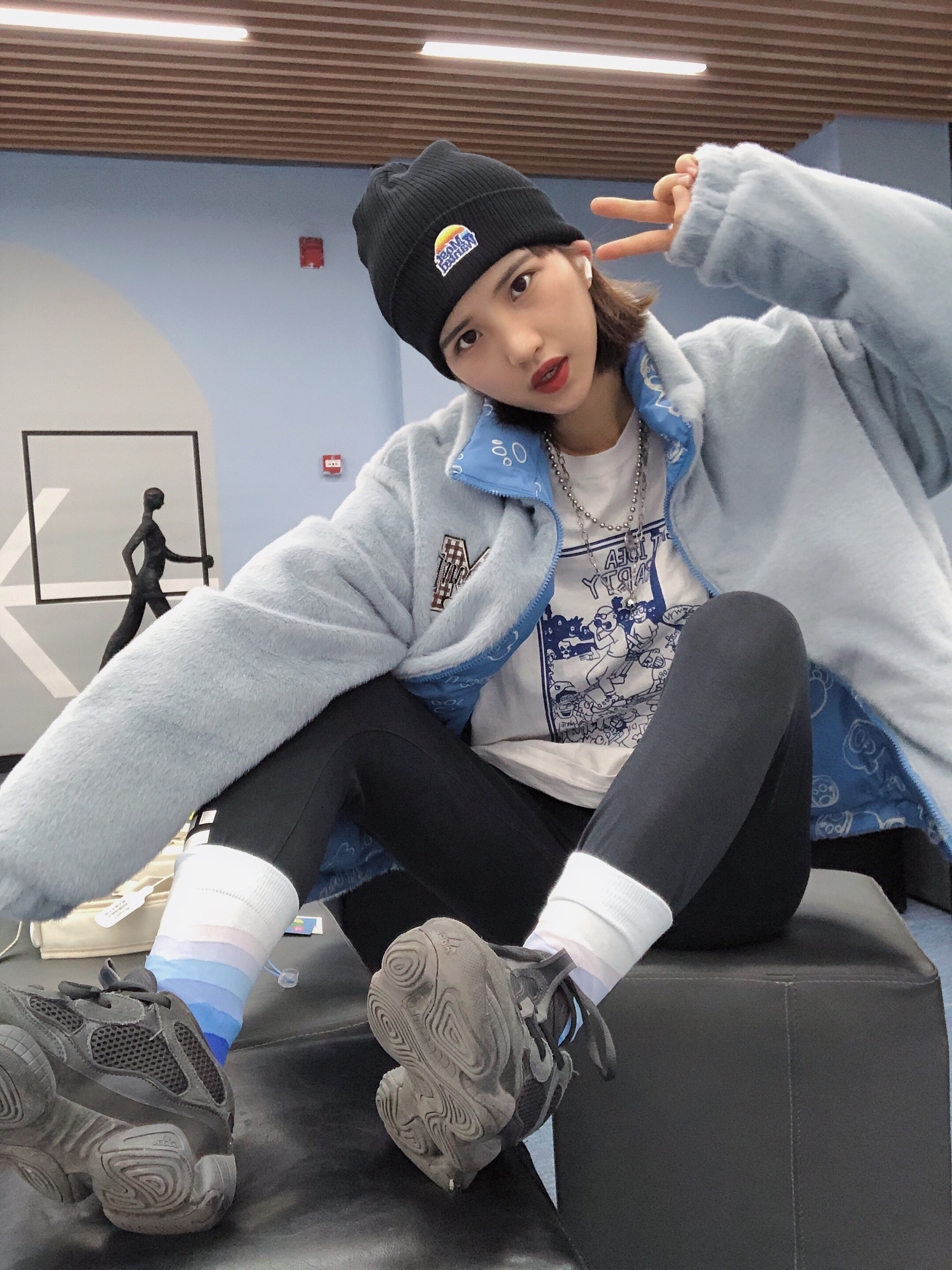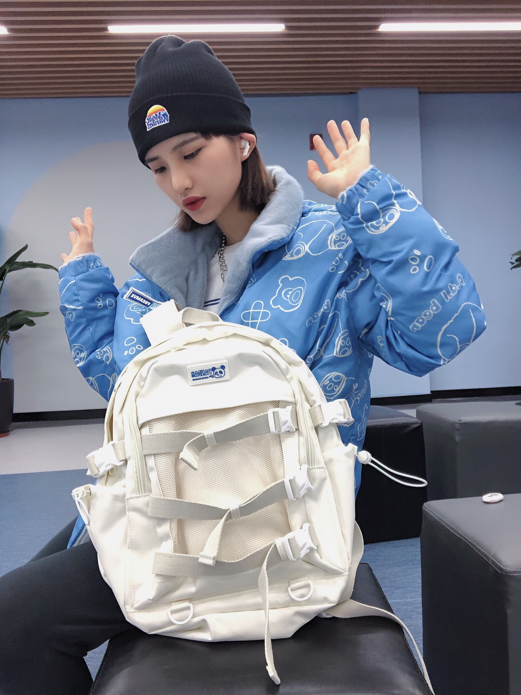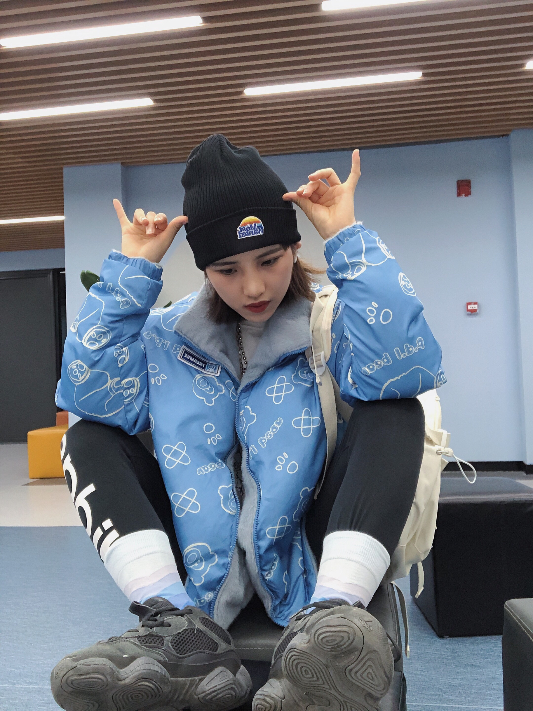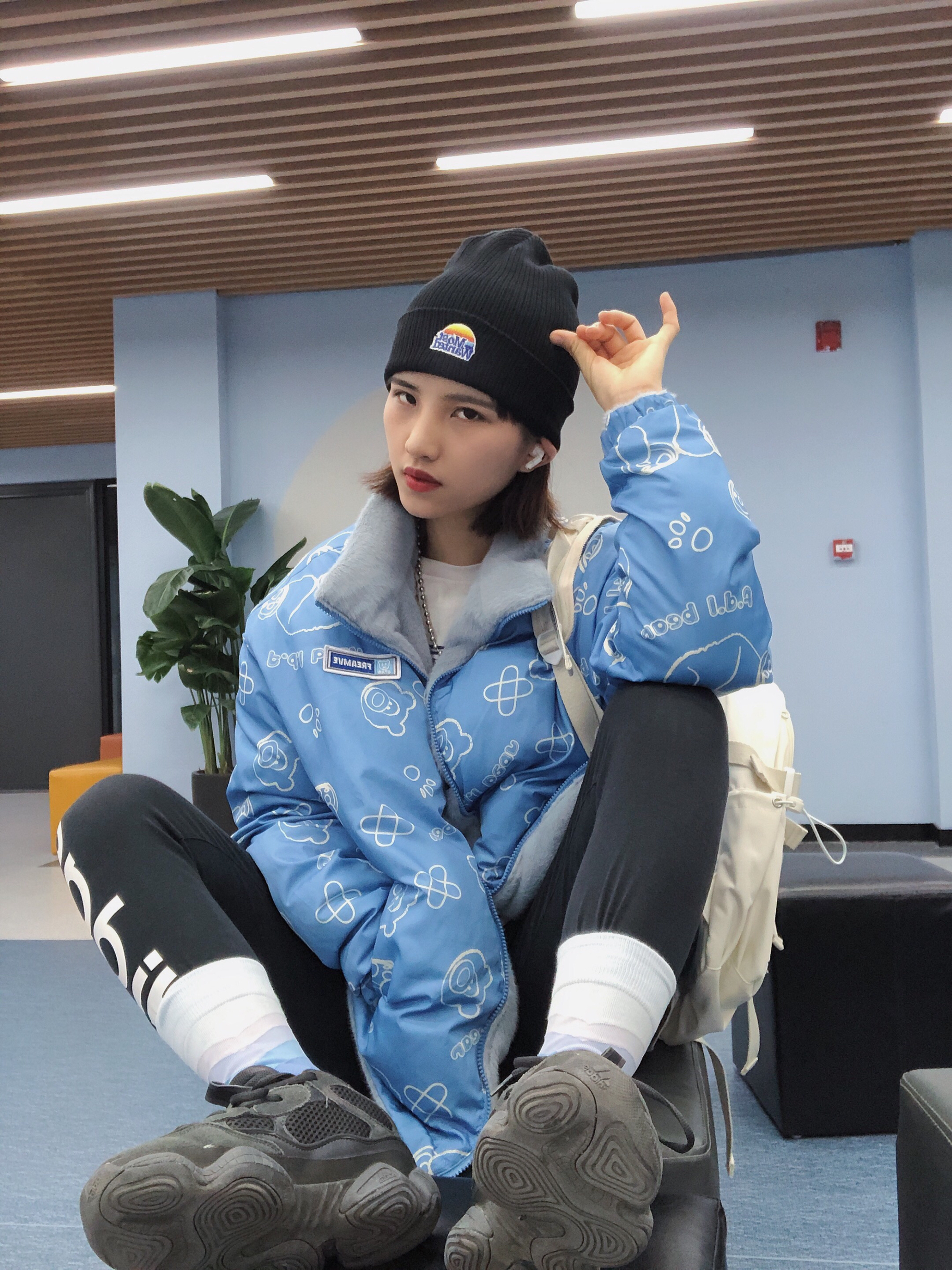 🎩:MostwantedLab 👔:Freamve 这件外套真的爱了 可以双面穿 白色超好搭的 背后的小熊印花超好看~ 特别百搭哦 冲冲冲 👖:Adidas 最近流行鲨鱼裤 这是紧身显瘦百搭的一条 很显瘦值得入手哦 👟:yezzy500黑武士 鞋子总之什么风格搭起来都是OK的 入就对了! 🧦:ALmondRocks 🎒:出走 白色包包超级百搭 包包和鞋子就很配哦~