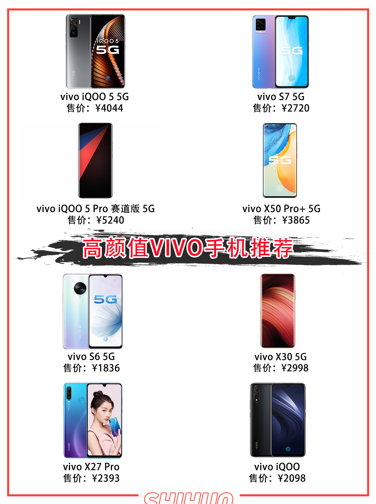 1、vivo iQOO 5 5G 特色:拍摄能力在当下是属于顶级的,后置三摄:5000万像素主摄+1300万像素广角摄像头+800万像素潜望式长焦镜头,前置1600万像素镜头,经典镜头模式轻松应对生活中的各种拍摄场景。 2、vivo S7 5G 特色:三种配色(爵士黑、莫奈曼彩、月光版)全是高级的AG磨砂玻璃,拿在手上第一感觉就是薄,后置镜头采用了双色云阶设计,前置采用4400万主摄两颗镜头,...