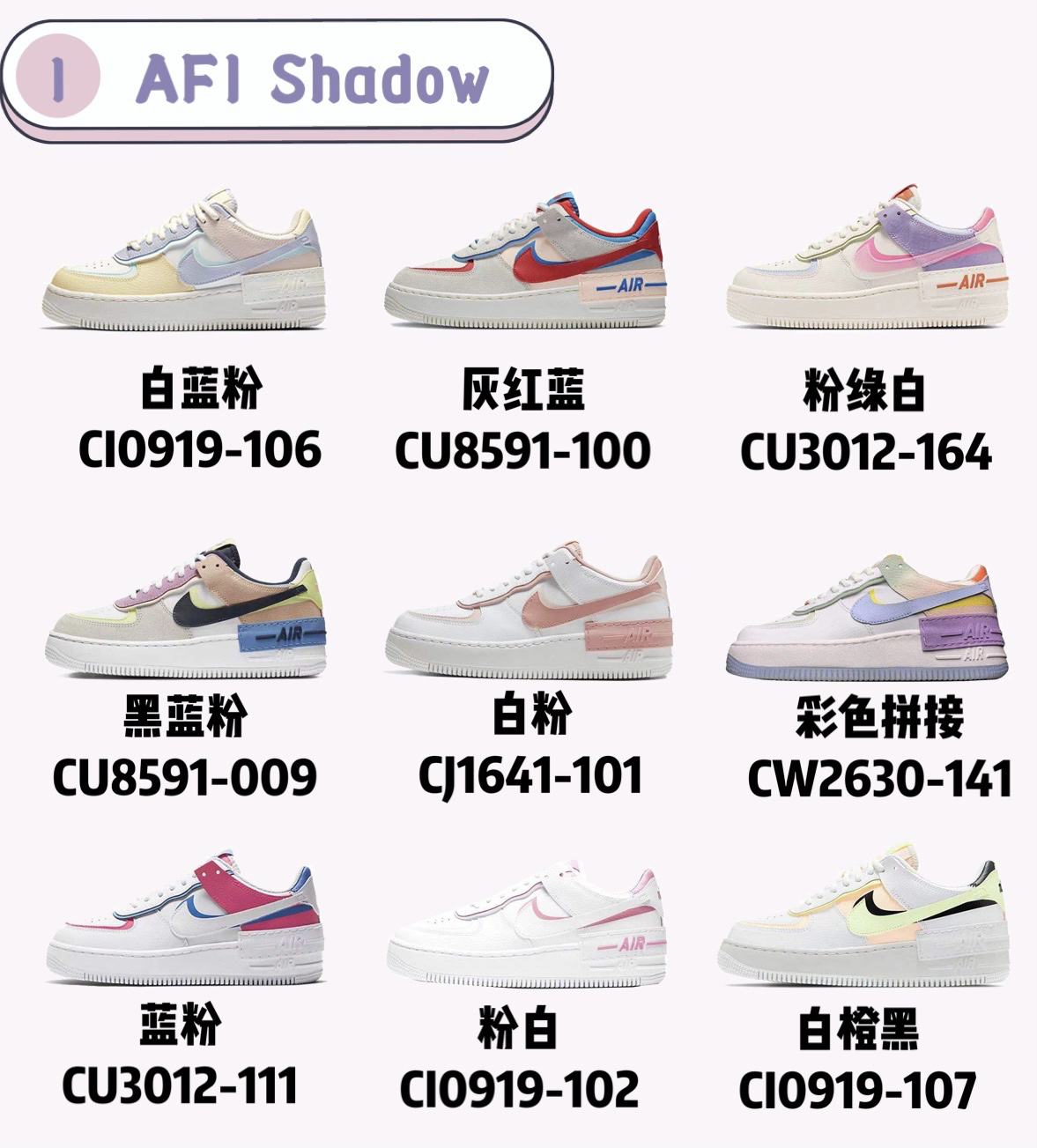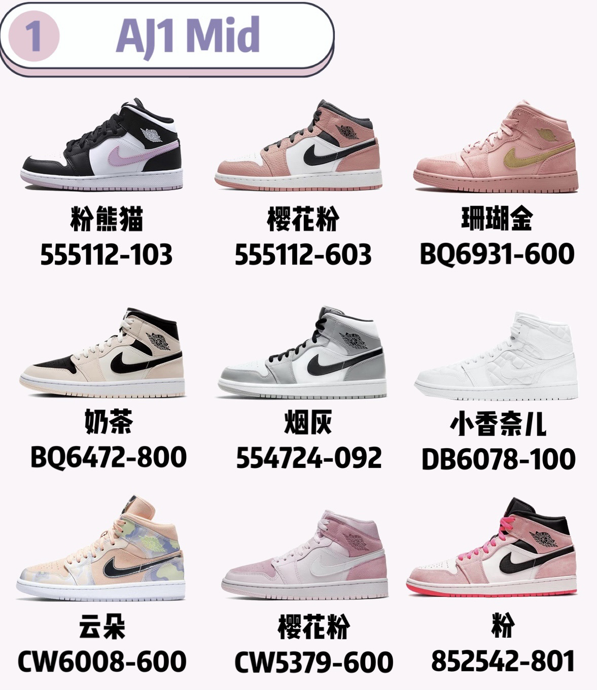 整理完了男友篇的球鞋礼物 当然少不了女友篇啦! 女孩子肯定拒绝不了粉粉嫩嫩的啦!🎁 p1:Af1 shadow 2019年底发的款 后续的配色也很好看。基本上不会踩雷的一款 💰:800-1000 p2:Aj1 mid 近期比较火热的几款 颜色都比较简洁 💰:800-1500 p3:Aj1 之前火热的几款 现在热度下去了 价格基本稳定 送女生的不二之选 💰:1000-1800 p4:Du...
