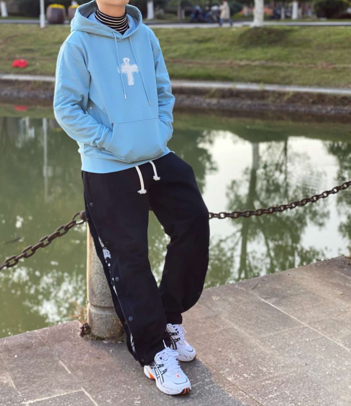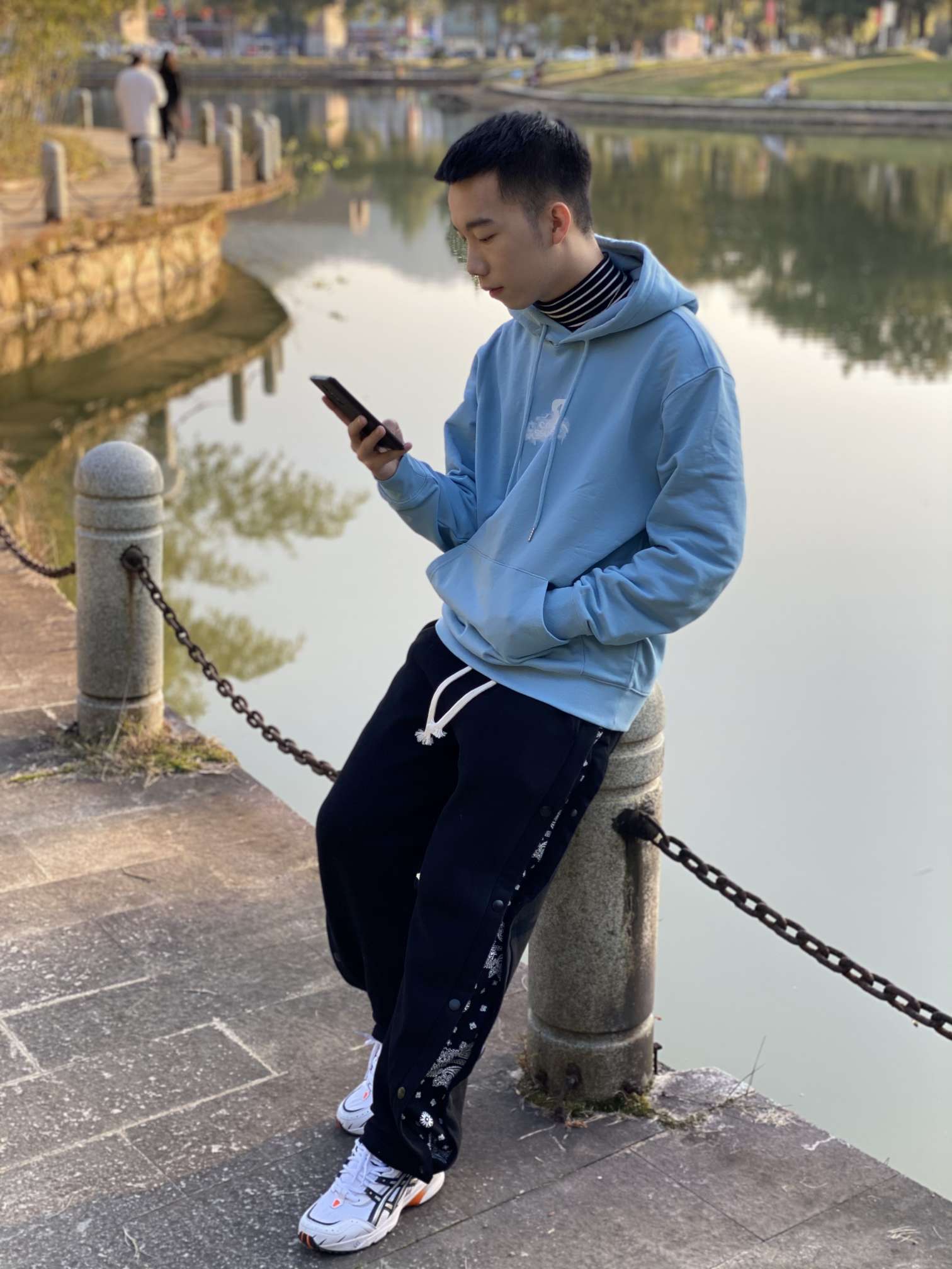 - 冬日里久违的阳光,赶紧出来晒晒太阳☀️ - 蓝天,草地,湖水真的太温柔啦,拍照📸好好看 上身的雾蓝色卫衣超级治愈百搭,背后的星圈很酷 搭配一条来自『M5IS』的长裤,简约大方却有层次感 腰果花🌸元素也是小细节,两侧的图案超酷! 秋冬必备单品,铁子集美们冲它就完事🔥 - 穿搭信息👇 卫衣:ICONSLAB 裤子:M5IS