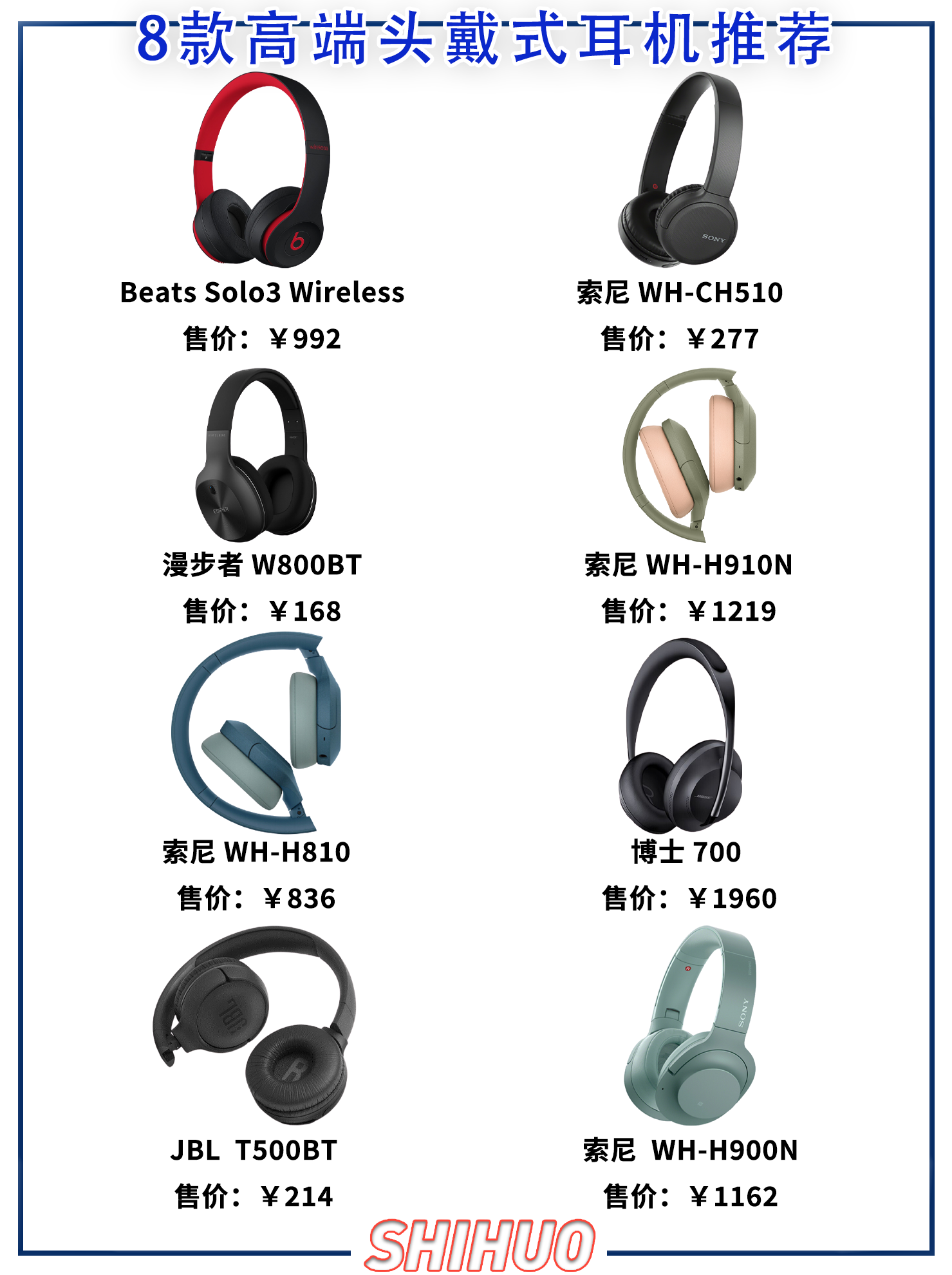 1、Beats Solo3 Wireless 头戴式无线耳机 售价:992 特点:音质表现中规中矩,外观比很多耳机好看,和苹果设备连接很快捷,切换也方便,最长续航达40小时,支持5分钟闪充技术。 2、Sony/索尼 WH-CH510 头戴式无线耳机 价格:277 特色:30mm驱动单元,紧凑强劲的性能还原细腻的音频细节,低音浑厚,高音清澈,动人耐听的高品质音乐由此呈现。 3、Edifier/漫...
