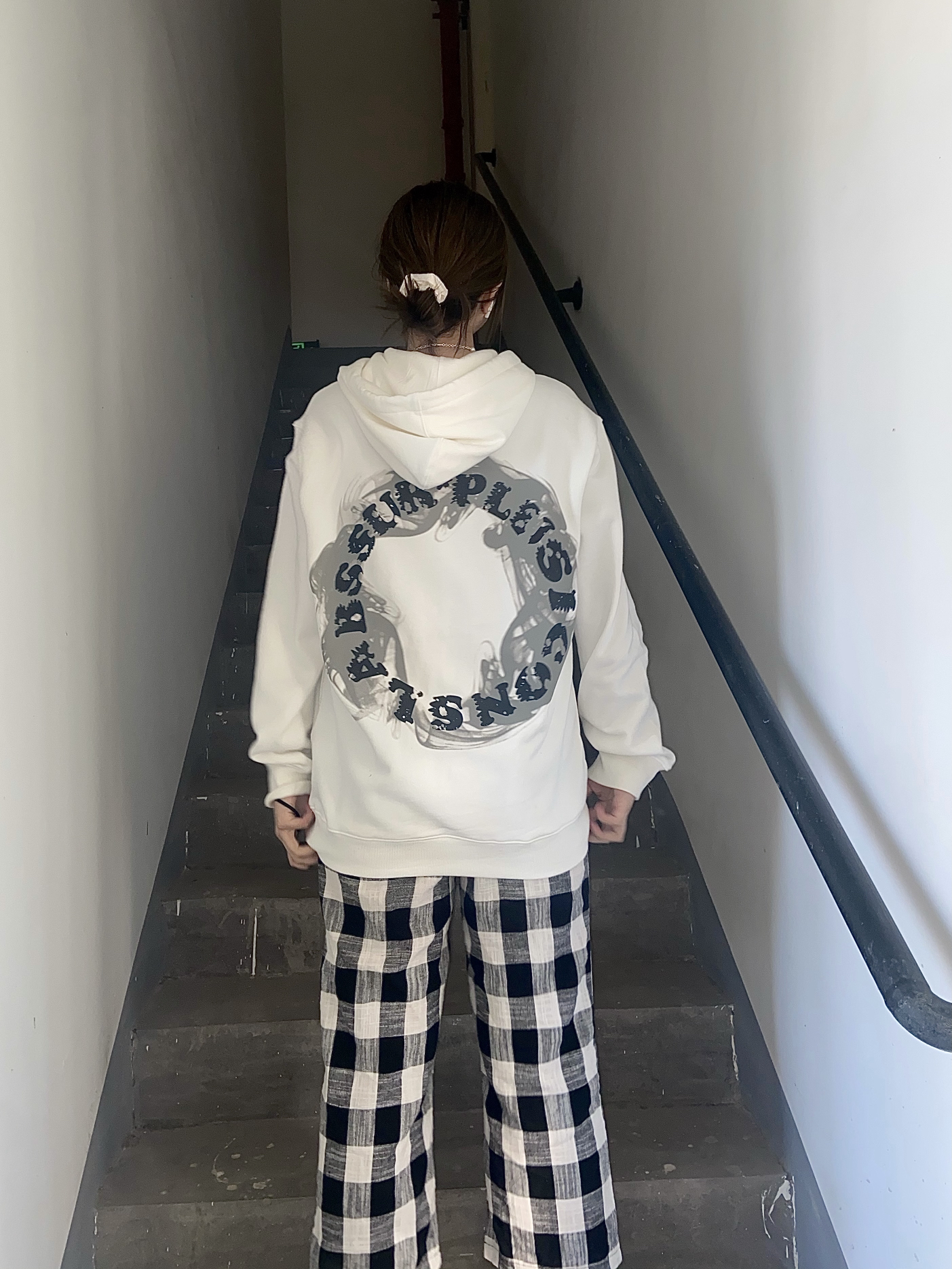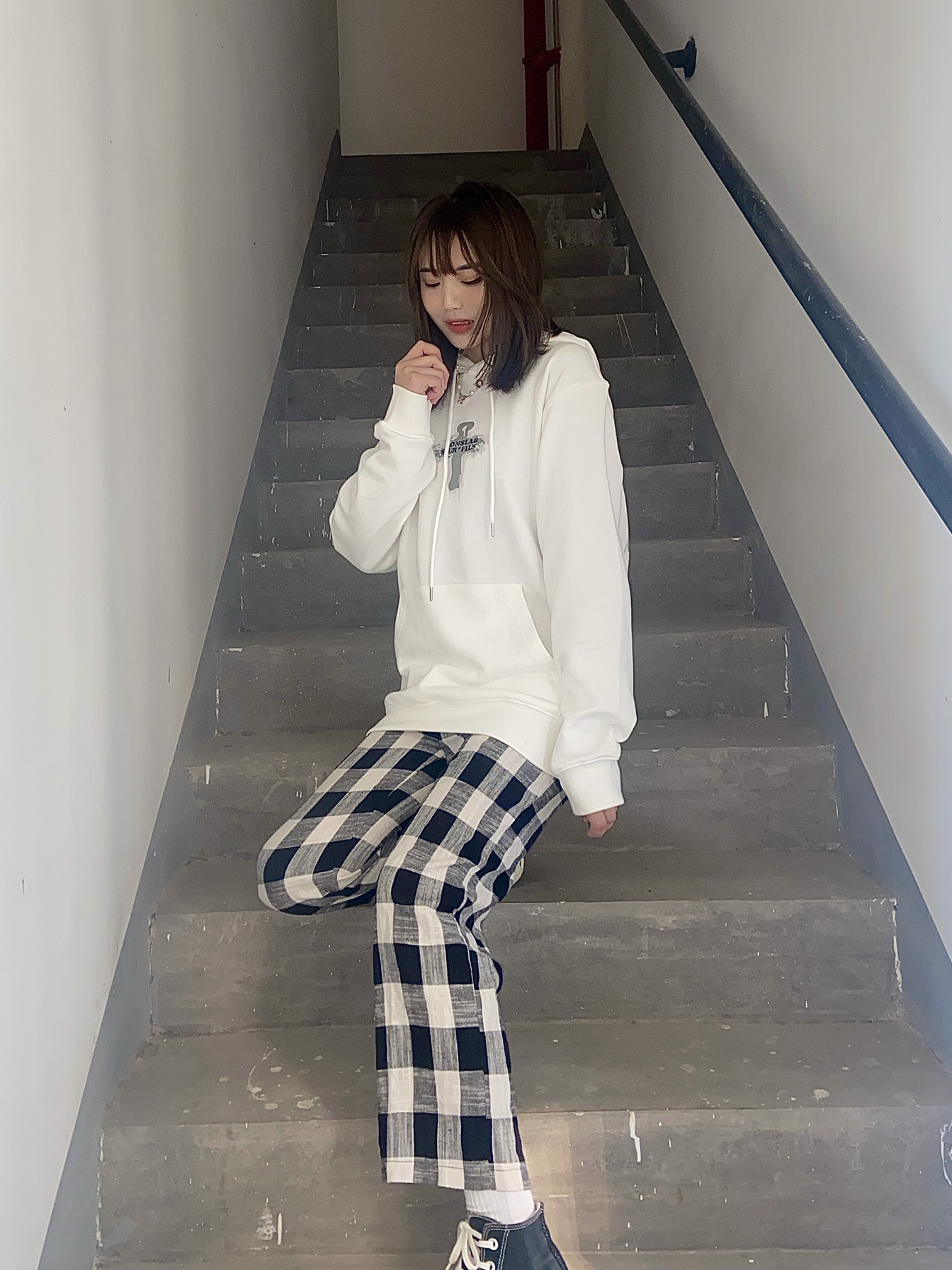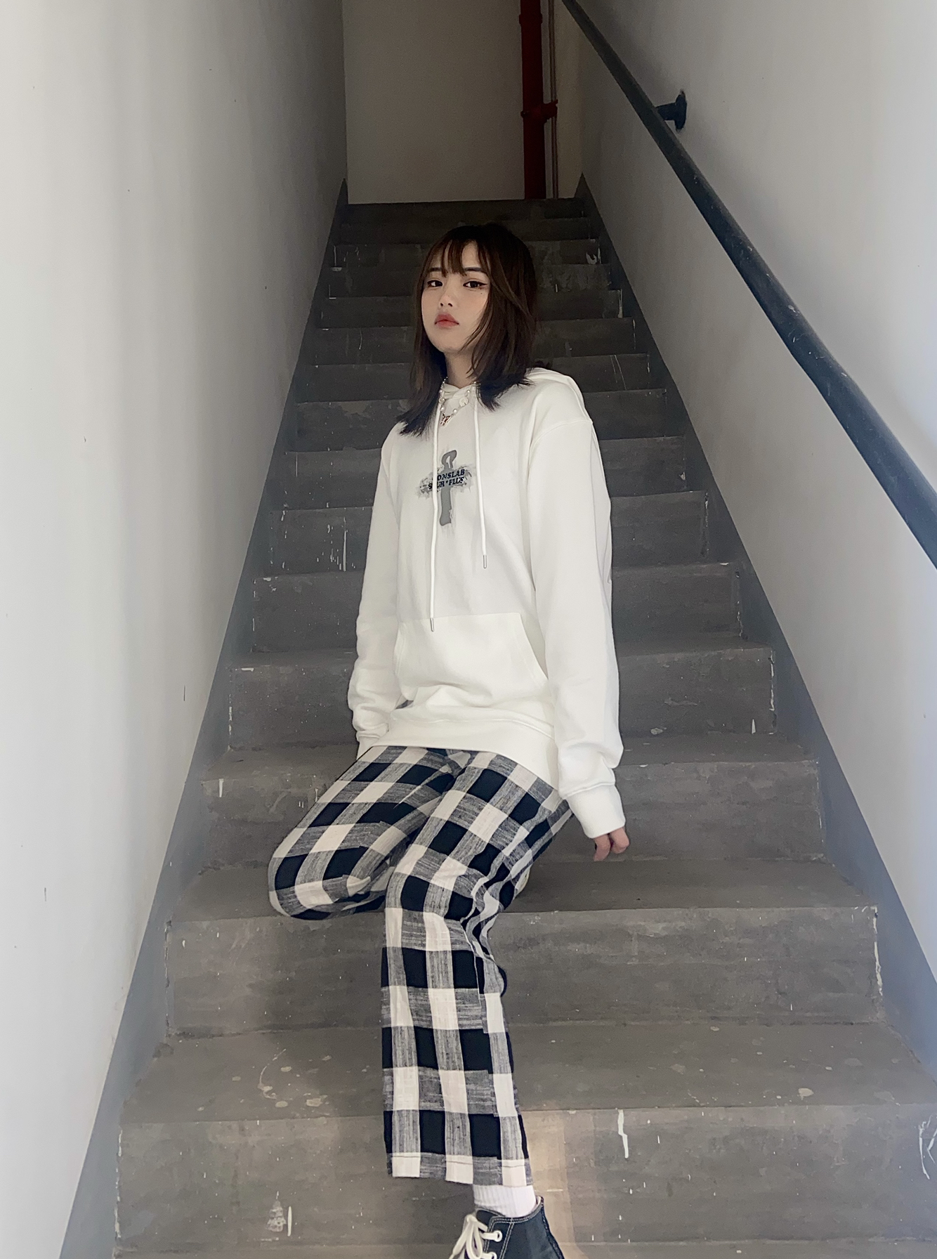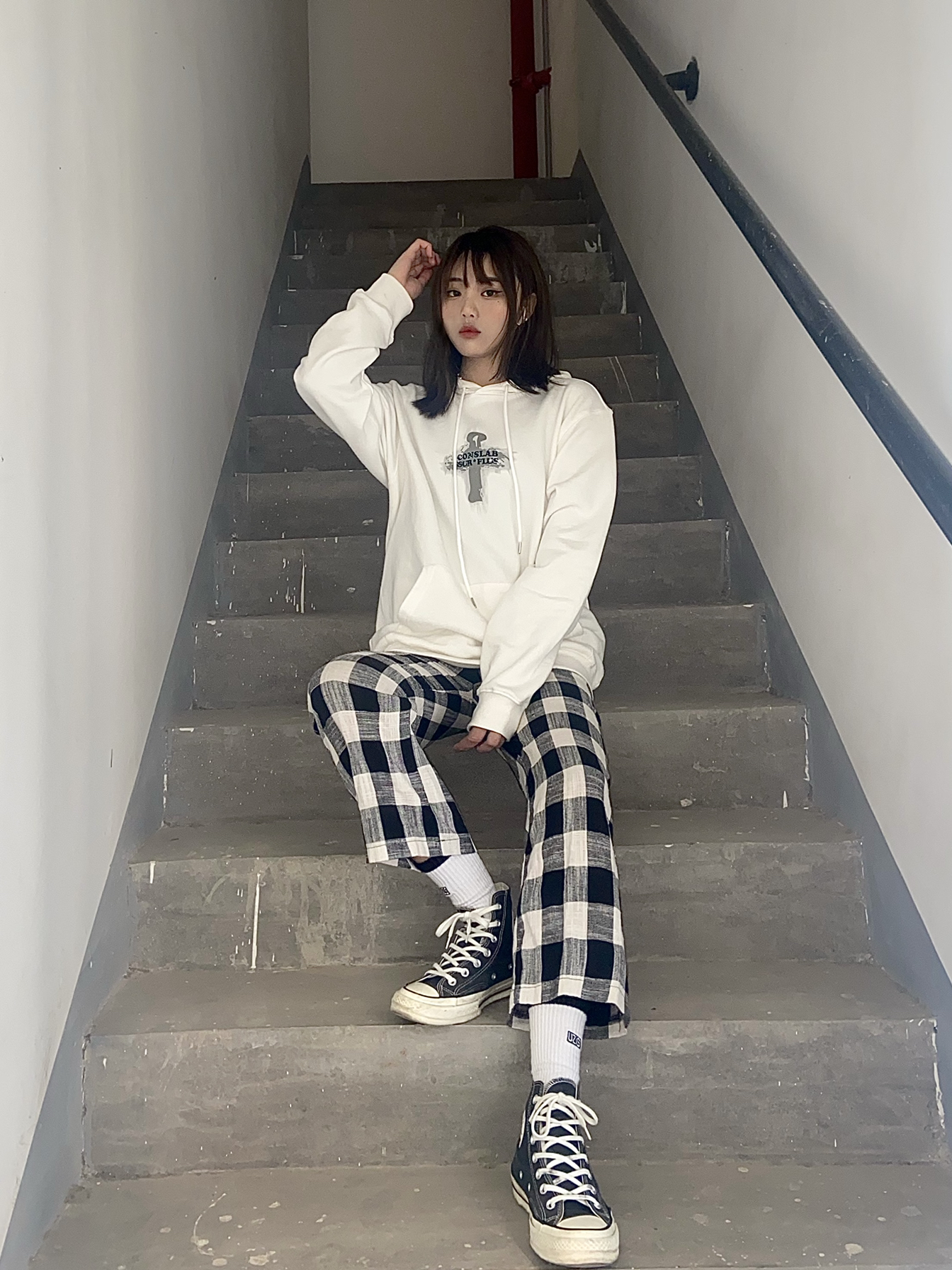 👔:ICONSLAB 👟:匡威1970s 经典黑色 怎么踩都不心疼 白色烟雾印花卫衣经典大方 搭配黑白格子休闲裤 配上高帮匡威 简单的搭配传承黑白配 卫衣前面的十字架和背后的烟雾印花个性满满 简单又不失时尚