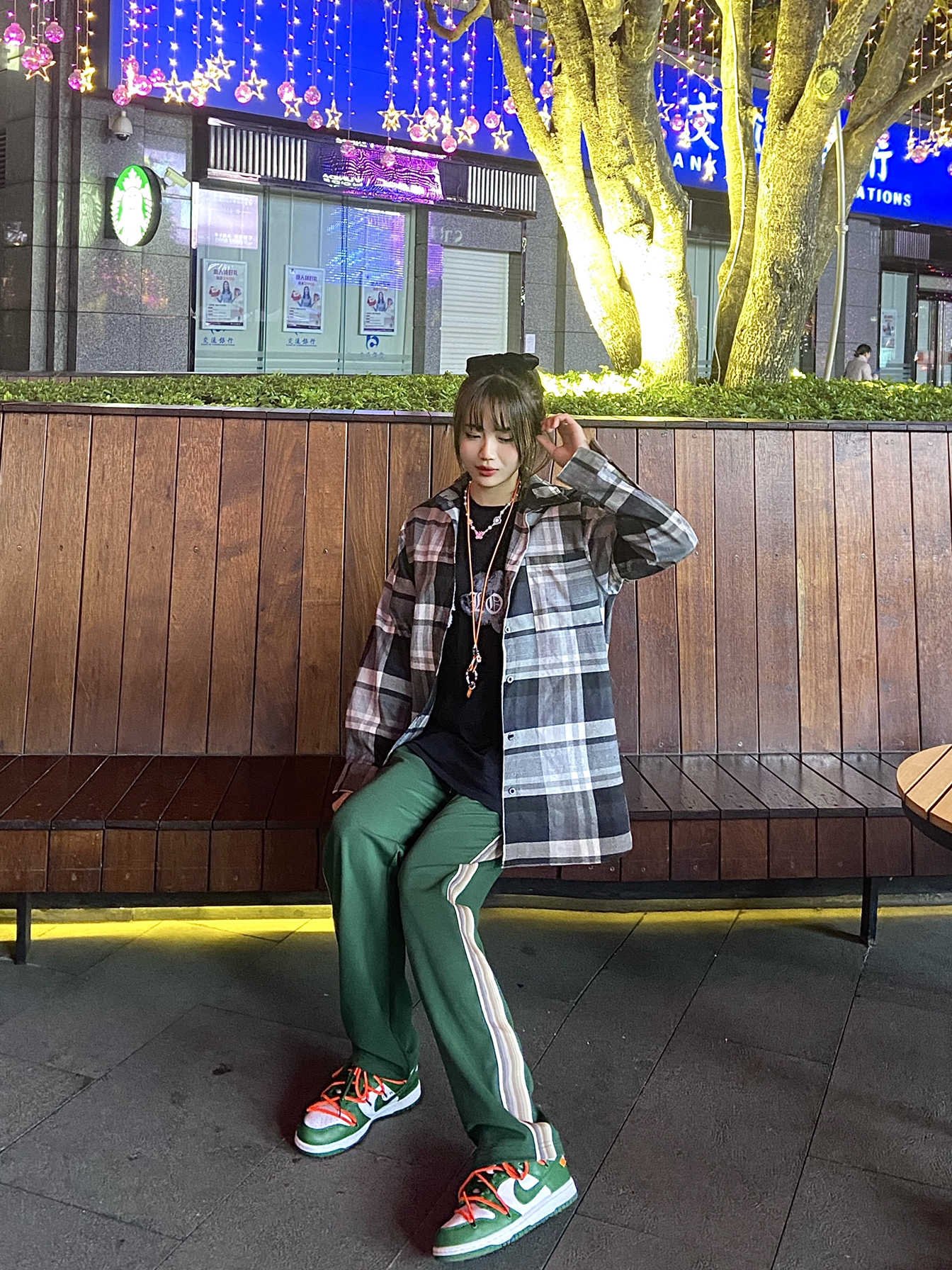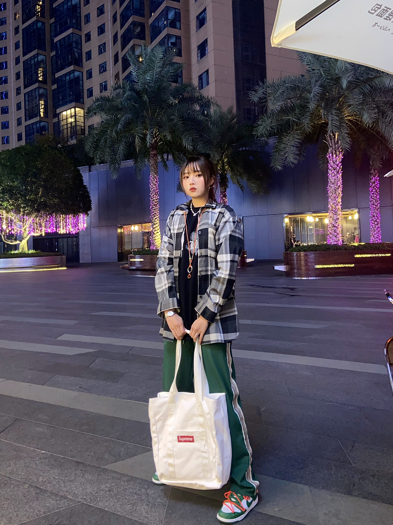 运动休闲系一直是我出门的首选穿搭 很休闲舒适 走路喜欢蹦蹦跳跳 便于出行👣 👔:vlone 👟:dunk off white 👜:supreme 这一套look可能看着有点冷 到真的穿了超多 T恤里面还有我的加绒保暖内衣 这也是休闲运动系穿搭的小心机💫因为宽松穿再多也看不出来🔥 【搭配小Tips】dunk属于圆头平底运动鞋 个人觉得搭配直筒裤会比束脚裤好看一些 偏滑街头风🛹