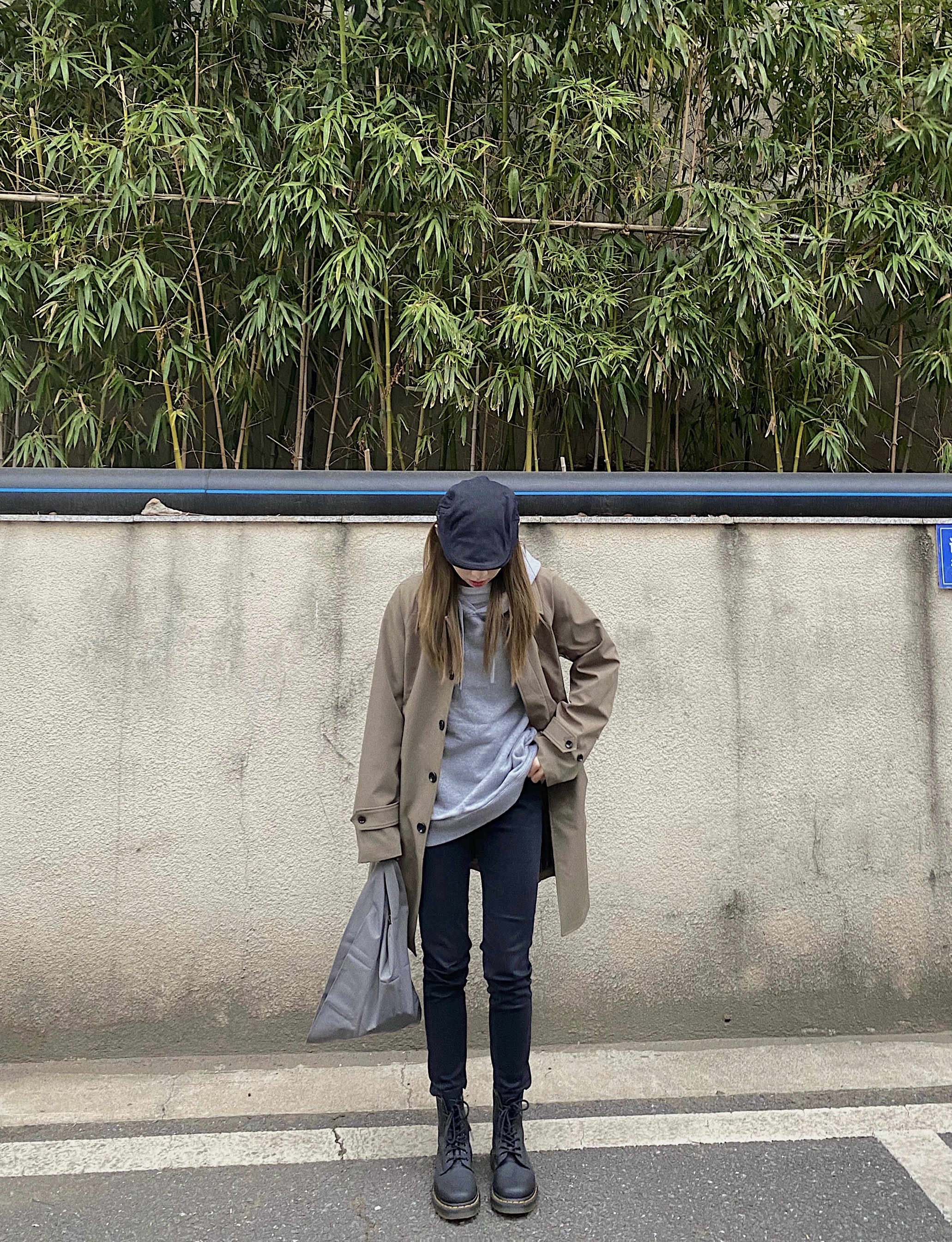 👔:小弟大洲HUMANIMAL 橄榄绿风衣外套配上灰色连帽卫衣 里面在穿个保暖秋衣真的一点都不冷 再也不怕冬天穿的臃肿成一个球了⚽️ 🥾:Dr.Martens 靴子真的保暖又好搭 穿上巨显腿长!
