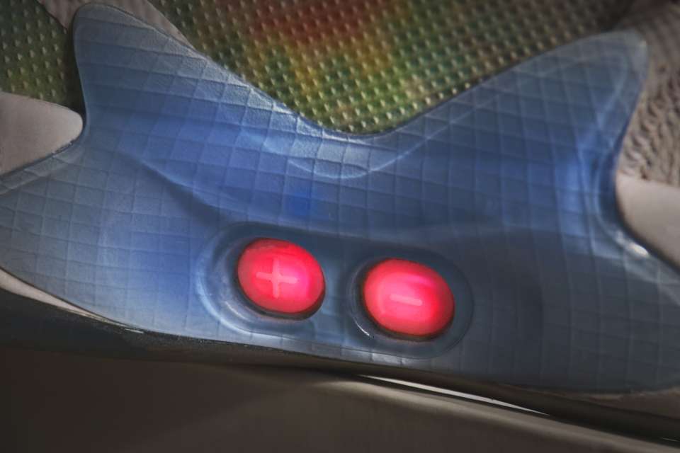 许多球员体验了第一代 Nike Adapt BB 之后,反应十分有趣:有人感到眼花撩乱,也有人因为一时惊讶而不知如何表达。像这样把球鞋穿上后,单击按钮就能随着自动绑带系统发出的机械声响,感受前所未有的穿鞋过程及其带来的舒适包覆,简直就像在体验时光机器一般。Nike Adapt BB 2.0 延续了对于包覆性的追求,在前代的基础上完成了实战性能的升级,同时也保留了这项神奇科技的精髓——迈向未来的决