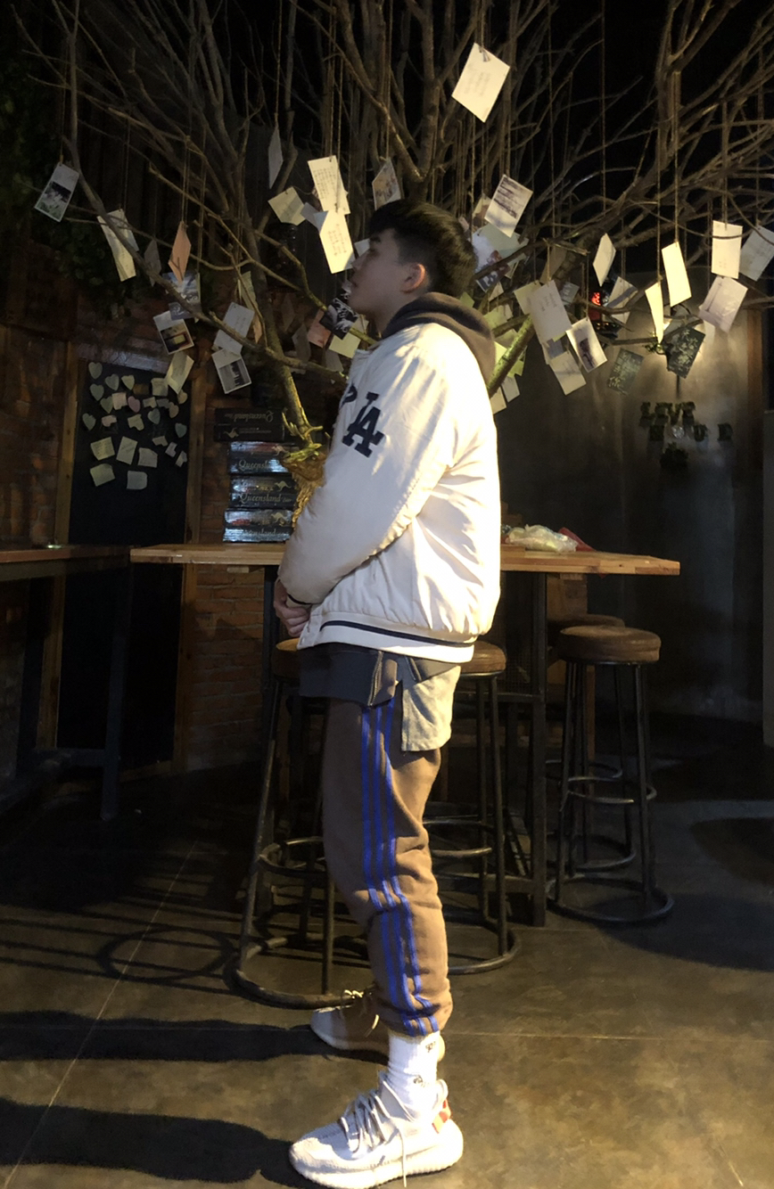 👔:棉服MLB 卫衣FOG 内搭FOG 👖:Adidas Yeezy Calasas 👟:Adidas Yeezy 350 V2尾灯