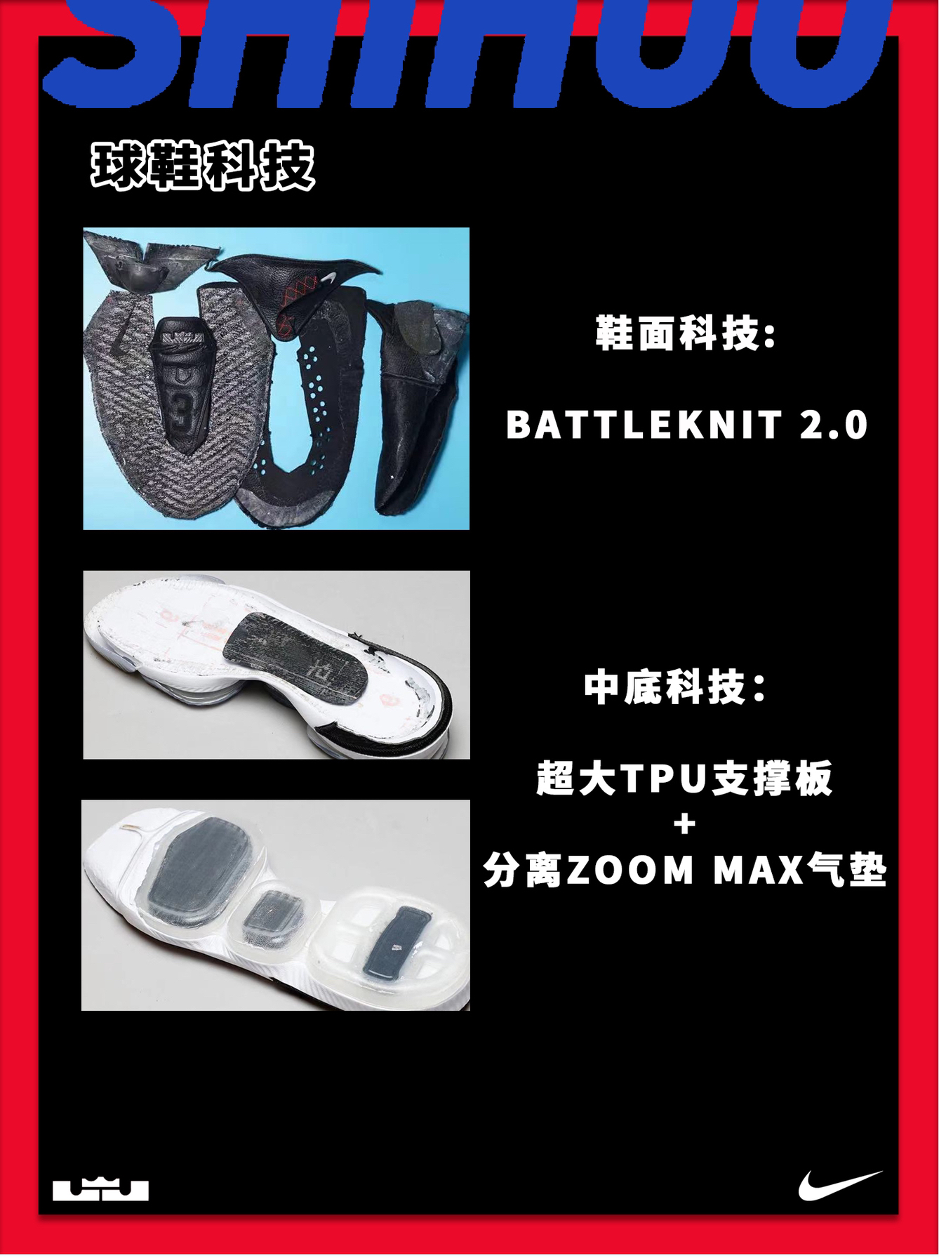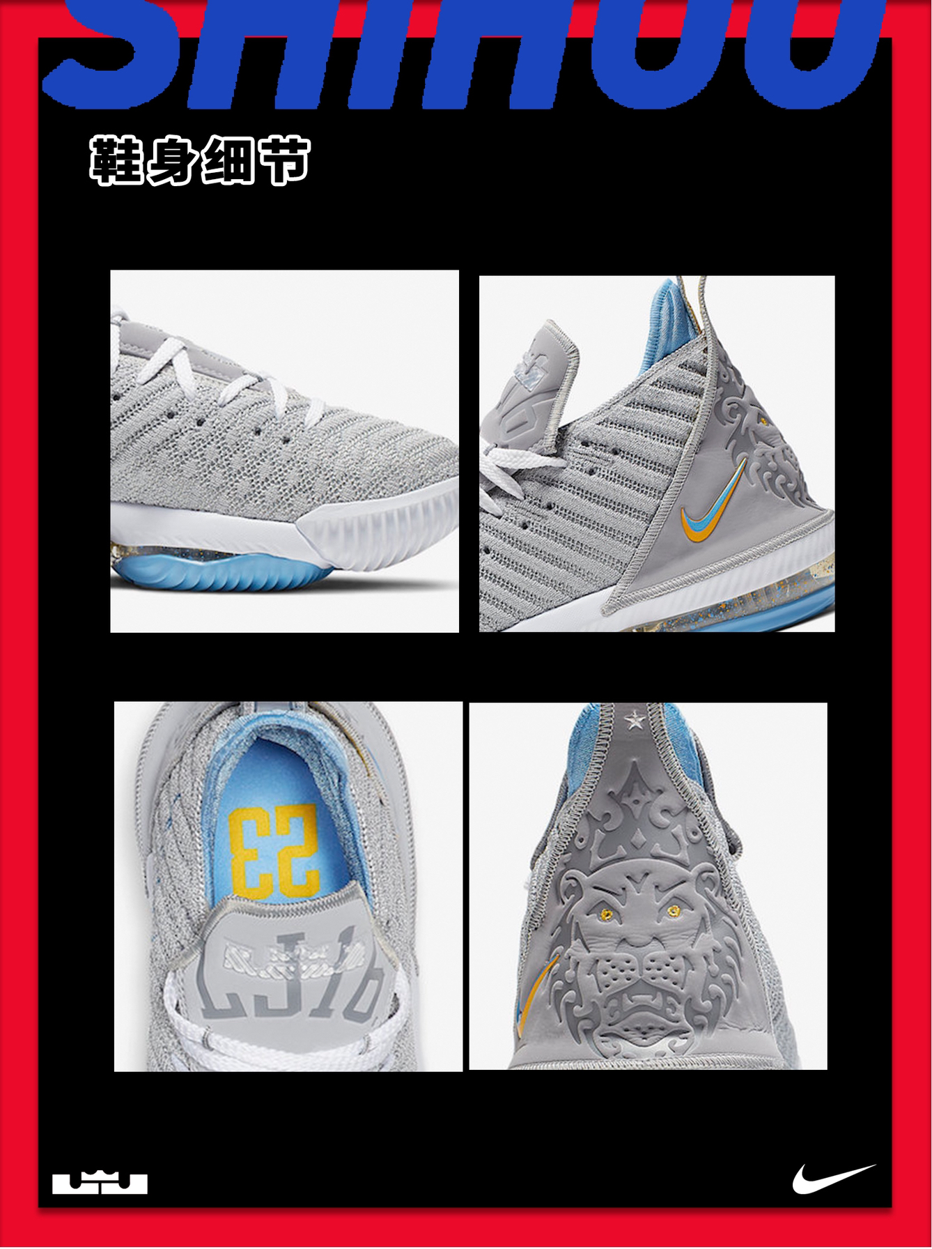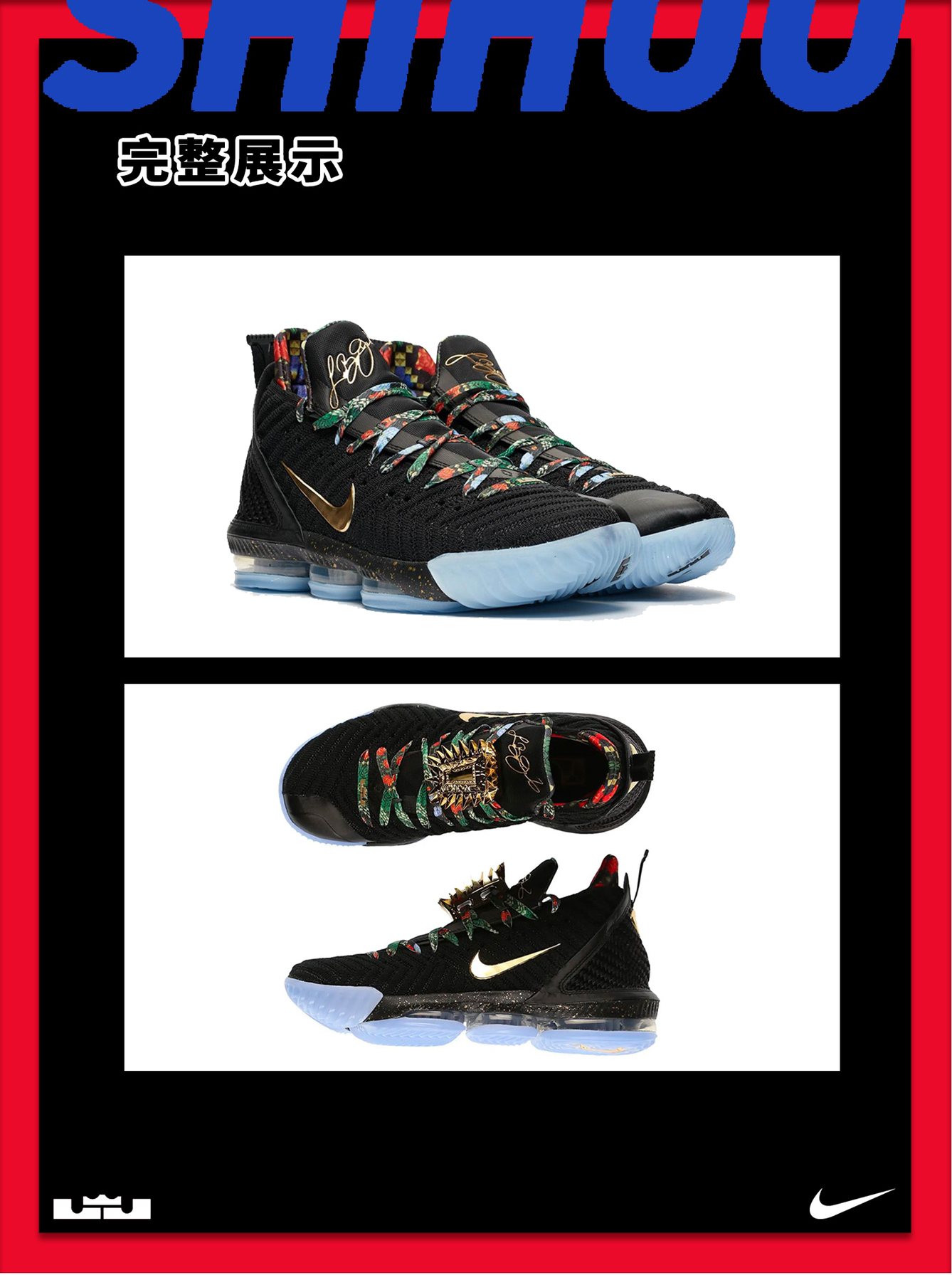 👑Nike LeBron 16 继发售问世后,后续众多精彩主题的配色也相继曝光,实战出街两不误!本次 Nike LeBron 16 在配色上各具新意外,细节每款也有所不同。这不仅营造出硬朗的战斗气氛,也强调了 LeBron 在球上场统治级表现。 💡外观:🌟🌟🌟🌟 球鞋整体采用笼式结构,鞋面由皮革加织物打造而成,提升透气性的同时,又不失简约干练气质。后跟霸气又细腻的狮子logo、鞋舌处詹姆斯皇冠...