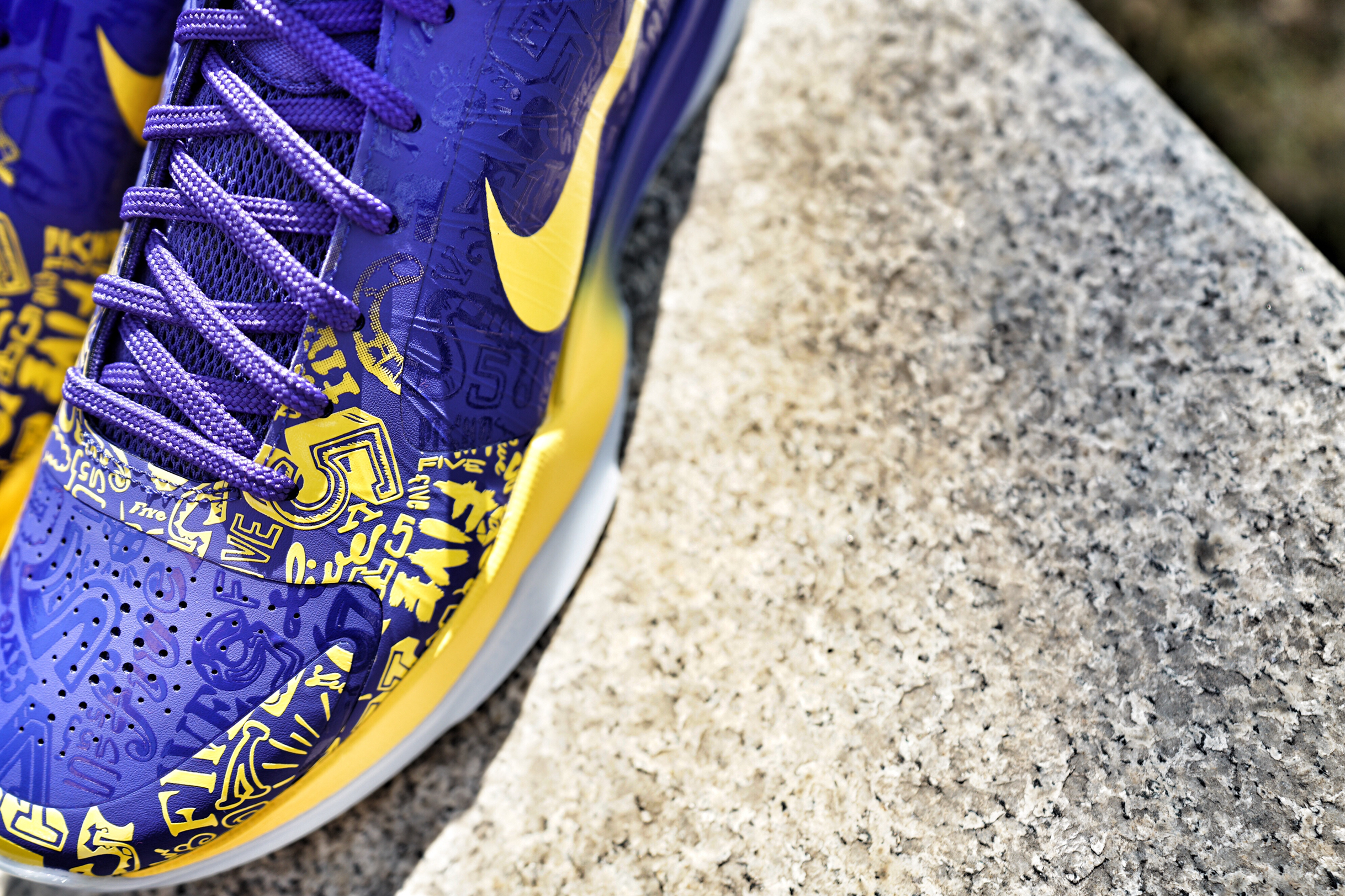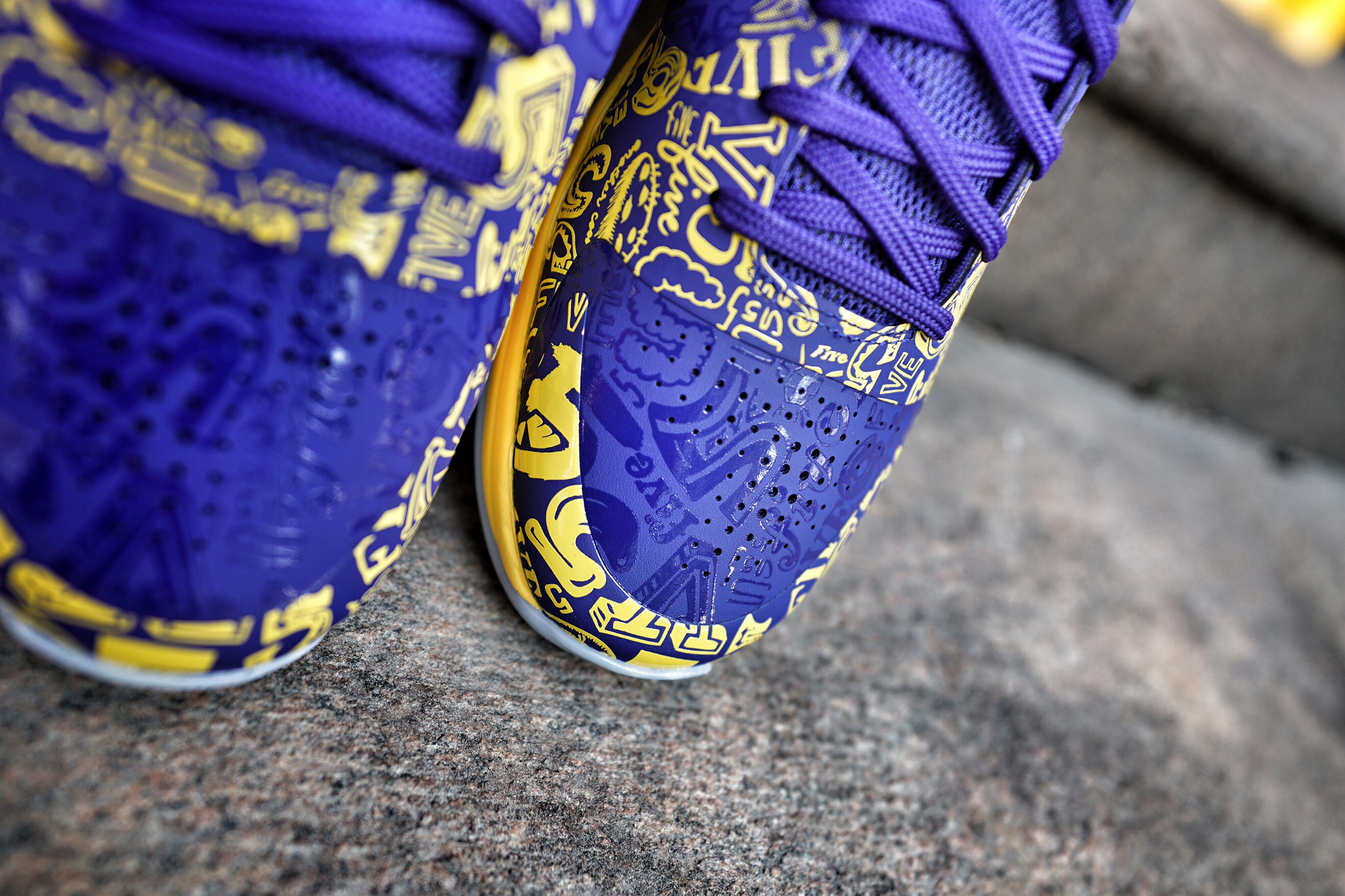 相信老球迷们应该对于这双传奇配色不陌生,这双 Kobe 5 5 Rings 当初是为纪念 Kobe 夺下第 5 冠所推出的特殊配色。采用色彩鲜明的蓝、黄色作为设计主体,并点缀有当年 Kobe 的赛季数据,收藏意义可见一斑。唯一美中不足的就是元年全透明水晶底变成一般的水晶底,不过如此好看的配色能够复刻,对于科密来说已经很满足了。