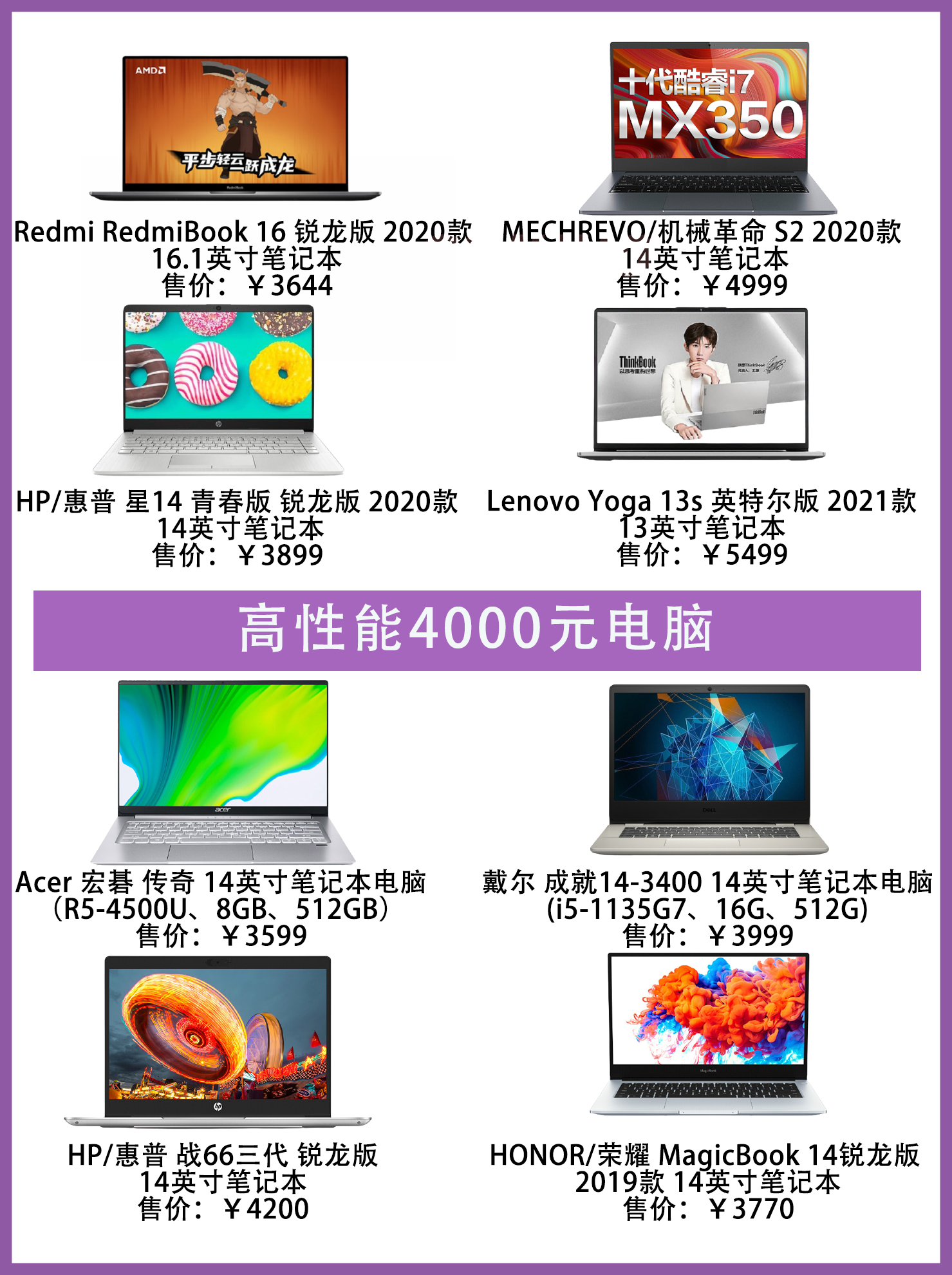 1、红米 RedmiBook 16 锐龙版 2020款 16.1英寸笔记本 定位:高性价比大屏入门级机器 特色:基本配置强大,整体采用金属外壳设计,内存使用了2666频率,硬盘采用sata硬盘,性价比非常高。 2、机械革命 S2 2020款 14英寸笔记本 定位:兼顾移动与游戏的轻薄本 特色:三面金属机身,质感不错,接口非常丰富,内部可拓展2.5英寸硬盘,拓展性尚可。整体性能不俗,可轻度...
