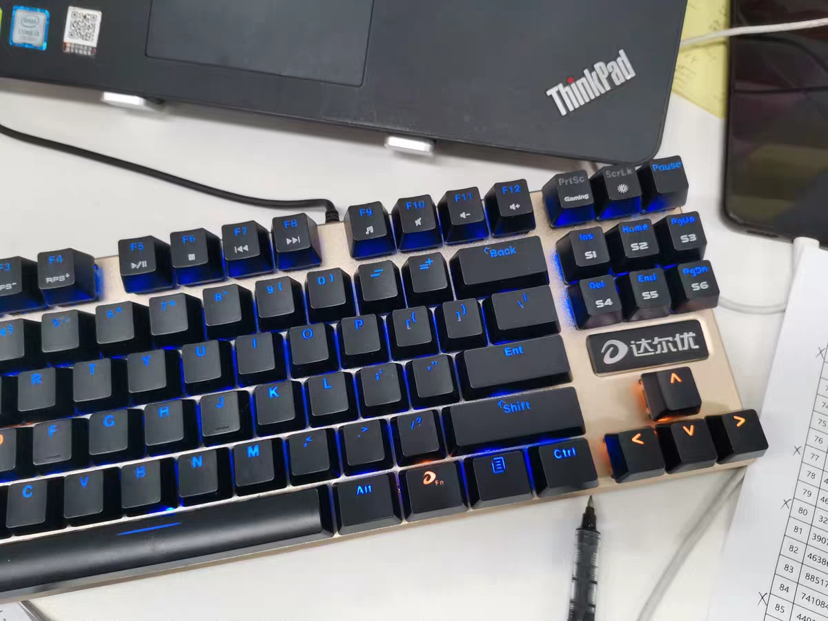 本篇笔记关联了Dareu/达尔优 DK100 有线机械键盘 87键 青轴 外接 黑轴 注塑 无光 黑红轴 黑色87键等商品,为用户提供真实的使用体验和购买参考。