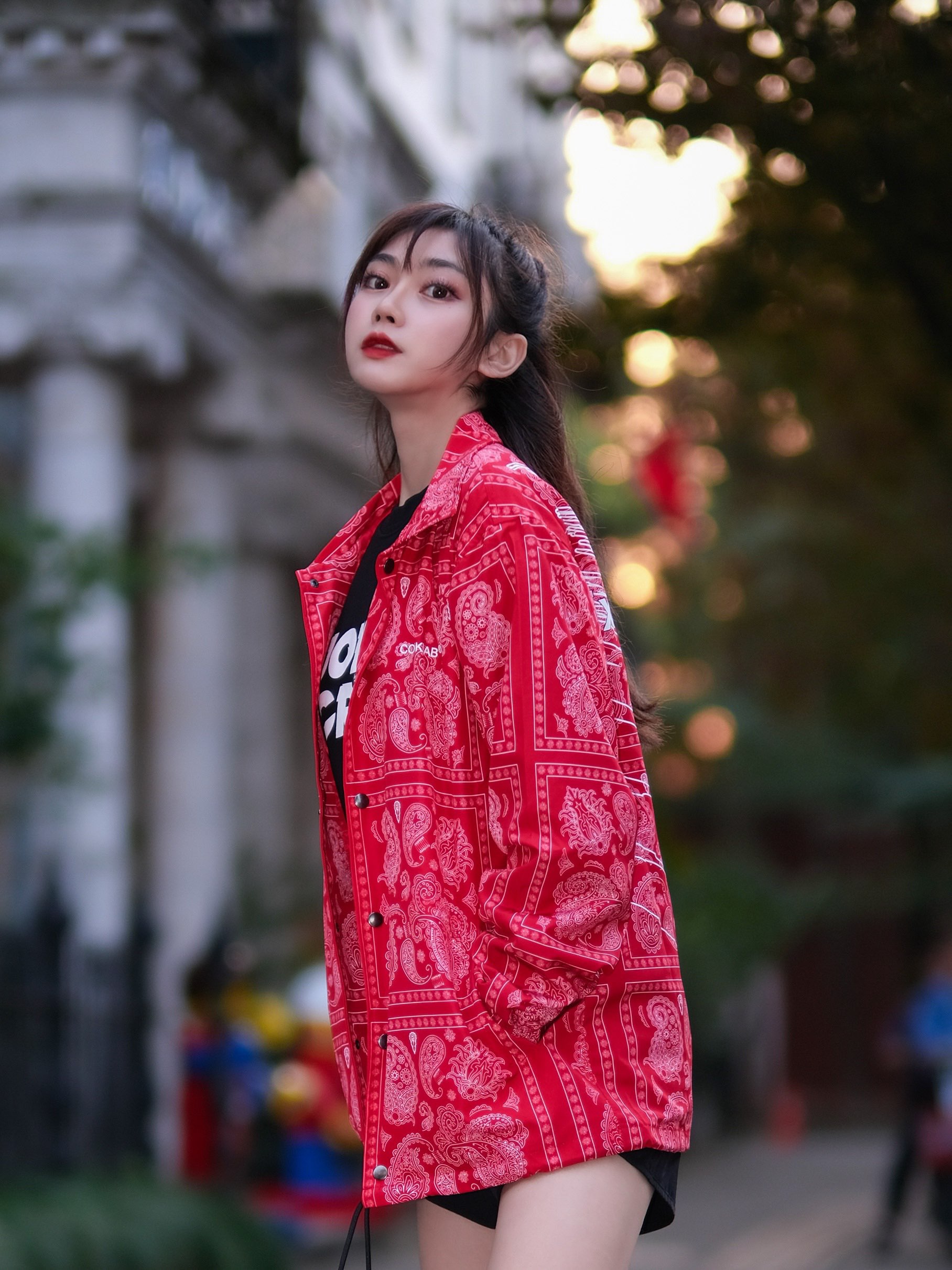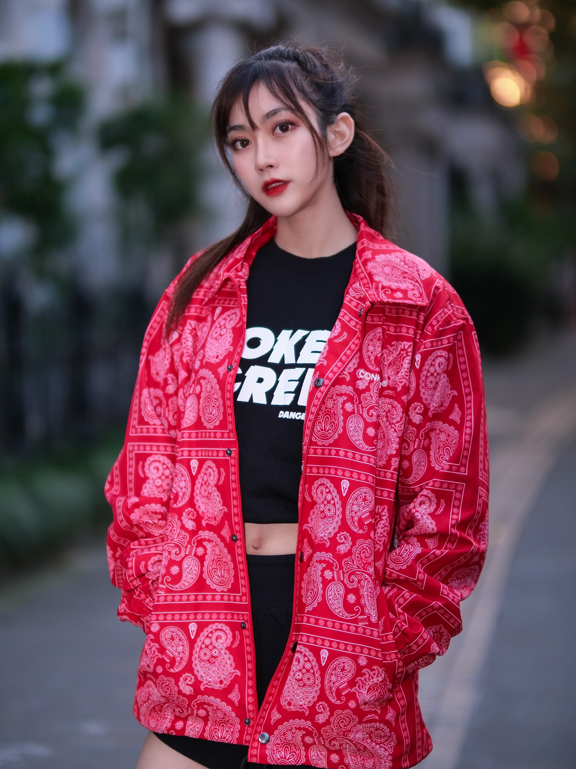 秋天偶尔也可以选一件饱和度高的外套,腰果花元素也是这两年非常火的衣服元素啦!内搭一件黑色的卫衣或者短袖都可以啦! 上衣B 👟:lol blazer