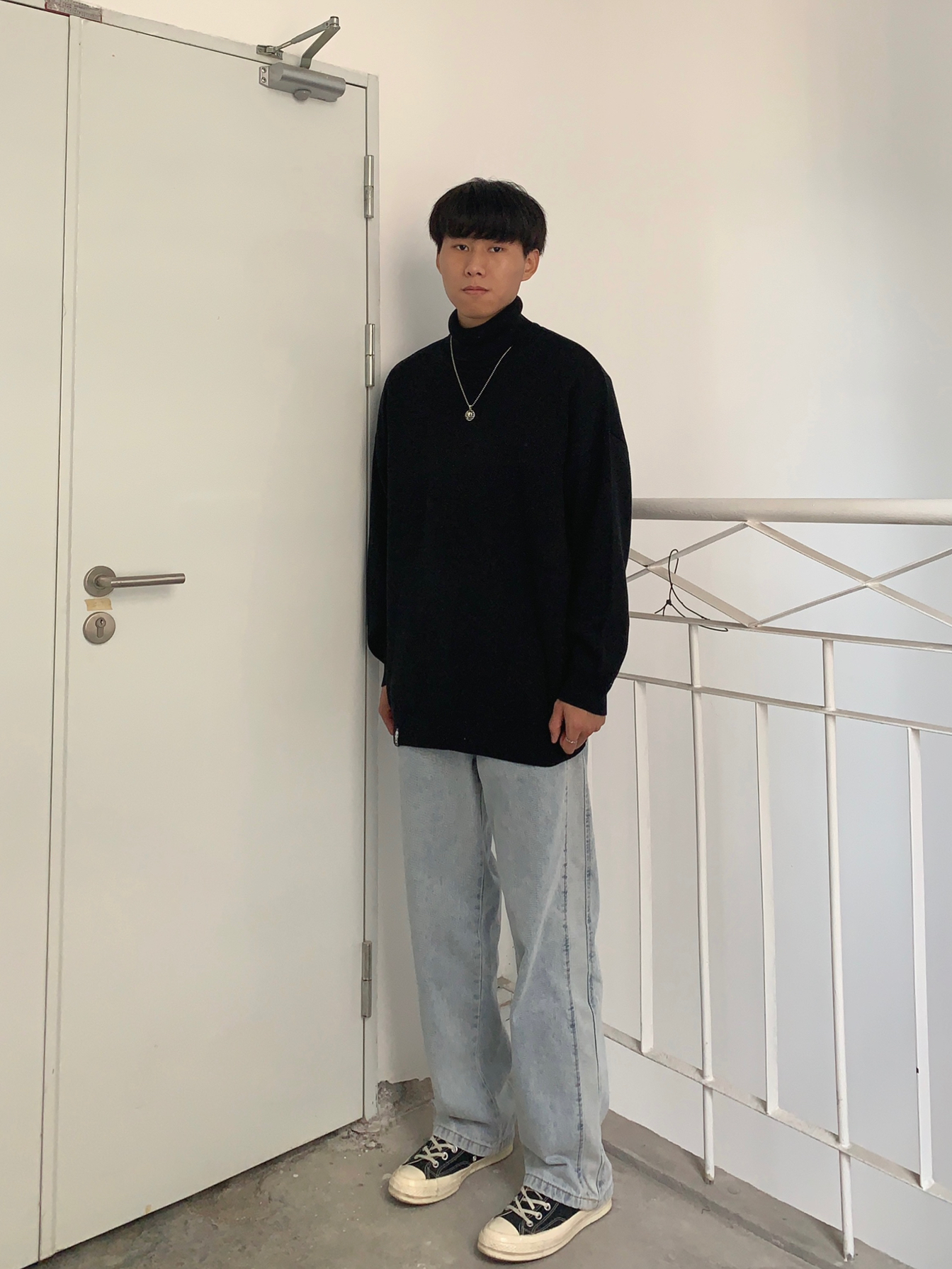 上衣:genanx 一件毛衣在秋冬是必备的!舒服的毛衣更不能少,毛衣采用高领设计,使其毛衣不单调!毛衣可高领的设计非常有个性!展现出高街风格!非常酷,版型宽松!适合潮搭! 裤子:M5IS 蓝色牛仔裤的做旧风格非常高街!设计很修长腿型,浅蓝色的色调,也非常清新!很百搭!高街的设计风格!使其裤子不单调! 项链:morpyn 项链非常复古!非常酷!很适合潮搭!出街必备!非常高级! 鞋子:yeezy...