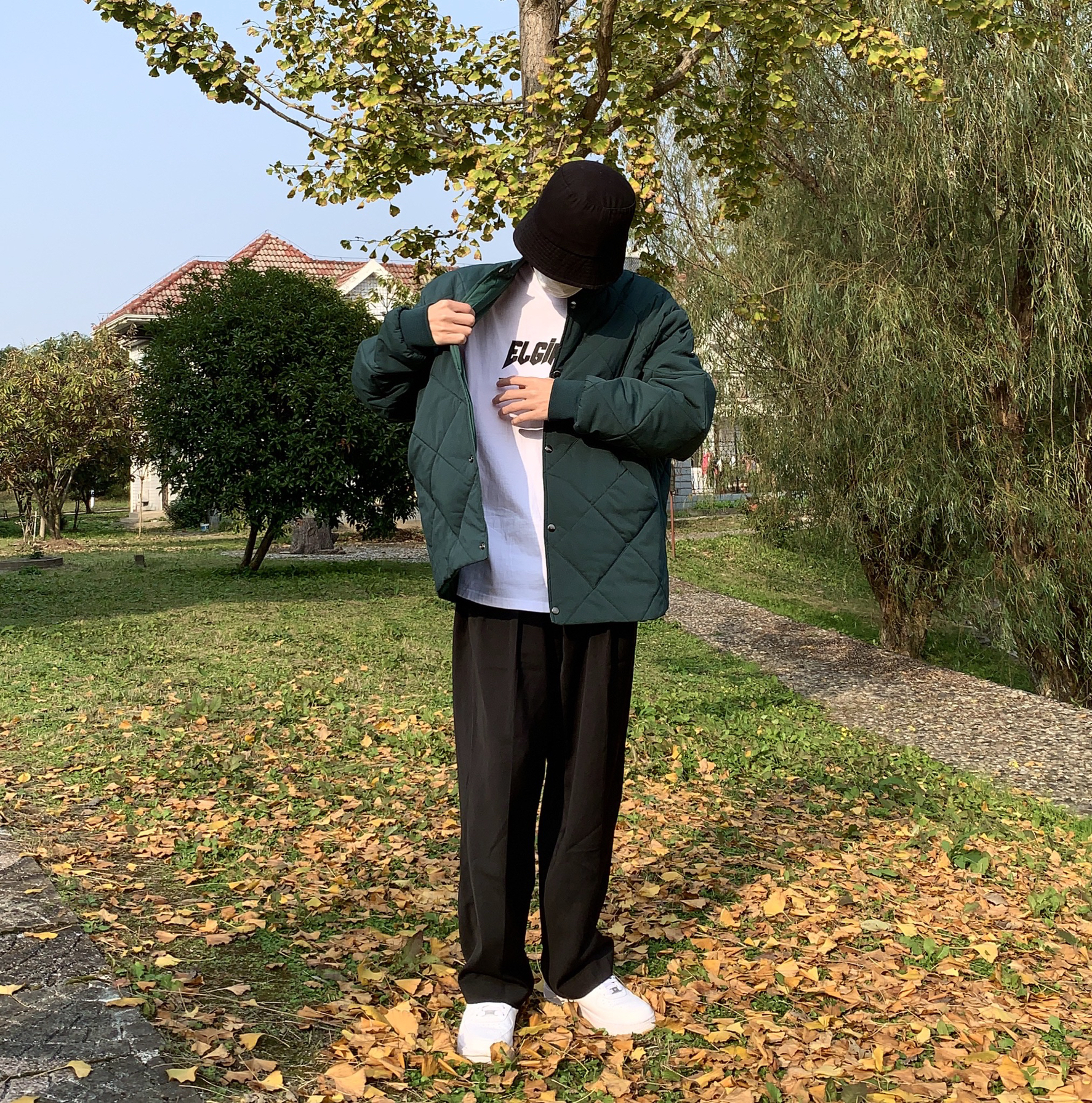 棉服:BUTTbILL 裤子:BUTTBILL 冬天想要保暖和帅气兼顾 选择逼格家这件棉服就够了 墨绿色给人的第一感觉就是干净 穿上十分保暖 大口袋设计 里面套个卫衣 漠河都不会觉得冷 裤子也是他家的西裤 很舒服