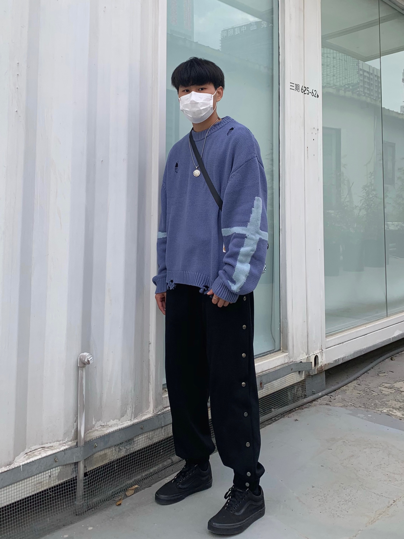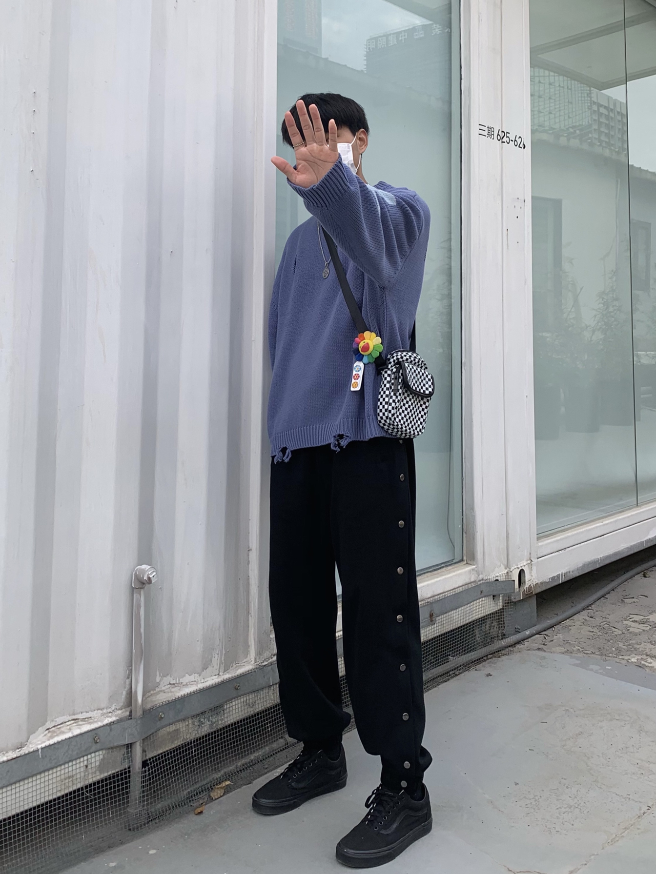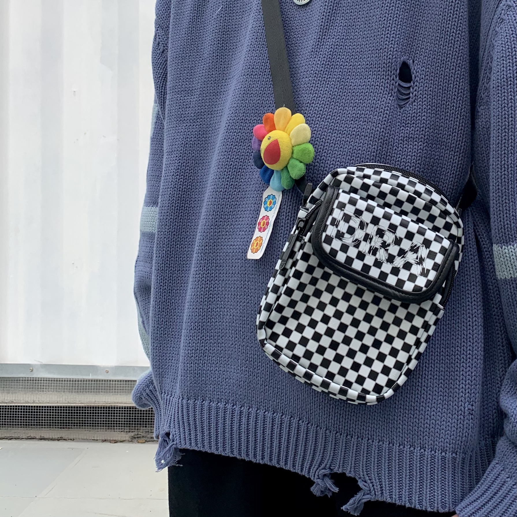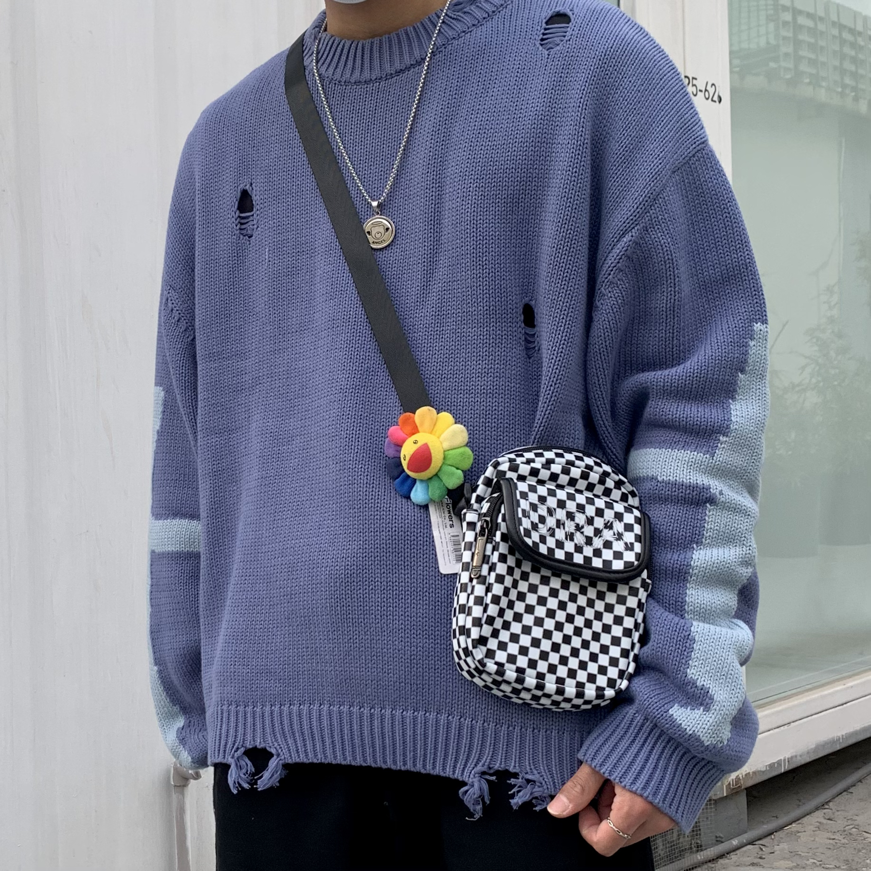 上衣:grkc 一件毛衣在秋冬是必备的!舒服的毛衣更不能少,毛衣采用大面积破洞做旧设计,使其毛衣不单调!大面积破洞做旧设计非常有个性!展现出高街风格!非常酷,版型宽松!适合潮搭! 裤子:M5IS 束脚排扣裤风格的设计就很高街!高街版型的裤子很修长腿型,排扣裤小细节设计更加完美!非常酷!非常高街! 挎包:draconite 格子栅格的设计真的太高级啦!超级喜欢这款挎包!展现高街高级感! 鞋子...