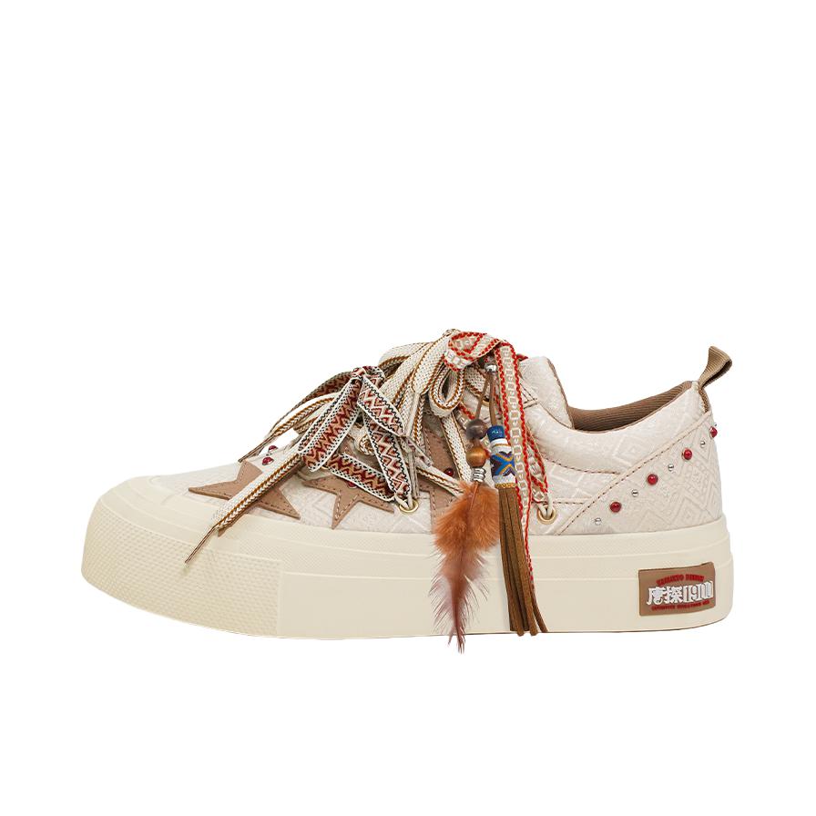 在功能配置方面,品牌为Kaalixto,鞋面材质为人造革(PU)、帆布,闭合方式为系带,联名为《唐探1900》,鞋底款式为厚底。