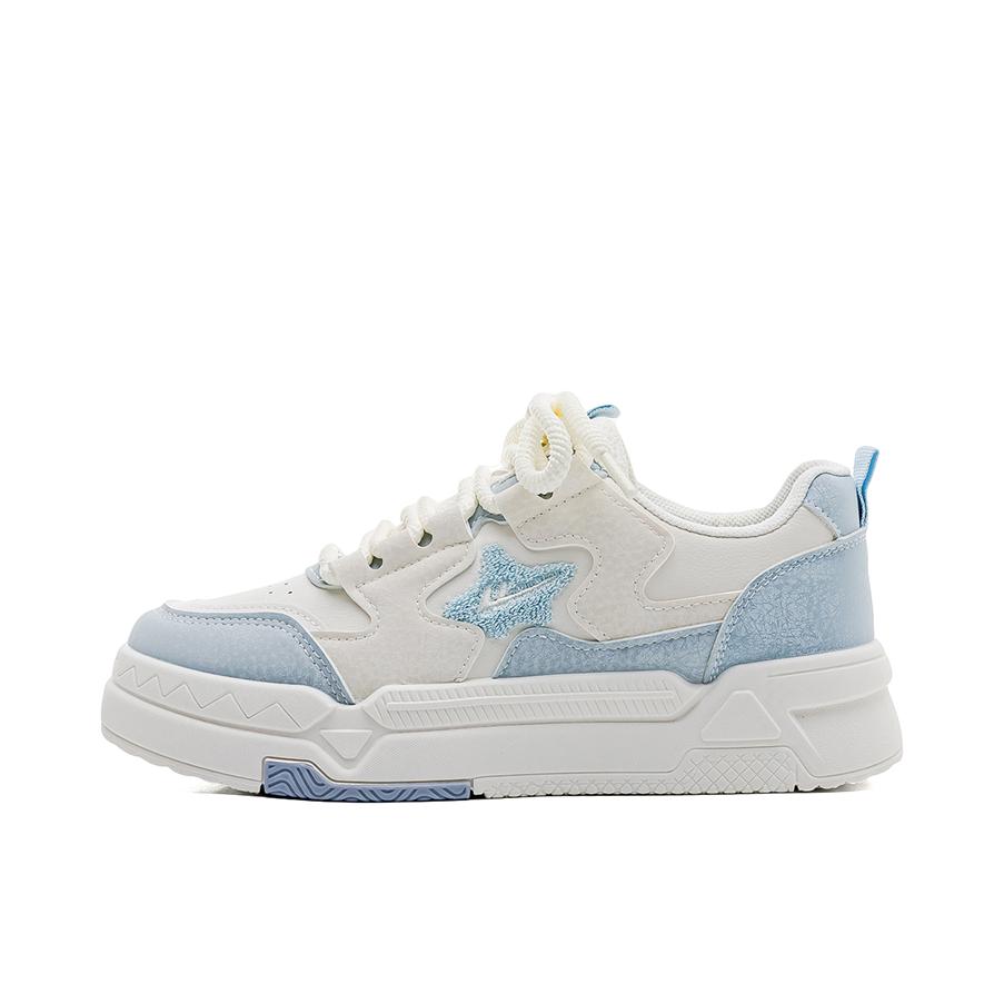 在功能配置方面,货号为WXT(S)-2307浅米蓝,品牌为Warrior/回力,鞋面材质为合成革、织物、PVC,鞋底材料为橡胶、PVC、塑胶,闭合方式为系带,流行元素为车缝线、皮革拼接、拼色、交叉绑带。