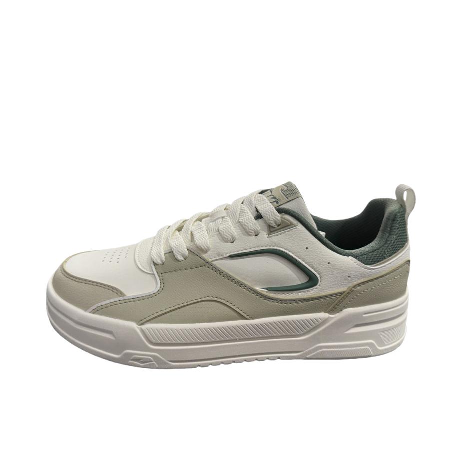 在功能配置方面,货号为12125301404-003,品牌为erke/鸿星尔克,联名为GOLF le FLEUR*联名,鞋面材质为合成革、织物,鞋底材料为EVA,闭合方式为系带,流行元素为车缝线、皮革拼接,鞋帮高度为低帮,材质为合成革,发售季节为2025年秋季。